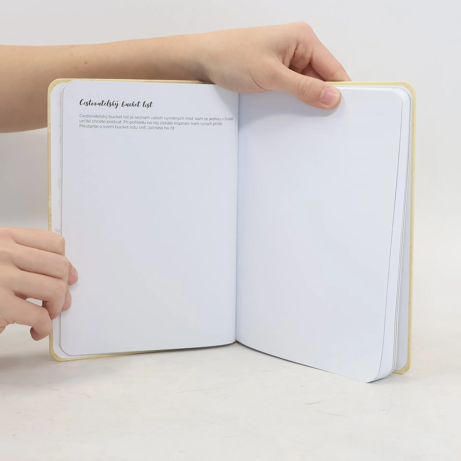 Cestovatelský deník se stane nepostradatelným parťákem na všech vašich cestách. Sepište si bucket list a dojmy z cizích krajů, splňte ležérní i odvážné výzvy a zavzpomínejte na všechna významná nej, která vám cestování dalo. Cestovatelský deník je rozdělen do čtyř sekcí. Začínáte Sny a plány, kde deníku prozradíte svá vysněná cestovatelská místa a v mapách si vyznačíte ta, která jste navštívili. Poté následuje spousta volných stránek, na které si zaznamenáte své Zážitky a vzpomínky. Pokud by vás na cestách přepadla nuda, koukněte do sekce Výzvy a aktivity. Najdete tam spoustu inspirace, jak si své cesty okořenit a vystoupit z komfortní zóny. V závěrečné kapitole Shrnutí a zamyšlení zakončíte své vzpomínky reflexí, ve které si vzpomenete na všechna významná nej (včetně těch největších failů) a popřemýšlíte o tom, jak cestování změnilo váš pohled na svět.