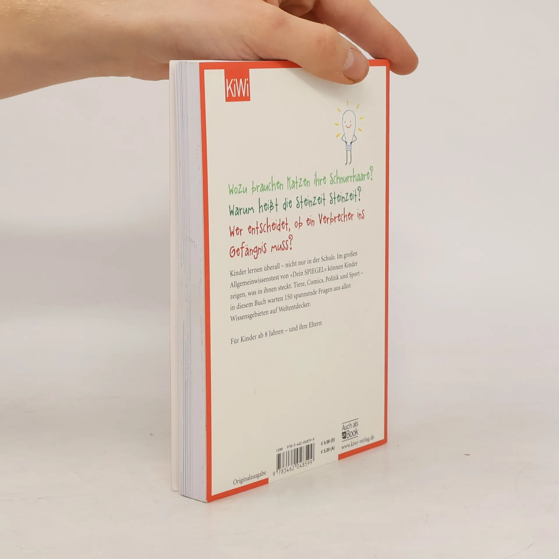 Das Weltwissen der Kinder – der große Wissenstest für Familien Was passiert mit einer Cola-Flasche im Eisfach? Wie wird man mit YouTube-Videos reich? Was tun Muslime im Ramadan? Diese Fragen kommen selten in der Schule vor, aber Kinder wissen oft trotzdem die Antworten – weil sie sich für alles Mögliche interessieren und überall Neues aufschnappen. Der große »Dein SPIEGEL«-Wissenstest für Kinder fragt nach Allgemeinwissen – also nach Dingen, die ein Kind wissen kann, vielleicht sogar wissen sollte, die aber nicht unbedingt im Lehrplan stehen. Ob man gute Noten hat, ist in diesem Test nicht wichtig, ob man sich für die Welt um einen herum interessiert, dagegen schon. 150 Fragen aus allen Wissensgebieten – von Comics über Weltraum bis zu Politik und Sport – warten auf Antworten: Zum Nachdenken, Rätseln, Herleiten, Weiterdenken, Spielen und natürlich, um zu zeigen, was man schon weiß. Hinzu kommen spannende Interviews – u. a. mit der Junioren-Gedächtnisweltmeisterin – und Tipps zum Lernen. Ein großer Wissensspaß für Kinder (ab 8 Jahren) und Eltern!