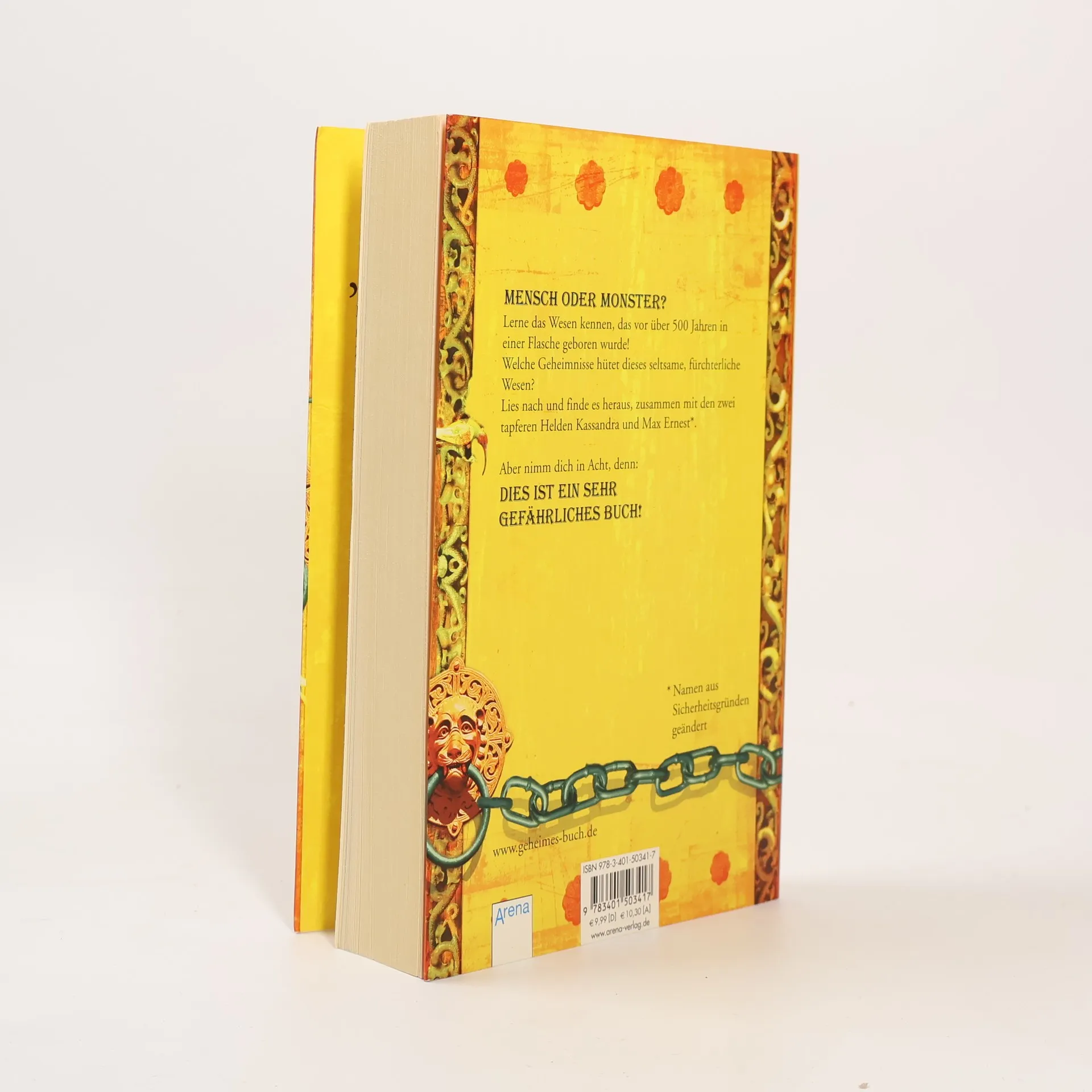 Mensch oder Monster? Lerne das Wesen kennen, das vor über 500 Jahren in einer Flasche geboren wurde! Welche Geheimnisse hütet dieses seltsame, fürchterliche Wesen? Lies nach und finde es heraus, zusammen mit den zwei tapferen Helden Kassandra und Max Ernest. Aber Vorsicht: Dies ist ein sehr gefährliches Buch!