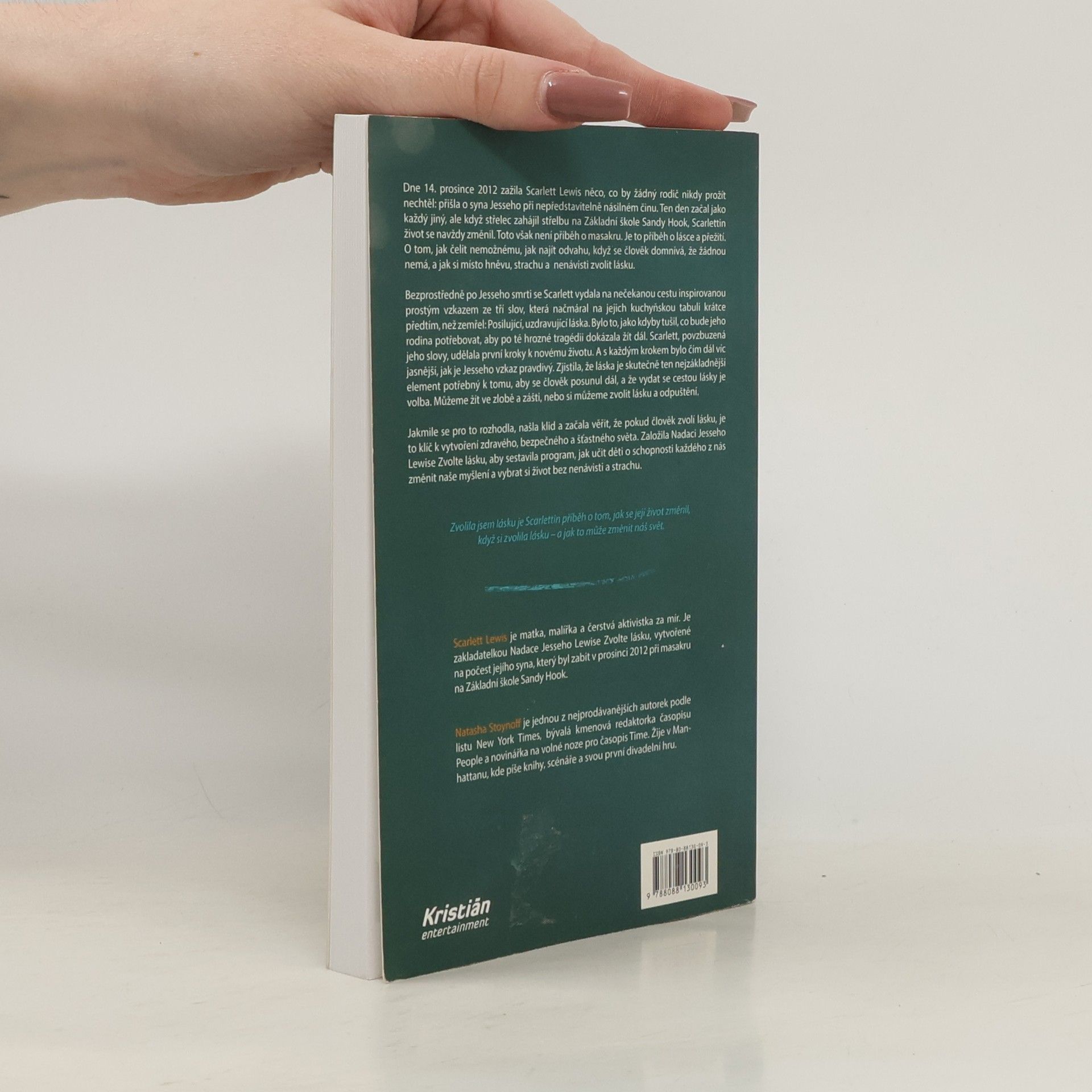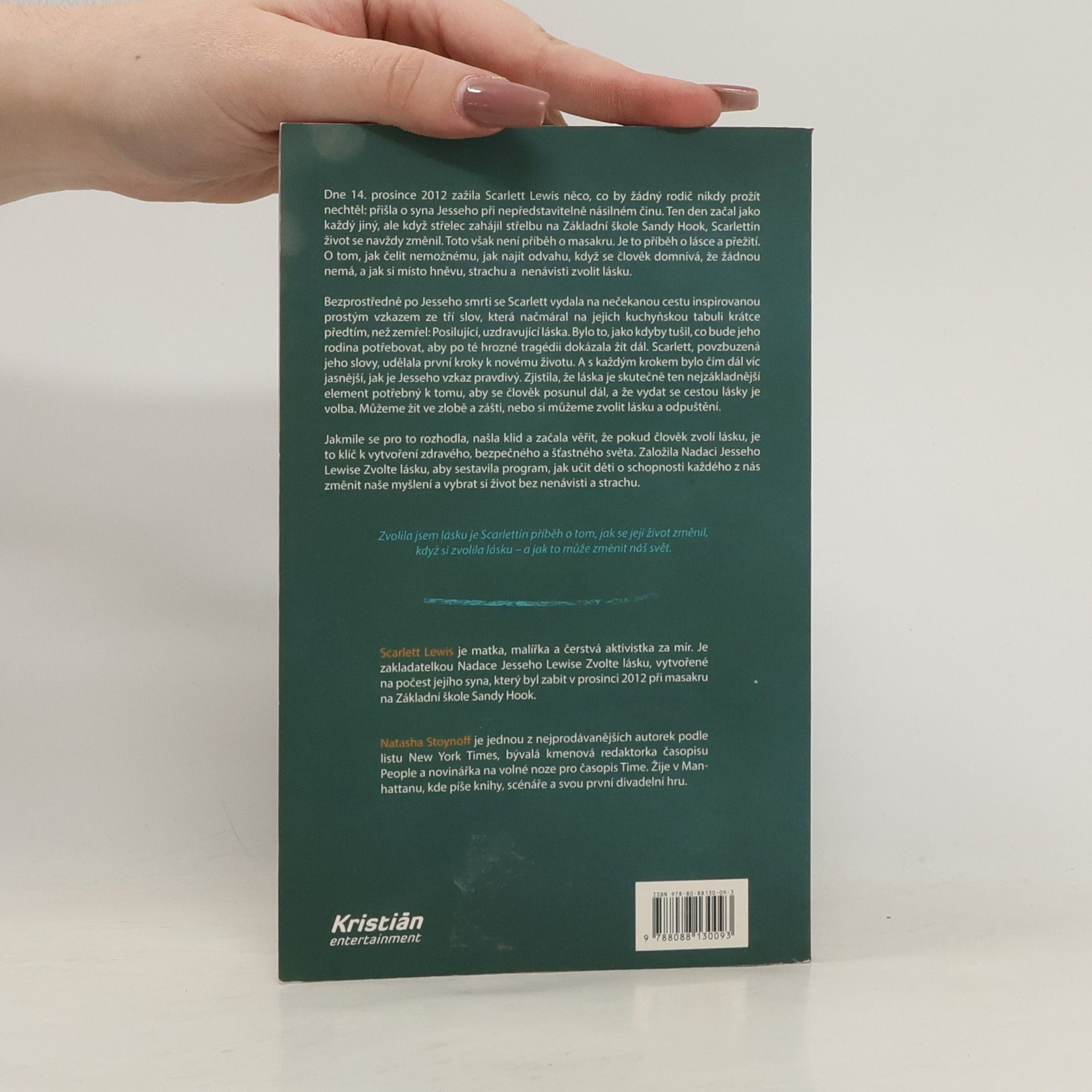 Čtrnáctý prosinec roku 2012 začal pro Scarlett Lewis jako každý jiný den. Ráno se chystala do práce a těšila se, že odpoledne uvidí svého šestiletého syna Jesseho na školní akci. Netušila však, že na Jesseho Základní škole Sandy Hook ve státě Connecticut dojde k masakru. Oběťmi šíleného střelce se stalo dvacet malých dětí a šest dospělých. Přesto Scarlett v knize nepopisuje samotnou tragickou událost, ale svou vlastní cestu, jak se s takovým neštěstím vyrovnat, jak člověk dokáže čelit nepochopitelné krutosti a jak najde odvahu jít dál, když si myslí, že mu už žádná nezbyla. Scarlett během své pouti přišla na zdánlivě jednoduchou věc: místo nenávisti a zloby si musíme zvolit lásku. K této myšlence ji dovedl sám Jesse, když jí svým neumělým dětským písmem zanechal vzkaz na tabuli v kuchyni, který Scarlett objevila až po jeho smrti: Posilující, uzdravující láska. Od této chvíle Scarlett jasně věděla, co musí udělat. Výsledkem bylo založení Nadace Jesseho Lewise Zvolte lásku. Jejím hlavním programem je naučit děti, aby dokázaly změnit myšlení a zvolily si život bez nenávisti a strachu.