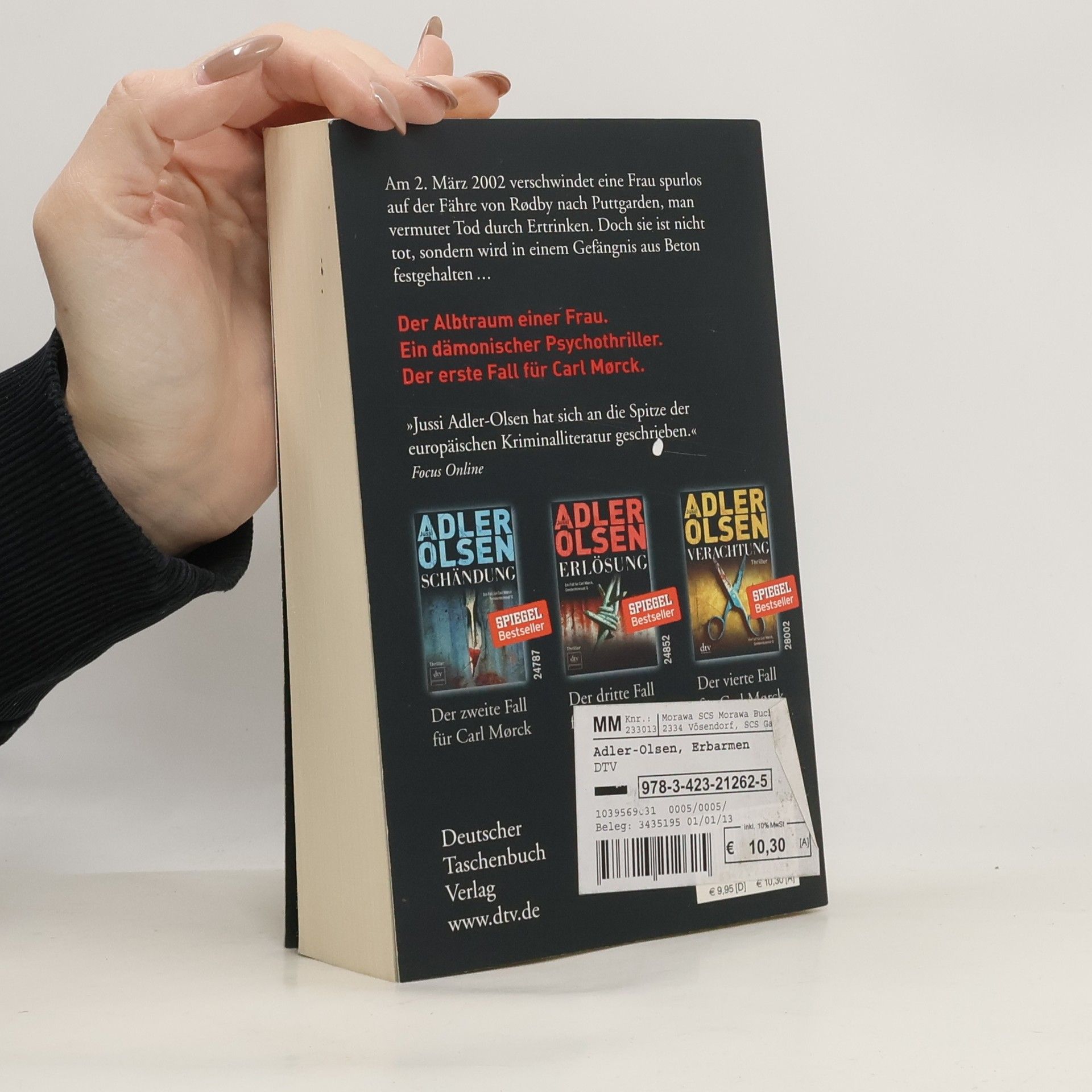 Ein dämonischer Psychothriller und der erste Fall für Carl Mørck vom Sonderdezernat Q für unaufgeklärte Morde der Kopenhagener Polizei. Am 2. März 2002 verschwindet eine Frau auf der Fähre von Rødby nach Puttgarden, und man vermutet, dass sie ertrunken ist. Doch sie lebt und wird in einem Betonverlies gefangen gehalten. Carl Mørck, der neu ernannte Spezialermittler, ist anfangs wenig begeistert von seinem Job, da die Erfolgsquote bei Cold Cases schlecht ist. Sein syrischer Assistent Hafez el-Assad hingegen ist hochmotiviert und entschlossen, den Fall der verschwundenen Politikerin zu lösen. Unbemerkt von ihnen beginnt ein atemloser Wettlauf gegen die Zeit. Der erste Band der Spiegel-Bestseller-Reihe um Carl Mørck und seinen unkonventionellen Assistenten Assad überrascht mit spannenden Wendungen und einem packenden Erzählstil. Kritiker loben das Buch als hart und atmosphärisch dicht, sowie als einen außergewöhnlich spannenden Thriller, der bis zur letzten Seite fesselt. Jussi Adler-Olsen wird mit seiner Erzählweise mit Größen wie Dean Koontz und Stieg Larsson verglichen und begeistert Leser mit seiner Fähigkeit, die Ermittlungen rasant voranzutreiben. Neben der Carl-Mørck-Reihe sind auch weitere Titel des Autors bei dtv erschienen.