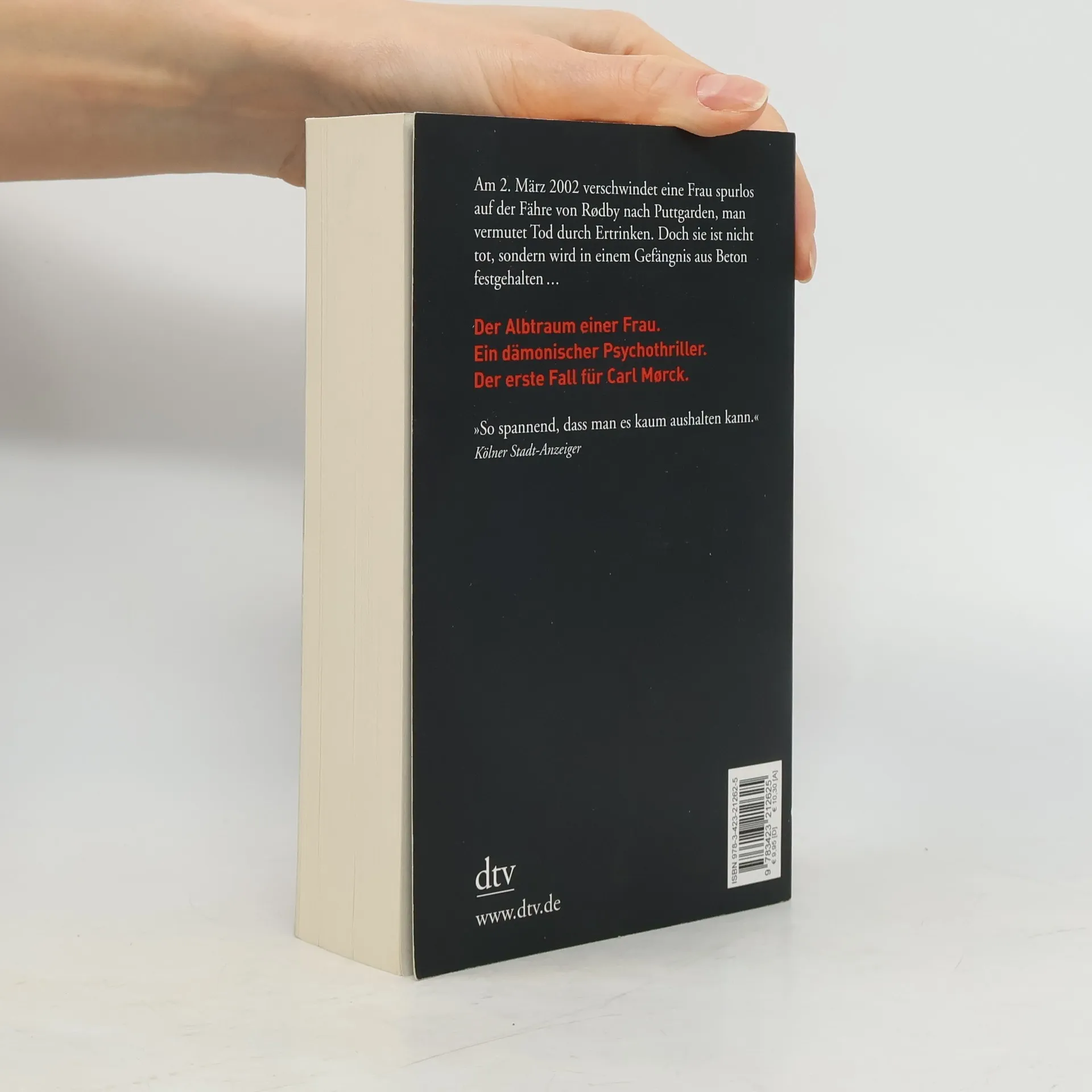Ein dämonischer Psychothriller und der erste Fall für Carl Mørck vom Sonderdezernat Q für unaufgeklärte Morde der Kopenhagener Polizei. Am 2. März 2002 verschwindet eine Frau auf der Fähre von Rødby nach Puttgarden, und man vermutet, dass sie ertrunken ist. Doch sie lebt und wird in einem Betonverlies gefangen gehalten. Carl Mørck, der neu ernannte Spezialermittler, ist anfangs wenig begeistert von seinem Job, da die Erfolgsquote bei Cold Cases schlecht ist. Sein syrischer Assistent Hafez el-Assad hingegen ist hochmotiviert und entschlossen, den Fall der verschwundenen Politikerin zu lösen. Unbemerkt von ihnen beginnt ein atemloser Wettlauf gegen die Zeit. Der erste Band der Spiegel-Bestseller-Reihe um Carl Mørck und seinen unkonventionellen Assistenten Assad überrascht mit spannenden Wendungen und einem packenden Erzählstil. Kritiker loben das Buch als hart und atmosphärisch dicht, sowie als einen außergewöhnlich spannenden Thriller, der bis zur letzten Seite fesselt. Jussi Adler-Olsen wird mit seiner Erzählweise mit Größen wie Dean Koontz und Stieg Larsson verglichen und begeistert Leser mit seiner Fähigkeit, die Ermittlungen rasant voranzutreiben. Neben der Carl-Mørck-Reihe sind auch weitere Titel des Autors bei dtv erschienen.