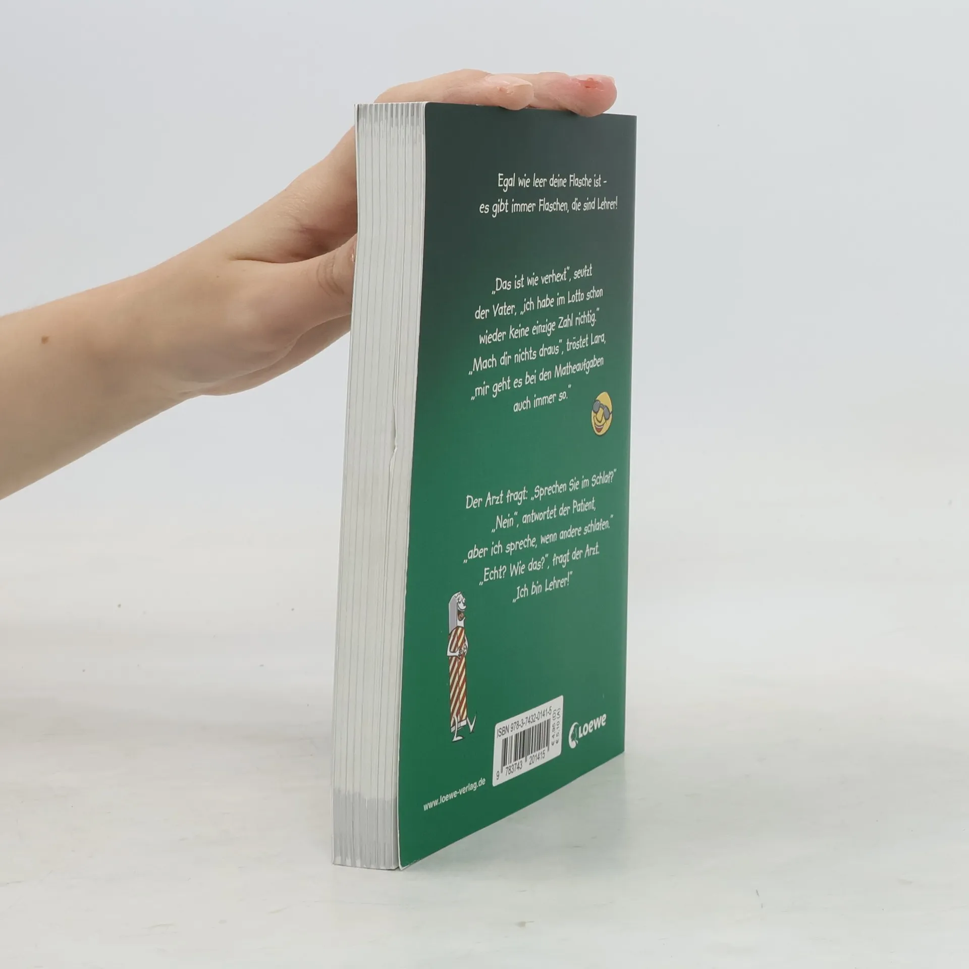 Das Buch ist bei deiner Buchhandlung vor Ort und bei vielen Online-Buchshops erhältlich! Lachen bis der Lehrer kommt! Die allerbesten Schülerwitze für alle Kinder ab 8 Jahren. Hier kann sich jeder kugelrund lachen, denn die Witze werden mit lustigen schwarz-weiß Illustrationen und Cartoons von Michael Holtschulte großartig untermalt. Ein Witzebuch zum Selberlesen oder Weitererzählen. Der Arzt fragt: „Sprechen Sie im Schlaf?“ „Nein“, antwortet der Patient, „aber ich spreche, wenn andere schlafen.“ „Echt? Wie das?“, fragt der Arzt. „Ich bin Lehrer!“ „Das ist wie verhext“, seufzt der Vater, „ich habe im Lotto schon wieder keine einzige Zahl richtig.“ „Mach dir nichts draus“, tröstet Lara, „mir geht es bei den Matheaufgaben auch immer so.“ Egal wie leer deine Flasche ist – Es gibt immer Flaschen, die sind Lehrer!