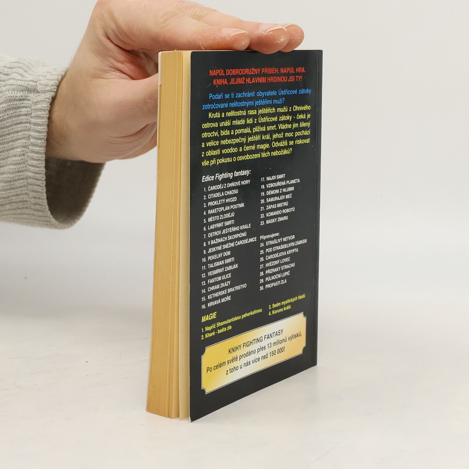 Krutá a nelítostná rasa ještěřích mužů z Ohnivého ostrova unáší mladé lidi z Ústřicové zátoky - čeká je otroctví, bída a pomalá, plíživá smrt. Vládne jim šílený a velice nebezpečný ještěří král, jehož moc pochází z oblasti voodoo a černé magie. Odvážíš se riskovat vše při pokusu o osvobození těch nebožáků? Podaří se ti zachránit obyvatele Ústřicové zátoky zotročované nelítostnými ještěřími muži?