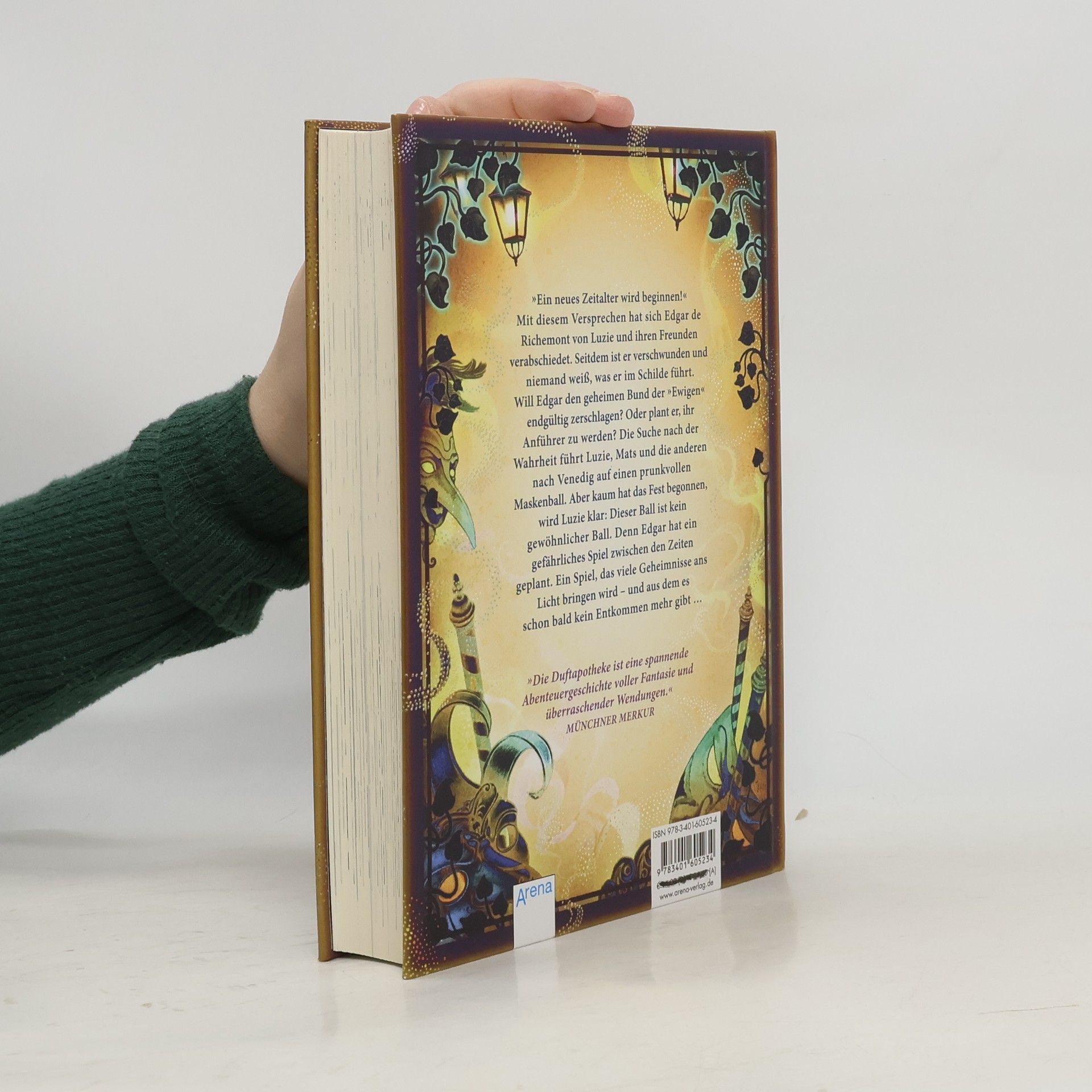 Eine Welt voller Düfte und ein Abenteuer voller Magie, Herzklopfen und Gefahren! Ein neues Zeitalter für die Ewigen beginnt, doch Edgars wahre Absichten bleiben unklar. Plant er, die Ewigen zu zerschlagen oder möchte er ihr neuer Anführer werden? Luzie, Mats und ihre Freunde sind entschlossen, Edgars Plan zu vereiteln und folgen ihm nach Venedig zu einem prunkvollen Maskenball. Schnell wird ihnen klar, dass dieser Ball alles andere als gewöhnlich ist. Es handelt sich um ein gefährliches Spiel zwischen den Zeiten, aus dem es kein Entkommen gibt. Der fünfte Band dieser beliebten Kinderbuchreihe für Mädchen und Jungs ab 10 Jahren ist fantasievoll erzählt von Anna Ruhe und mit detailverliebten Schwarz-weiß-Illustrationen von Claudia Carls versehen. Die Reihe „Die Duftapotheke“ wurde mit dem Leipziger Lesekompass 2018 und der Ulmer Unke 2018 ausgezeichnet. Die Presse lobt die Geschichten als fantasievoll und sinnlich, und sie werden als „echt duftes Kinderbuch“ empfohlen. In der Reihe sind bereits fünf Bände erschienen, und der sechste wird im Herbst 2021 erwartet.