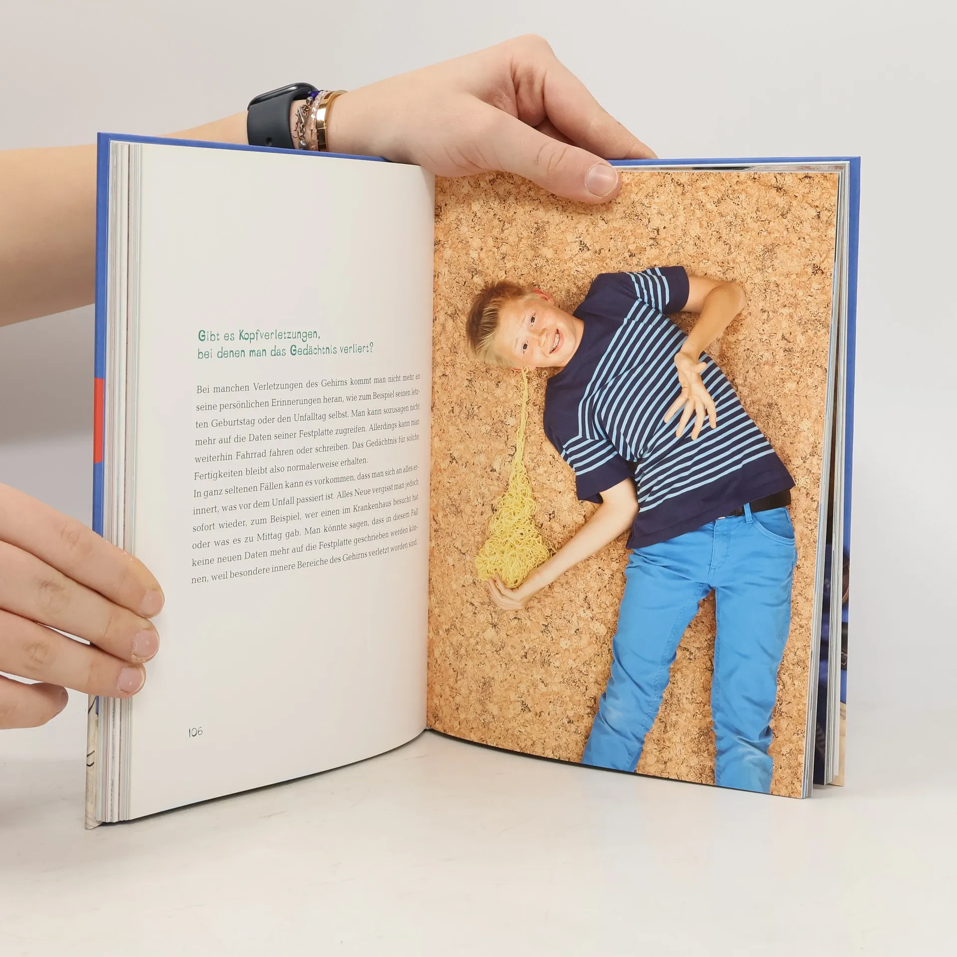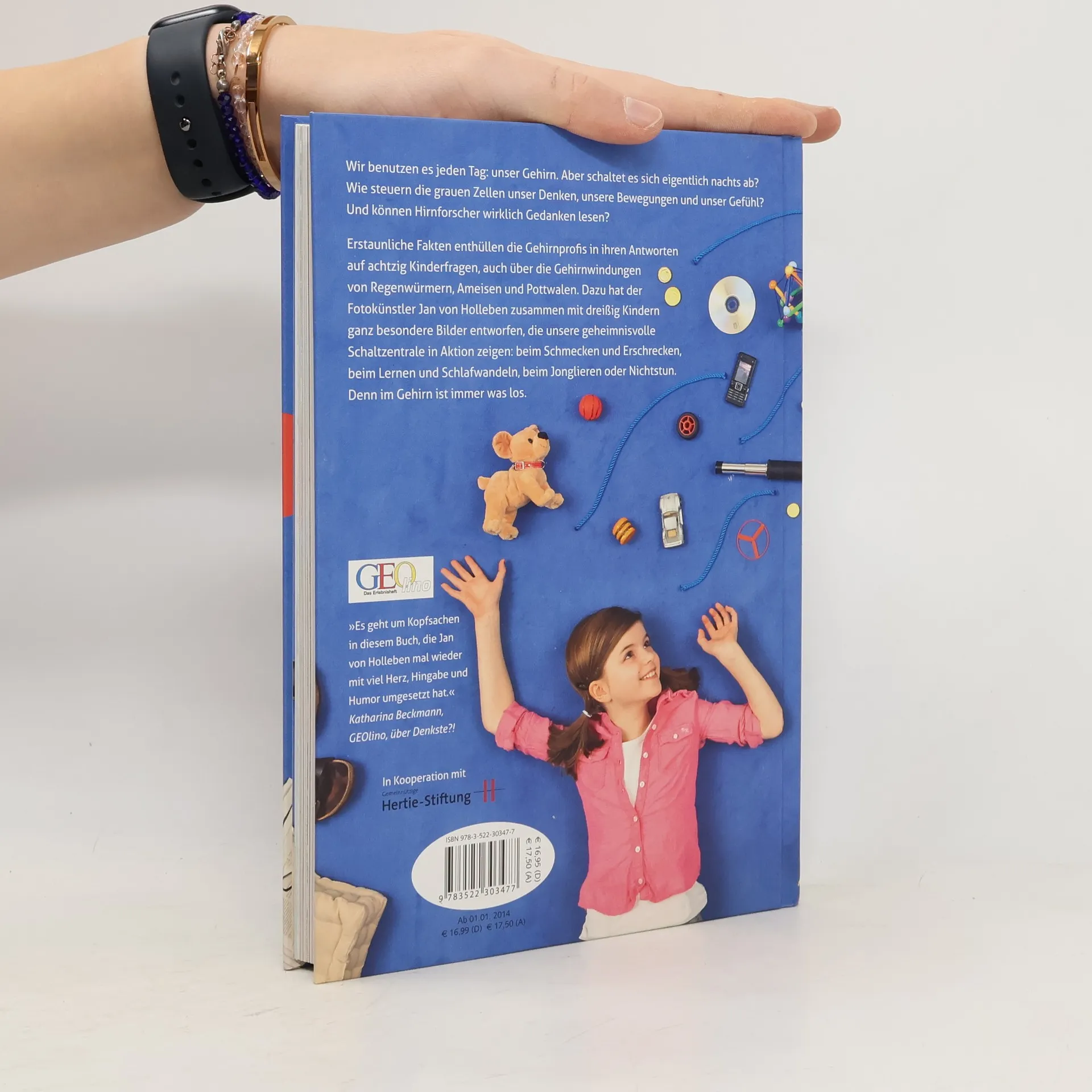 Wir benutzen es jeden Tag und verlassen uns darauf, dass es funktioniert: unser Gehirn. Aber warum sprudeln die Ideen manchmal nur so aus unserem Kopf und dann fällt uns wieder gar nichts ein? Warum merken wir uns bestimmte Sachen sofort und anderes müssen wir immer wieder nachschauen? Wie steuert das Gehirn unseren Körper und wo steckt die Seele? Diese Dinge interessieren Kinder brennend, aber auch, wie groß zum Beispiel das Gehirn eines Marienkäfers ist oder warum Elefanten ein so gutes Gedächtnis haben. Die Neurowissenschaftler Michael Madeja und Katja Naie haben deshalb spannende Kinderfragen von einem Dutzend Schulklassen sammeln lassen und die interessantesten ausgesucht. Anhand dieser Fragen erklären sie uns unterhaltsam das Wunderwerk in unserem Kopf. Mit zwölf Mädchen und Jungen hat Jan von Holleben im Rahmen eines Workshops fantasievoll inszenierte Bilder entworfen, die zeigen, wie kreuz und quer, logisch und emotional wir denken, fühlen und erinnern.