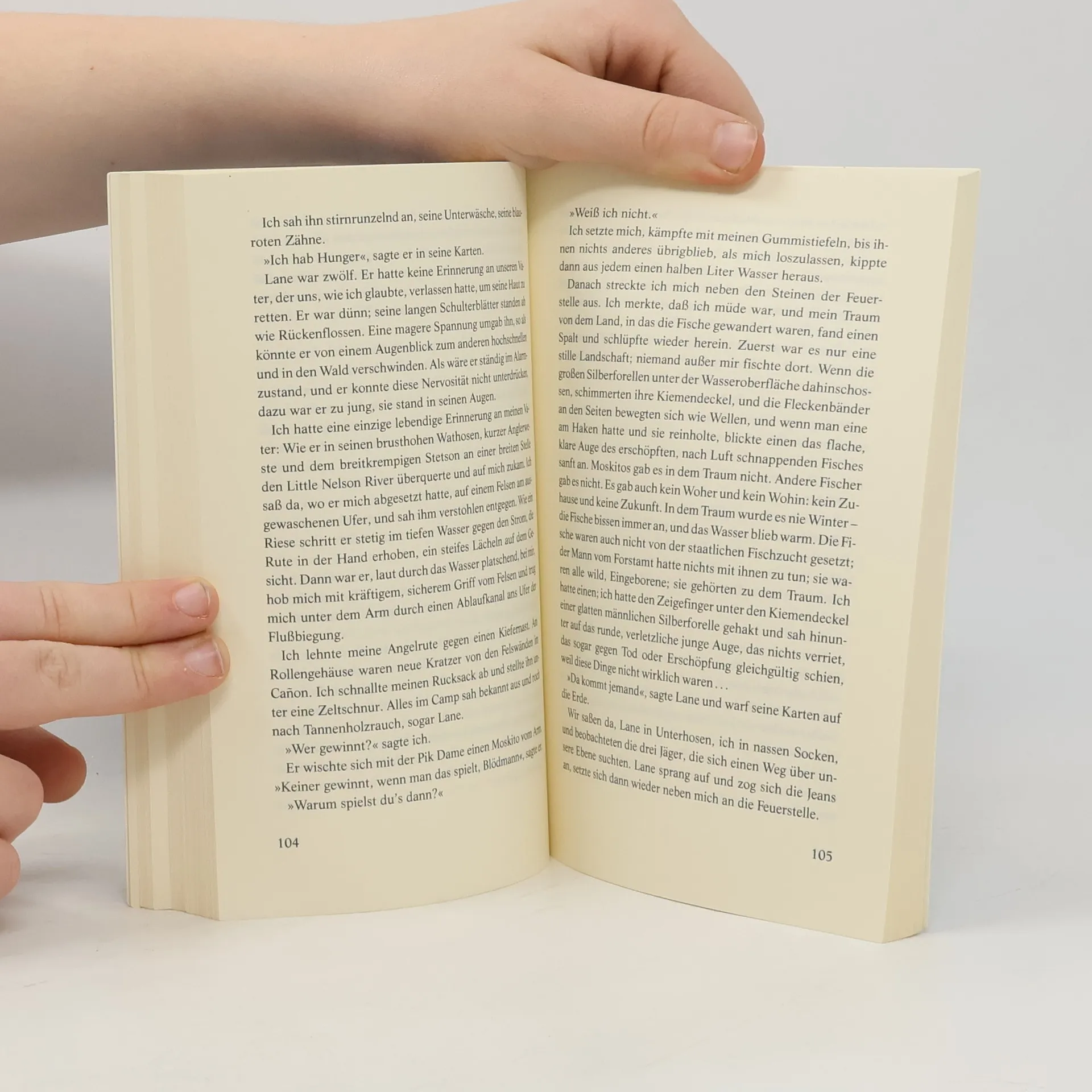 Es war geplant als harmloser Angel-Trip in die Berge. Der sechzehnjährige Roy und sein kleiner Bruder Lane haben es auf Forellen abgesehen. Zuerst ist es schlicht junges Anglerpech, wollen die Fische einfach nicht anbeißen. Doch dann tauchen drei Männer auf, die gänzlich anderes als Fischen im Sinn haben - plötzlich geht es um Leben und Tod. David Guterson erzählt vom Erwachsenwerden und den vielen Schlaglöchern auf dem Weg dahin.