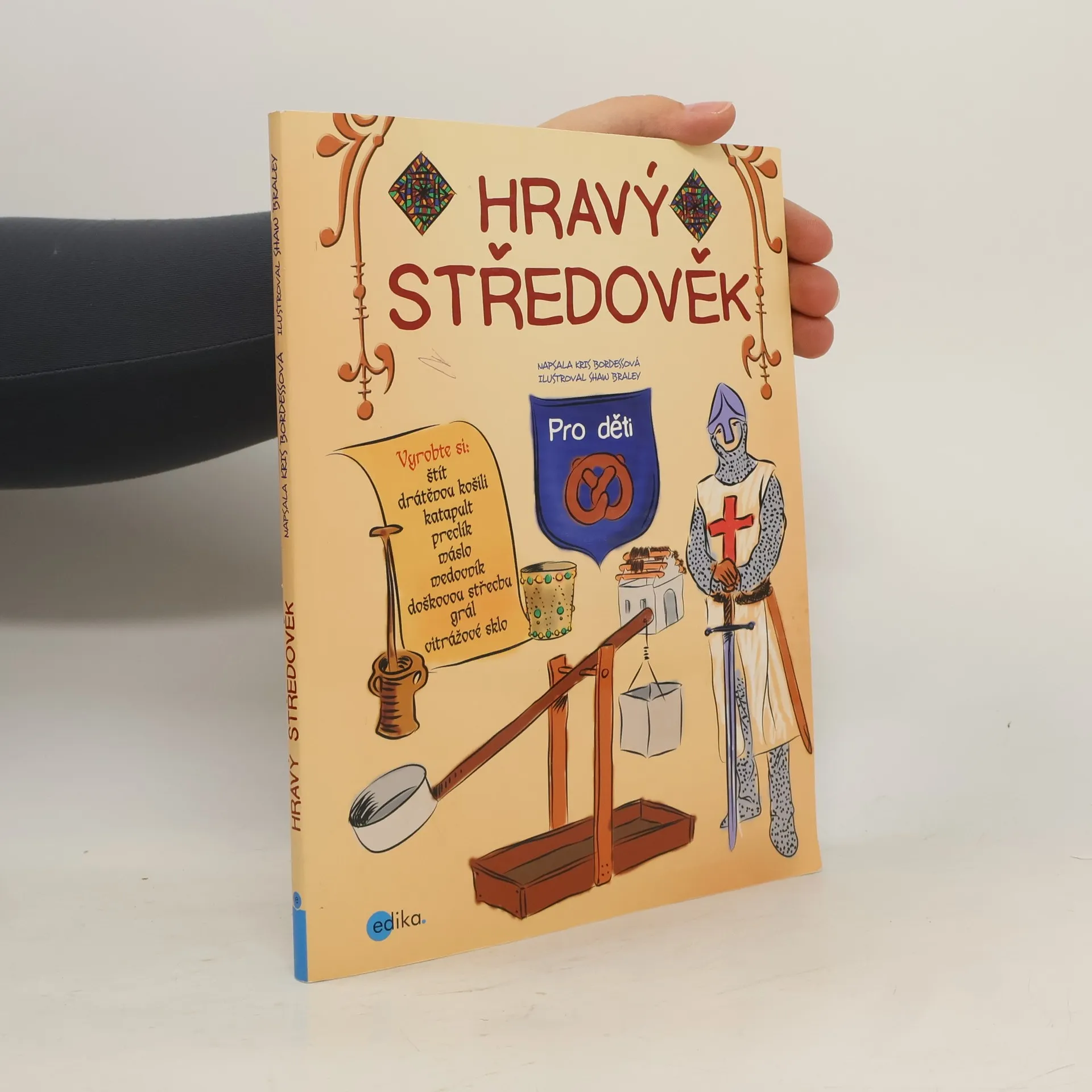 Kniha Hravý středověk přivádí znovu k životu středověkou Evropu prostřednictvím praktických úkolů pro děti ve věku 9–12 let. Při aktivitách se doporučuje jen malá pomoc dospělých a používají se pomůcky běžné ve většině domácností. Doplňující informace a zajímavosti text zpřístupňují i malým dětem. Čtenáři si prohloubí znalosti o rytířích, urozených dámách a hradech a dozvědí se mnohé o klášterech, obléhacích zbraních, každodenním životě na vesnici, o středověkém oblékání, trzích a slavnostech, středověkém lékařství i křižácích. VĚDĚLI JSTE, ŽE…? - V některých domcích rolníků žila ve středověku s lidmi i zvířata. - Lékaři někdy pacientům předepisovali „dávku dvorního šaška“. Věřili, že smích je nejlepší lékař. - Ve středověku se pilo také z kožených pohárů.