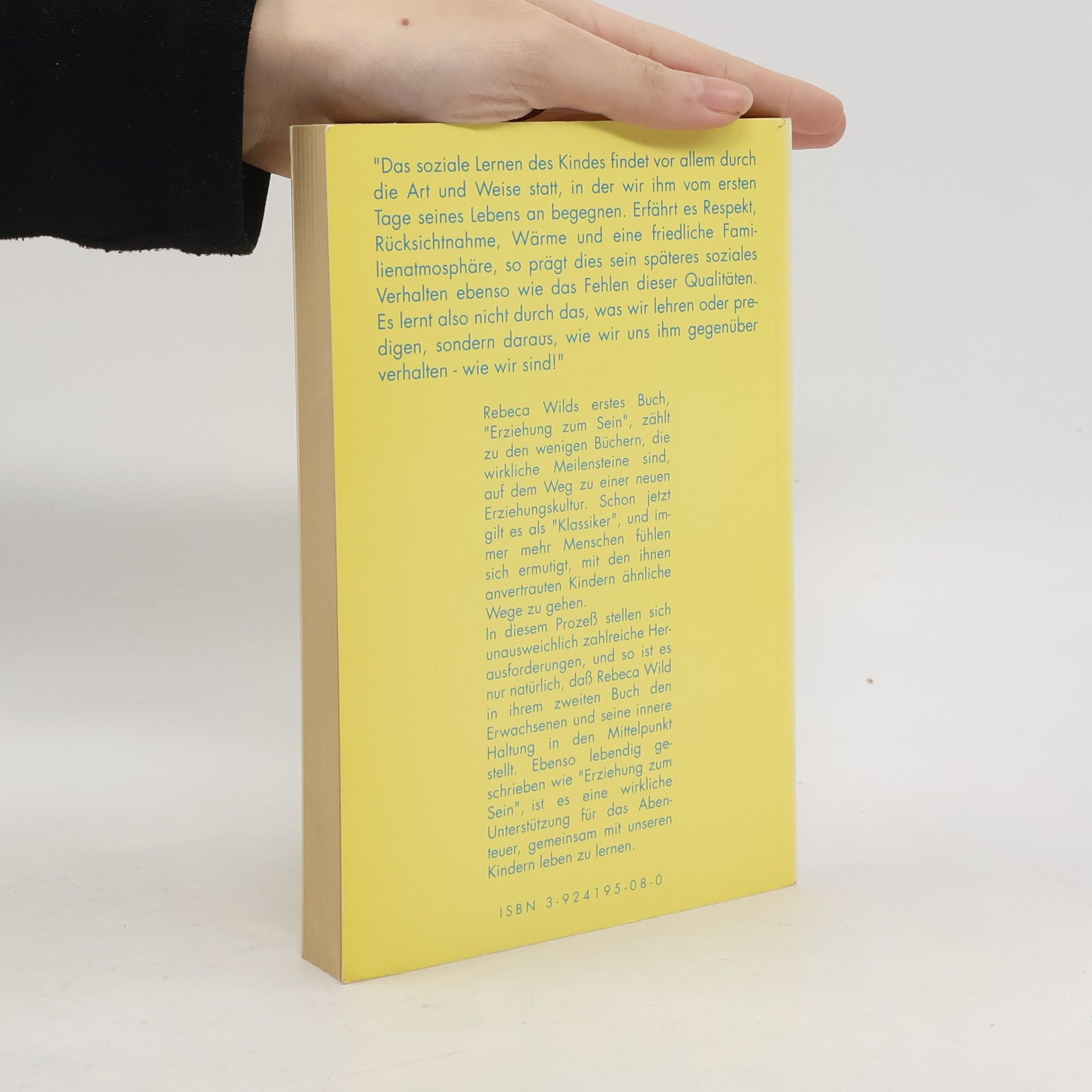 In ihrem zweiten Buch widmet sich Rebeca Wild vor allem der Frage, wie wirkliche Entfaltungsprozesse bei Kindern stattfinden können. Dabei nehmen auch die angemessene Haltung des Erwachsenen und der Umgang mit verschiedenen schwierigen Situationen (wie z. B. Eifersucht, Essensprobleme, Aggressionen, Stehlen etc) einen breiten Raum ein. Ebenso wie ihr erstes Buch, ist Sein zum Erziehen eine wertvolle Unterstützung auf dem Weg, gemeinsam mit unseren Kindern zu wachsen.