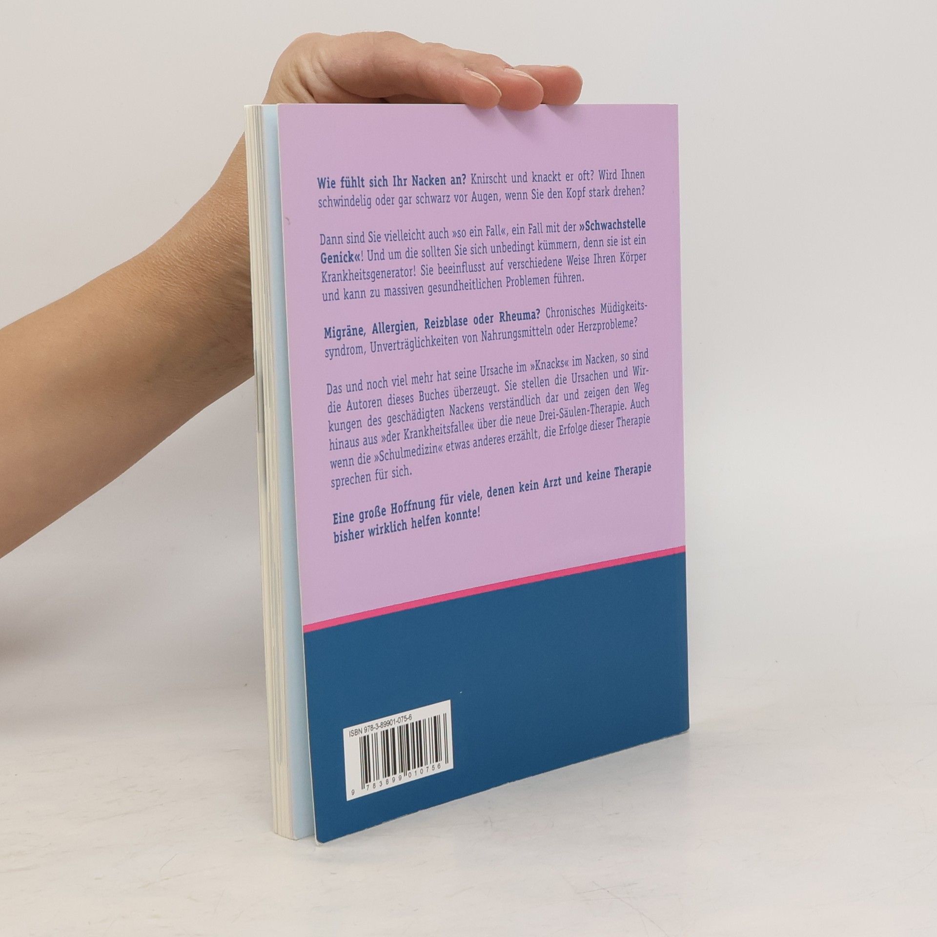 Wie fühlt sich Ihr Nacken an? Knirscht und knackt er oft? Wird Ihnen schwindelig oder gar schwarz vor Augen, wenn Sie den Kopf stark drehen? Dann sind Sie vielleicht auch »so ein Fall«, ein Fall mit der »Schwachstelle Genick«! Und um die sollten Sie sich unbedingt kümmern, denn sie ist ein Krankheitsgenerator! Sie beeinflusst auf verschiedene Weise Ihren Körper und kann zu massiven gesundheitlichen Problemen führen. Migräne, Allergien, Reizblase oder Rheuma? Chronisches Müdigkeitssyndrom, Unverträglichkeiten von Nahrungsmitteln oder Herzprobleme? Das und noch viel mehr hat seine Ursache im »Knacks« im Nacken, so sind die Autoren dieses Buches überzeugt. Sie stellen die Ursachen und Wirkungen des geschädigten Nackens verständlich dar und zeigen den Weg hinaus aus »der Krankheitsfalle« über die neue Drei-Säulen-Therapie. Auch wenn die »Schulmedizin« etwas anderes erzählt, die Erfolge dieser Therapie sprechen für sich. Eine große Hoffnung für viele, denen kein Arzt und keine Therapie bisher wirklich helfen konnten!