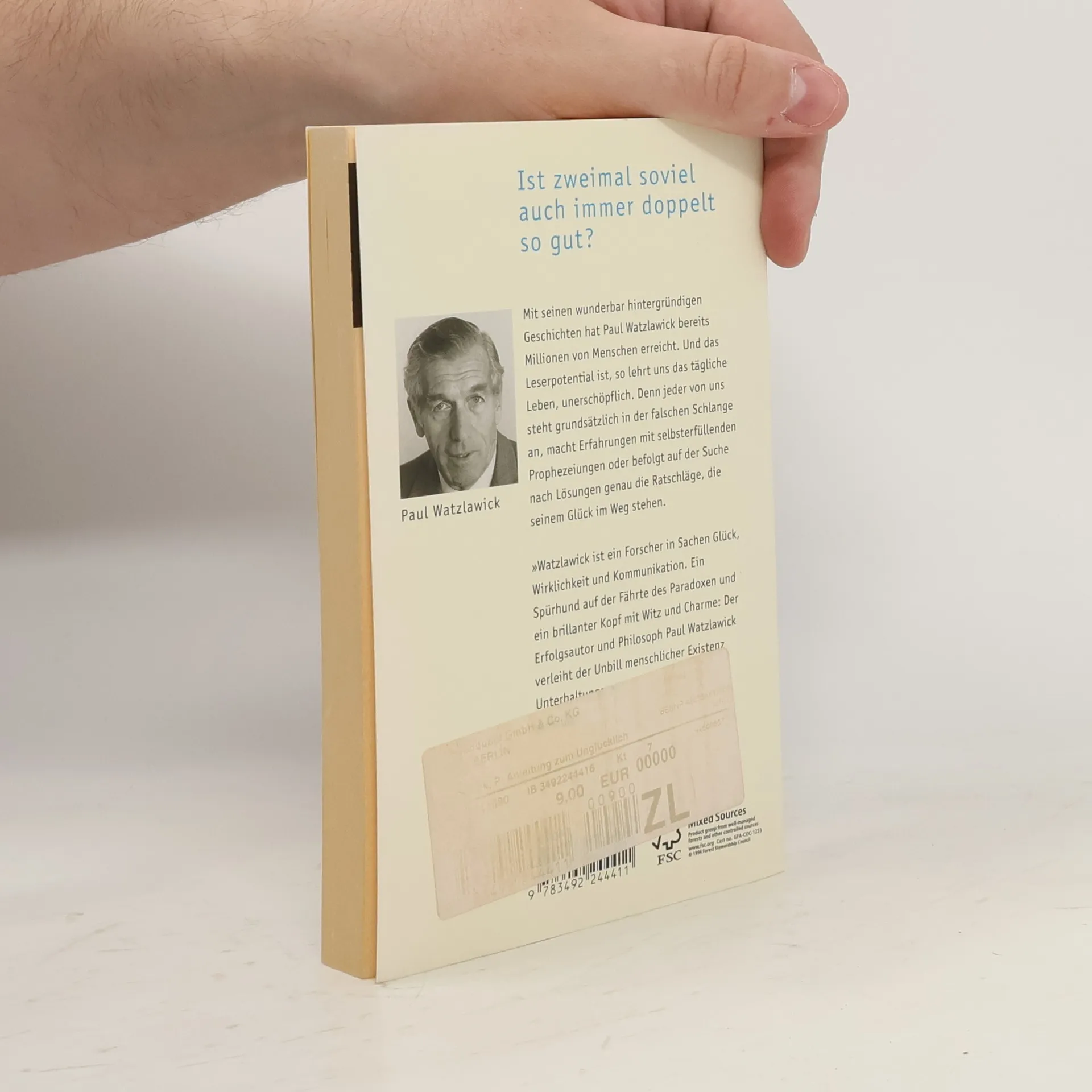 Mit seinen wunderbar hintergründigen Geschichten hat Paul Watzlawick bereits Millionen von Menschen erreicht. Und das Leserpotenzial ist, so lehrt uns das tägliche Leben, unerschöpflich. Denn jeder von uns steht grundsätzlich in der falschen Schlange an, macht Erfahrungen mit selbst erfüllenden Prophezeiungen oder befolgt auf der Suche nach Lösungen genau die Ratschläge, die seinem Glück im Weg stehen.
