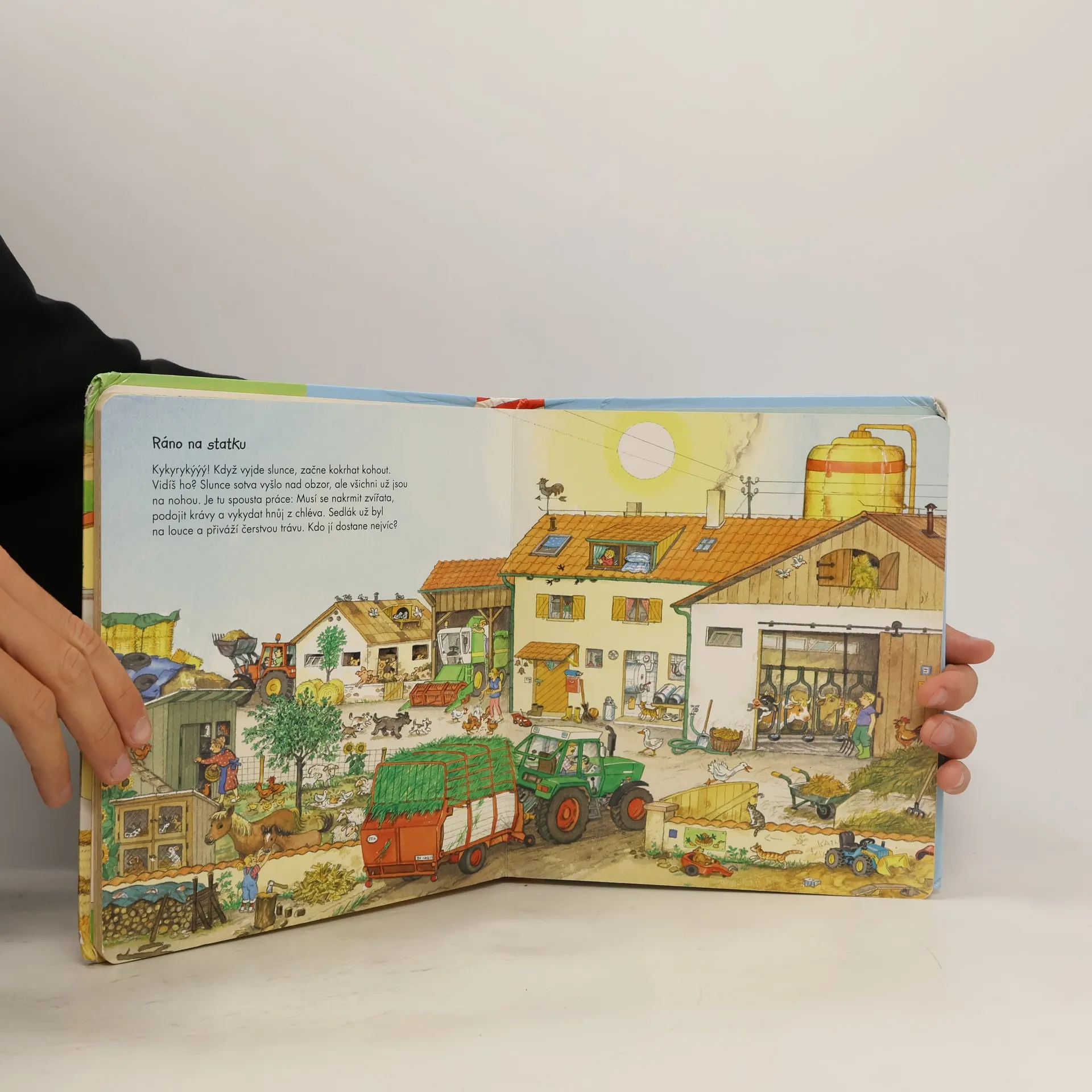 Bagry, traktory, popelářské vozy – a to zdaleka není vše. Můžete si prohlédnout i vrtulník, míchač- ku nebo kombajn, podíváte se na statek i na letiště a všude vás čeká spousta zábavy. Na každé stránce najdete několik příběhů, o kterých si můžete vyprávět. Tato kniha obsahuje vše, co děti chtějí vědět o všemožných vozidlech a jejich využití.