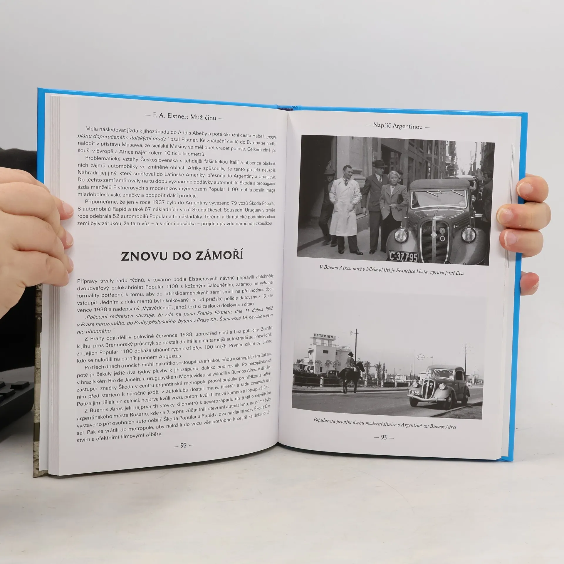 Kniha slovem i četnými fotografiemi dokumentuje cesty manželů Elstnerových. Popisuje jejich první výpravu do Afriky, kam v roce 1933 cestovali vozem Aero Spexor společně s dalšími dvěma posádkami aerovek. V roce 1934, doprovázeni Modrým teamem Aero, výpravu do Afriky opakovali. Sami pak cestovali v roce 1936 po USA a Mexiku, o dva roky později se vydali do Argentiny. Další delší jízdu podnikl Elstner až po válce v roce 1947 malým vozem Aero Minor spolu se synem Reném a svojí třetí ženou Annou. Trasa vedla z Prahy do rovníkové oblasti u Guinejského zálivu a zpět, se dvěma průjezdy napříč Saharou. Únor 1948 znamenal pro F. A. Elstnera konec cestování. Avšak mírné politické uvolnění druhé poloviny padesátých let mu umožnilo vydat se v roce 1959 zapůjčeným vozem Škoda Octavia do Sovětského svazu. Průvodcem na cestě dlouhé 14 tisíc kilometrů, jejíž trasa vedla až do Gruzie a na Krym, mu byl fotograf a filmař Jan Fiala. Kromě zmíněných dálkových jízd obsahuje publikace i několik kratších cest po Evropě, které podnikal ještě s první ženou Evou, a představuje Elstnerovu pestrou a mnohotvárnost osobnost - mimo jiné jako průkopníka skautingu v Československu a zapáleného propagátora dopravní bezpečnosti.