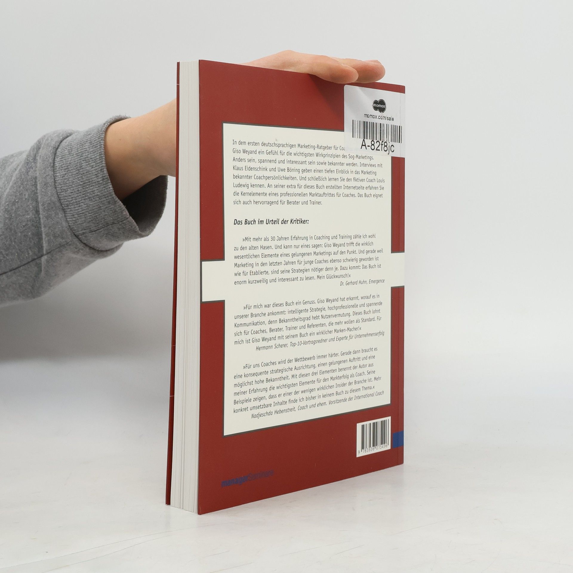 'Stundensätze ab 300 Euro, Coachingsitzungen nur noch vor dem eigenen Kamin, mit Personen, die ich auch wirklich coachen will' - die Sehnsucht des Coaches nach beruflichem Erfolg ist riesig. Um ähnliche Träume Wirklichkeit werden zu lassen, sollten Coaches jetzt beginnen, eine gute Sog-Marketing-Strategie zu entwickeln. In dem wahrscheinlich ersten deutschsprachigen Marketing-Ratgeber für Coaches vermittelt Giso Weyand ein Gefühl für die wichtigsten Wirkprinzipien des Sog-Marketings. - Anders sein: In fünf Schritten zur eigenen Positionierungsmix - Spannend und interessant sein: Sieben Prinzipien und Methoden der Inszenierung - Bekannter werden: Die fünf wichtigsten Marketinginstrumente für Coaches Zahlreiche Checklisten und Praxisbeispiele unterstützen, ein persönliches Sog-Marketing zu entwickeln. Interviews mit Klaus Eidenschink und Uwe Böning geben einen Einblick in das Marketing bekannter Coachpersönlichkeiten. An einer extra für dieses Buch erstellten Internetseite werden die Kernelemente eines professionellen Marktauftrittes für Coaches dargestellt. Das Buch eignet sich auch hervorragend für Berater und Trainer.