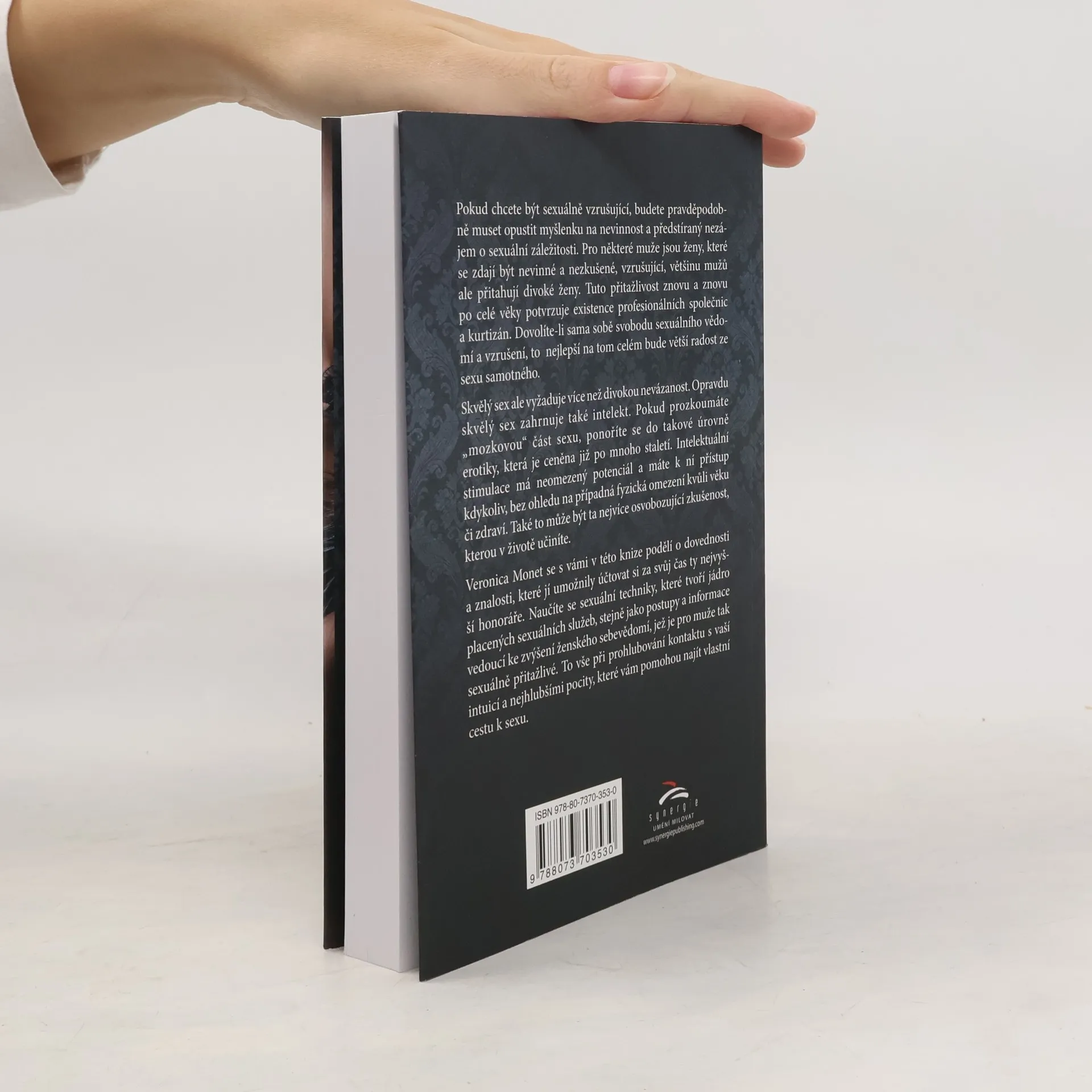 Veronica Monet se s vámi v této knize podělí o dovednosti a znalosti, které jí umožnily účtovat si za svůj čas ty nejvyšší honoráře. Naučíte se sexuální techniky, které tvoří jádro placených sexuálních služeb, stejně jako postupy a informace vedoucí ke zvýšení ženského sebevědomí, jež je pro muže tak sexuálně přitažlivé. To vše při prohlubování kontaktu s vaší intuicí a nejhlubšími pocity, které vám pomohou najít vlastní cestu k sexu. Pokud chcete být sexuálně vzrušující, budete pravděpodobně muset opustit myšlenku na nevinnost a předstíraný nezájem o sexuální záležitosti. Pro některé muže jsou ženy, které se zdají být nevinné a nezkušené, vzrušující, většinu mužů ale přitahují divoké ženy. Tuto přitažlivost znovu a znovu po celé věky potvrzuje existence profesionálních společnic a kurtizán. Dovolíte-li sama sobě svobodu sexuálního vědomí a vzrušení, to nejlepší na tom celém bude větší radost ze sexu samotného.