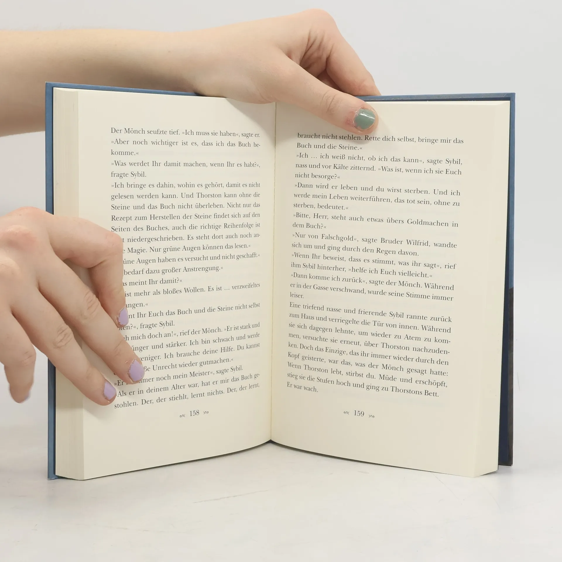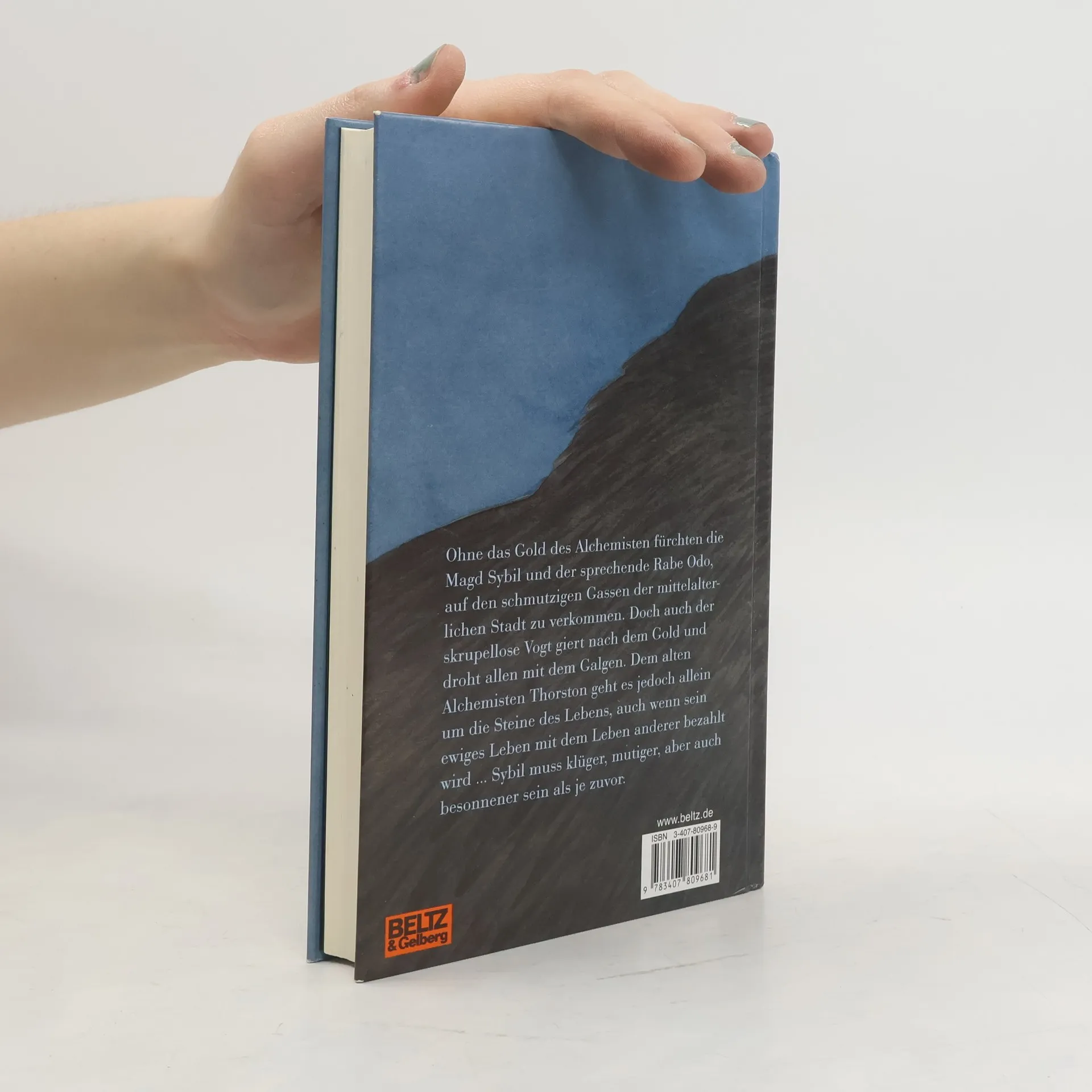 England 1046: Die Magd Sybil, 13 Jahre alt, und der sprechende Rabe Odo stehen plötzlich vor einer ungewissen Zukunft. Ihren Meister, den alten Alchemisten Thorston, hat der Schlag getroffen, als er die Steine des ewigen Lebens gebraut hatte. Nun droht ihnen, wieder auf den kalten und elenden Straßen der kleinen englischen Stadt zu landen. Es sei denn, sie finden das Gold, das der Alchemist hergestellt hat. Oder sie finden in seinem uralten, magischen Buch, das jedoch nur jemand mit grünen Augen lesen kann, das Geheimnis, unbegrenzt Gold zu machen. Aber auch der widerwärtige Vogt der Stadt jagt voller Gier nach dem Gold des Alchemisten, und Sybil und Odo brauchen alle Kraft, um sich zu behaupten. Allmählich merken sie, dass nichts so ist, wie es scheint. Vor allem aber, dass sogar der Tod ihres Meisters und ihr eigenes Leben nicht sicher sind. Avi gelingt es, eine schaurig spannende Geschichte, auch deren komische Elemente, so zu erzählen, dass zugleich ein Stück finstersten Mittelalters lebendig wird.