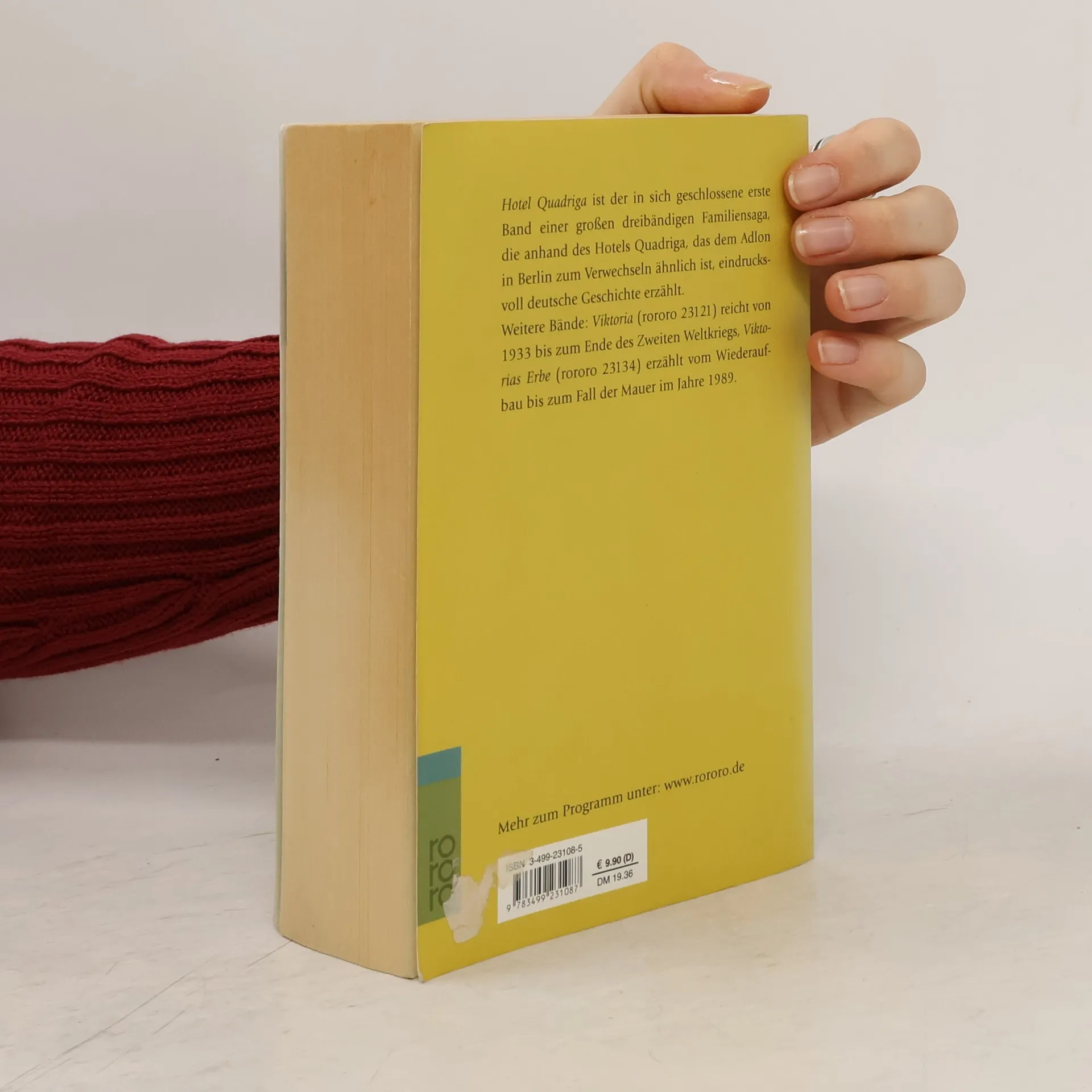 Vor der glanzvollen Fassade des Hotels Quadriga am Brandenburger Tor spielt sich das wechselvolle Leben der Hoteliersfamilie Jochum ab. Der erste Teil der Romantrilogie handelt von den Anfängen 1870, dem Bau des Hotels, den Bällen, Künstlerfesten und Skandalen der Kaiserzeit, den Tragödien des Ersten Weltkriegs, den goldenen zwanziger Jahren und von den politischen Wirren bis zu Hitlers Machtergreifung 1933. «Hotel Quadriga» ist der in sich geschlossene erste Band einer großen dreibändigen Familiensaga, die anhand des Hotels Quadriga, das dem Adlon in Berlin zum Verwechseln ähnlich ist, eindrucksvoll deutsche Geschichte erzählt.