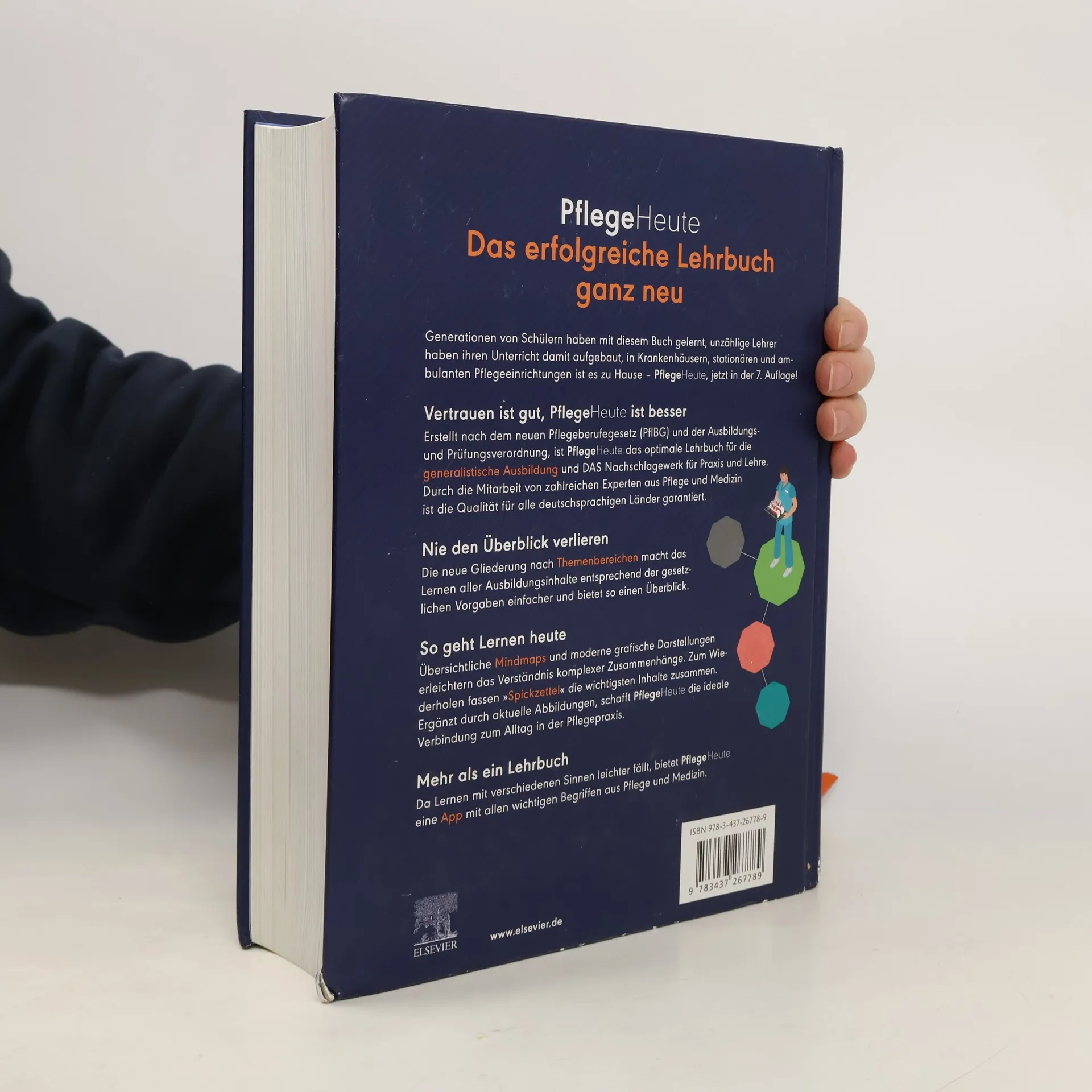 Absoluter Bestseller – über 790.000 verkaufte Exemplare! Dieses Lehrbuch ist seit Generationen ein bewährter Begleiter für Schüler und Lehrer in der Pflegeausbildung. Jetzt in der 7. Auflage, bietet es eine umfassende Grundlage nach dem neuen Pflegeberufegesetz (PflBG) und der Ausbildungs- und Prüfungsverordnung (PflAPrV). PflegeHeute ist das optimale Lehrbuch für die generalistische Ausbildung und ein unverzichtbares Nachschlagewerk für Praxis und Lehre. Dank der Zusammenarbeit mit Experten aus Pflege und Medizin ist die Qualität für alle deutschsprachigen Länder garantiert. Die neue thematische Gliederung erleichtert das Lernen und bietet einen klaren Überblick über alle Ausbildungsinhalte. Übersichtliche Mindmaps und moderne Grafiken unterstützen das Verständnis komplexer Zusammenhänge, während „Spickzettel“ die wichtigsten Inhalte zusammenfassen. Aktuelle Abbildungen schaffen eine Verbindung zur Praxis. Zusätzlich bietet das Buch eine App mit Fachbegriffen, Definitionen, Krankheitsbildern und Pflegeplanungen sowie Podcasts zu zentralen Themen der Pflege, was ein multimediales und effektives Lernen ermöglicht. Es bereitet Auszubildende optimal auf ihre berufliche Praxis und Verantwortung vor und gewährleistet eine gesetzeskonforme Ausbildung, unabhängig vom Bundesland oder Curriculum.