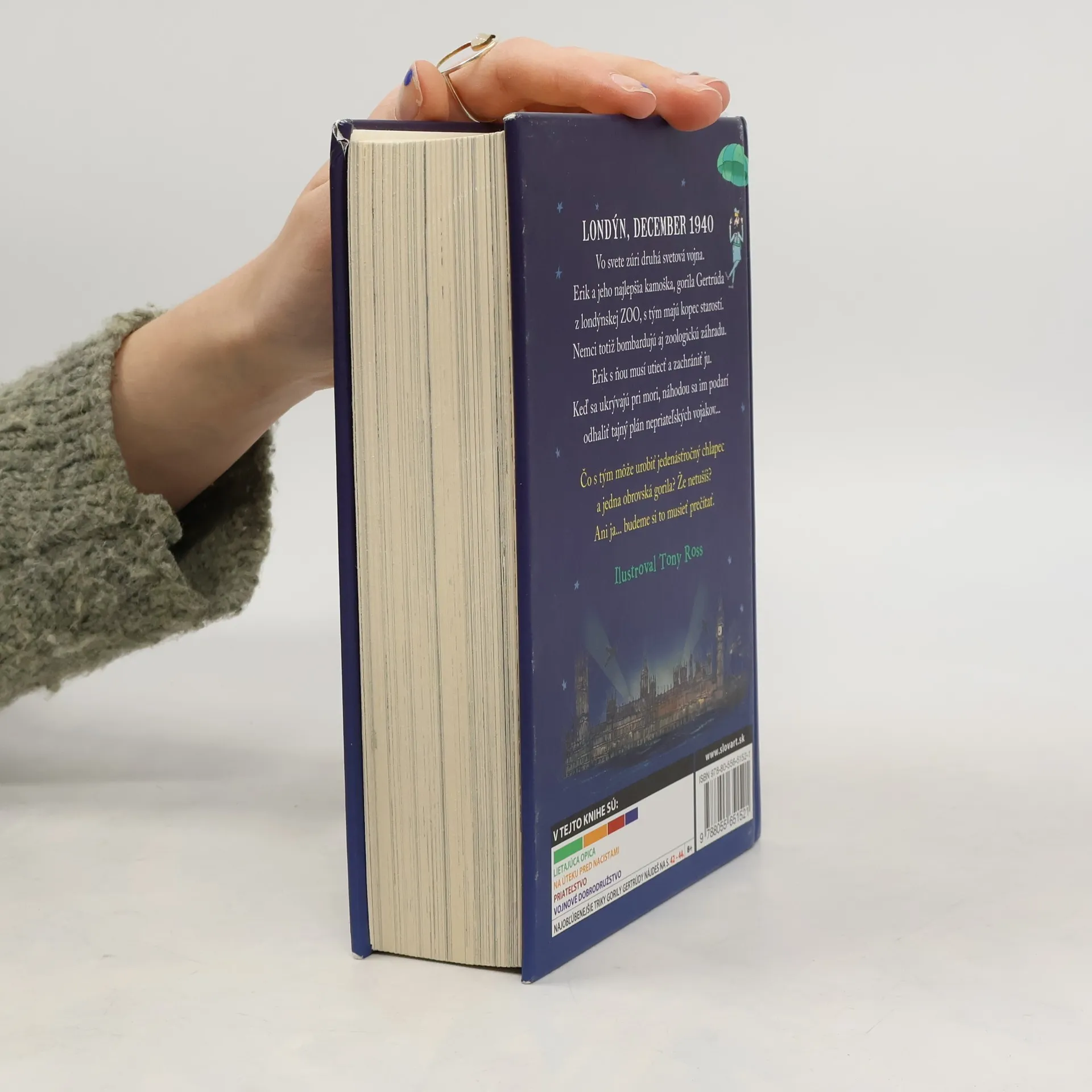 Ďalšia kniha od svetoznámeho britského komika a autora detských bestsellerov Davida Walliamsa je príbehom chlapca, ktorý má ozajstný problém.Musí pred bombardovaním počas druhej svetovej vojny zachrániť opice. Ako to? V roku 1940 je totiž Veľká Británia vo vojne s nacistickým Nemeckom. Jedenásťročný Erik trávi najviac času v londýnskej zoo, kde žije zviera, ktoré je preňho veľmi dôležité - gorila Getrúda. Erik ju chce ochrániť pred bombovými útokmi, a tak sa so svojím strýkom Sidom, ošetrovateľom v zoo, rozhodne s Gertrúdou utiecť. Ukrývajú sa pri mori a úplnou náhodou sa im podarí odhaliť tajný plán nepriateľských vojakov...