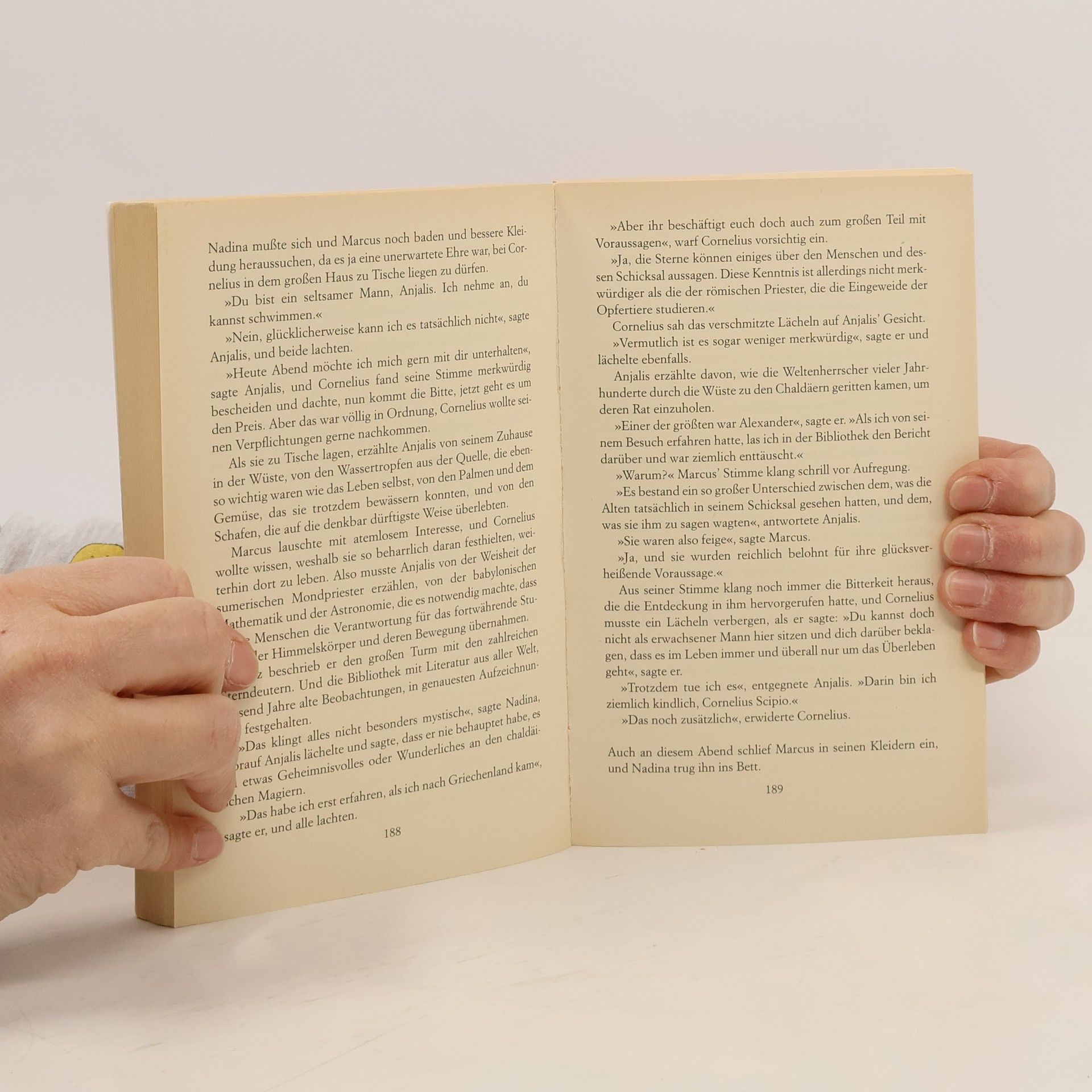 Die Geschichte entführt in die unterschiedlichen Lebens- und Denkweisen der römischen, griechischen und ägyptischen Welt zu Beginn unserer Zeitrechnung. Sie berührt durch ein Familienschicksal, das in die Philosophie sowie die Götter- und Dämonenwelt dieser Zeit eingewoben ist und über Generationen hinweg 470 Seiten füllt. Allerdings erreichen die Erfolge von Simon oder Hannas Töchtern nicht ganz das Niveau dieses Romans von Marianne Fredriksson. Viele Passagen sind langatmig und entfernen sich vom eigentlichen Handlungsfaden, was zu Brüchen führt. Dennoch sind beide Ebenen spannend: die Auseinandersetzung mit den Glaubens- und Kulturströmungen zur Zeit Christi und die Handlung, die von Marcus und Eneides erzählt wird. Diese beiden Jungen sind Söhne des römischen Offiziers Salvius, der offen mit seiner unglücklichen Ehe zu Cornelia und seiner Liebe zu Seleme, einer Sklavin, umgeht. Beide Frauen werden schwanger, und Seleme zieht Marcus und Eneides als Amme groß, bis das Schicksal und die Autorin dramatische Wendungen einführen. Seleme wird verkauft, und Anjalis, der Chaldäer und Sohn des Balthasar, wird zur Leitfigur des Romans und kümmert sich um die Jungen. Alle Charaktere sind auf der Suche nach Liebe, Rache, Erkenntnis und der Heimat ihrer Seele. Genüssliche und einnehmende Lesestunden sind garantiert.