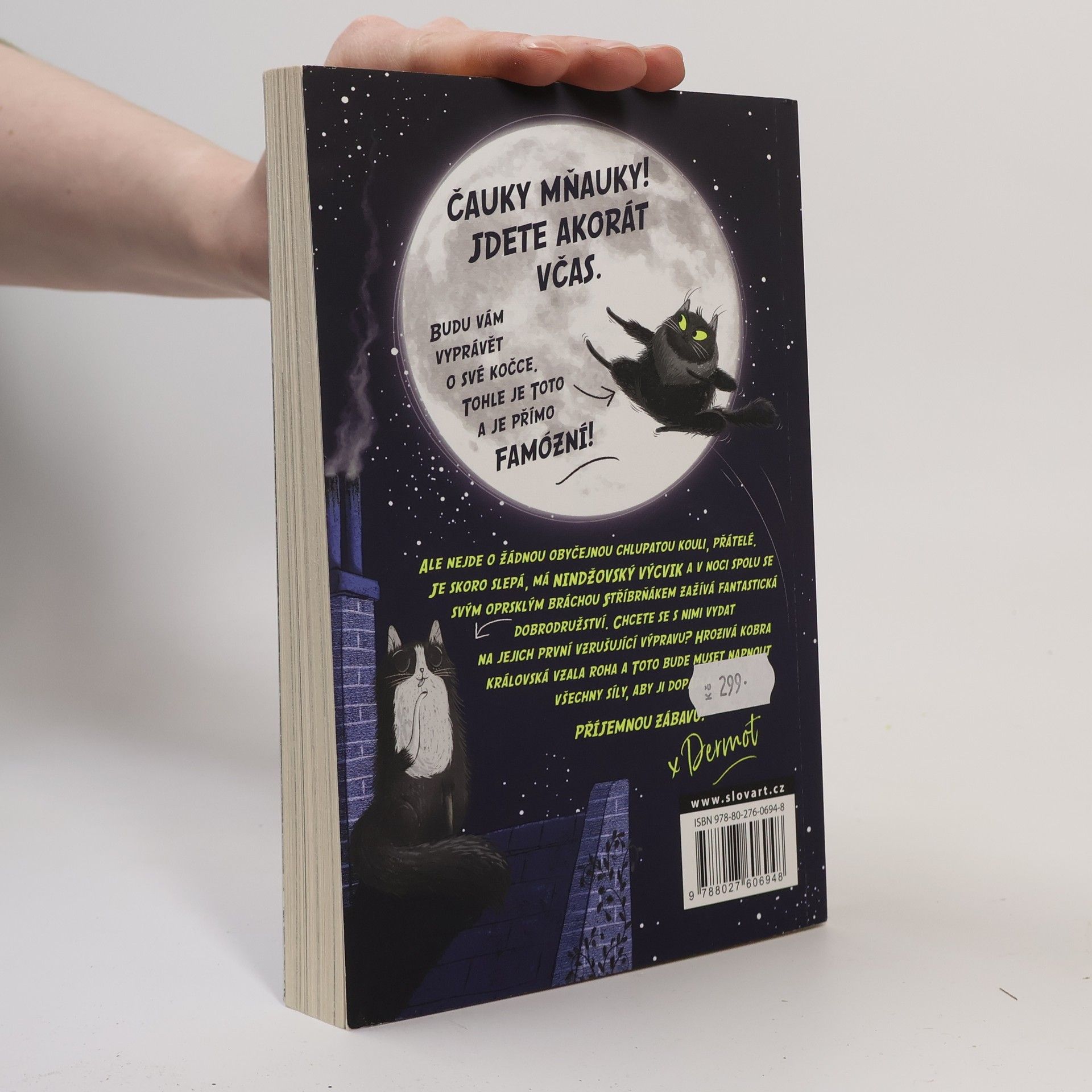 ČAUKY MŇAUKY! JDETE AKORÁT VČAS. BUDU VÁM VYPRÁVĚT O SVÉ KOČCE. TOHLE JE TOTO A JE PŘÍMO FAMÓZNÍ!Ale nejde o žádnou obyčejnou chlupatou kouli, přátelé. Je skoro slepá, má NINDŽOVSKÝ VÝCVIK a v noci spolu se svým oprsklým bráchou Stříbrňákem zažívá fantastická dobrodružství. Chcete se k nim přidat na jejich první vzrušující výpravu? Hrozivá kobra královská vzala roha a Toto bude muset napnout všechny síly, aby ji dopadla…PŘÍJEMNOU ZÁBAVU!