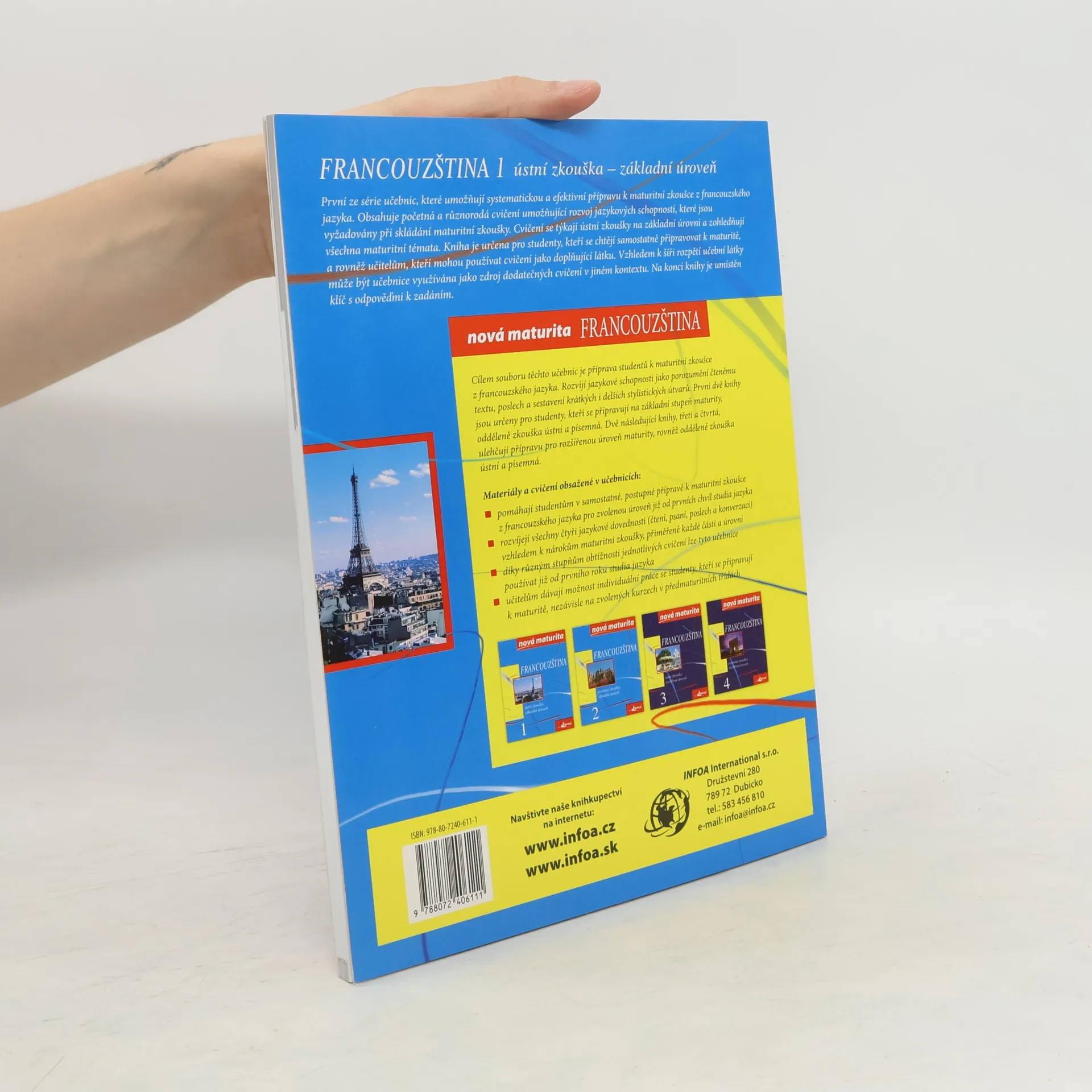Edice Nová maturita - francouzština se skládá ze 4 učebnic. První z těchto učebnic umožňuje systematickou a efektivní přípravu na základní stupeň maturity. Obsahuje početná a různorodá cvičení, je vhodná k samostatné přípravě, ale i pro učitele jako doplňkový materiál. V závěru učebnic je klíč. (Bližší informace k souboru: První dvě knihy jsou určeny pro studenty připravující se na základní stupeň maturity (A1 až A2+). Knihy třetí a čtvrtá jsou určeny k přípravě na rozšířenou úroveň maturity (B1).