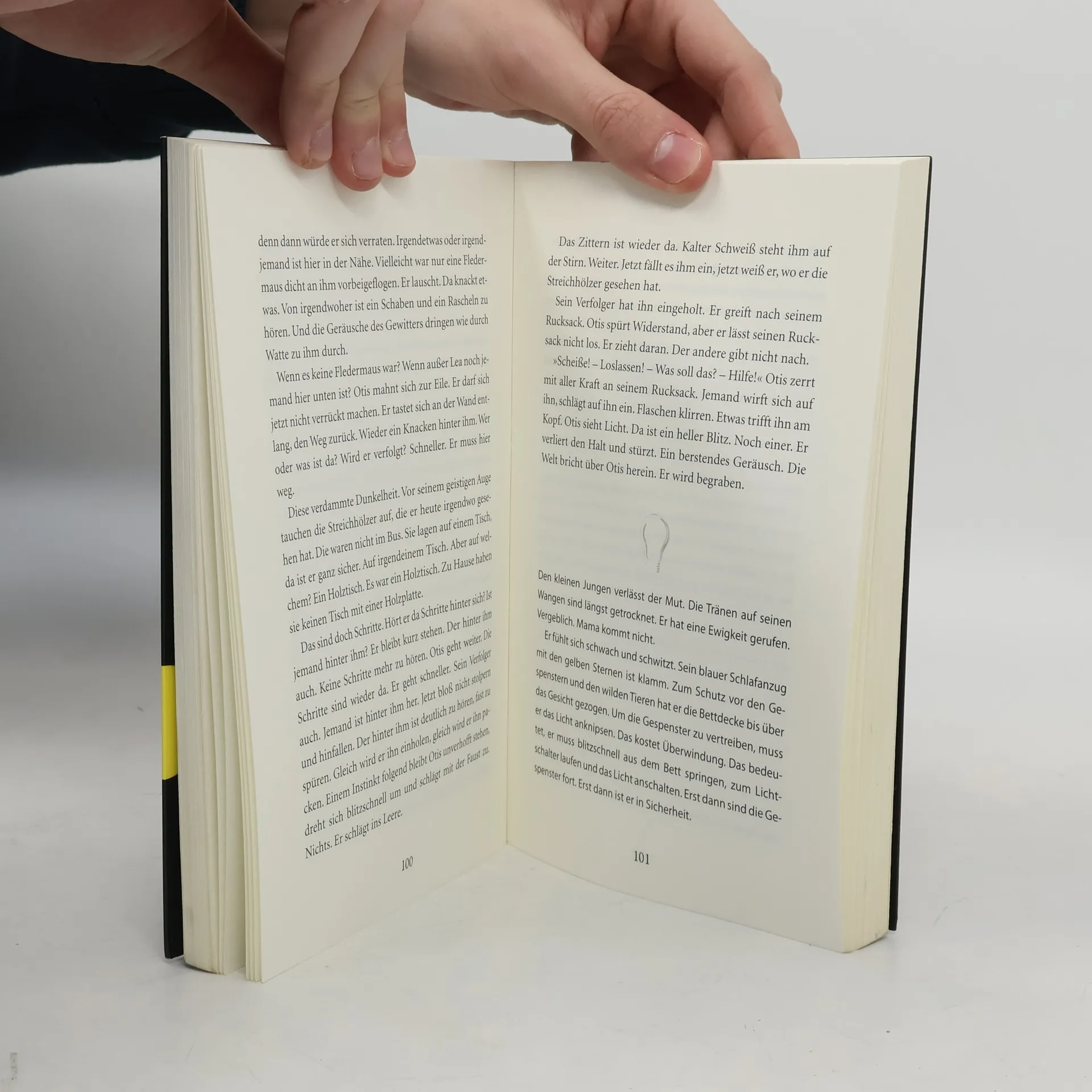 Otis will nur eine Flasche Wein aus dem Keller des alten Klosters holen. Da schlägt die Tür zu und das Licht geht aus. Zappenduster ist es. Doch es scheint noch jemand mit ihm eingesperrt zu sein: Lea, die arrogante Zicke aus der Parallelklasse. Ausgerechnet die! Aber aus dieser Nummer kommen sie nur gemeinsam raus. Sie tasten sich durch den Raum, erkunden das Gewölbe – und auch ihr Gegenüber. Zum ersten Mal lachen sie zusammen. Und zum ersten Mal berühren sie sich. Ein Kammerspiel im Dunkeln. Ab 13 Jahren