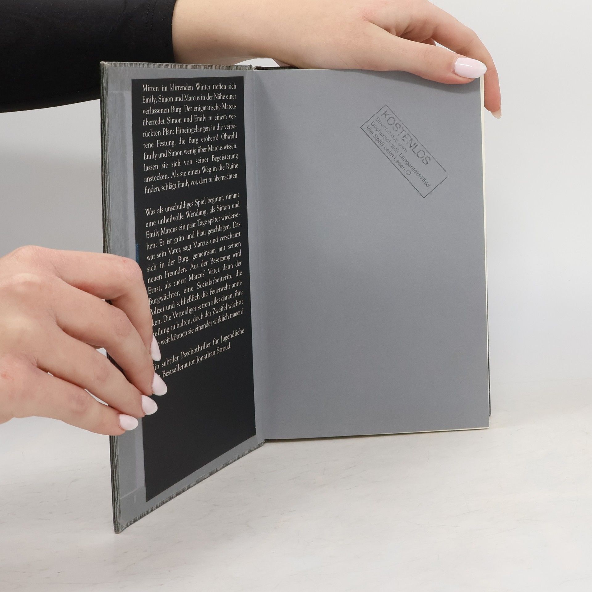 Der knisternde Psychothriller des umjubelten Bartimäus-Starautors Eigentlich wissen Emily und Simon so gut wie nichts über Marcus. Es war Zufall, dass sie einander auf dem gesperrten Burggelände begegneten; und es war nur eine fixe Idee, einzusteigen und in der Ruine zu übernachten. Einfach so, als kleiner Nervenkitzel inmitten öder Ferien. Doch Marcus verwandelt die Burg in eine Festung mit vereisten Treppen und bereit liegenden Wurfgeschossen. Emily und Simon sind bei ihm, als er schwört, nie mehr nach Hause zurückzugehen – die beiden machen sich ihren eigenen Reim auf die blauen Flecken in Marcus’ Gesicht. Währenddessen rücken sie draußen vor: zunächst nur Marcus’ Vater, dann der Burgwächter, Polizei, eine Sozialarbeiterin, Feuerwehr mit Gerät – die Belagerer, der FEIND, der Markus herausholen will! Was als übermütiges Spiel begann, schlägt still, heimlich und leise um in einen Albtraum. • Atmosphärisch dicht, unglaublich fesselnd – Hochspannung, die den Atem verschlägt • Mit Kartenmaterial der Burgruine