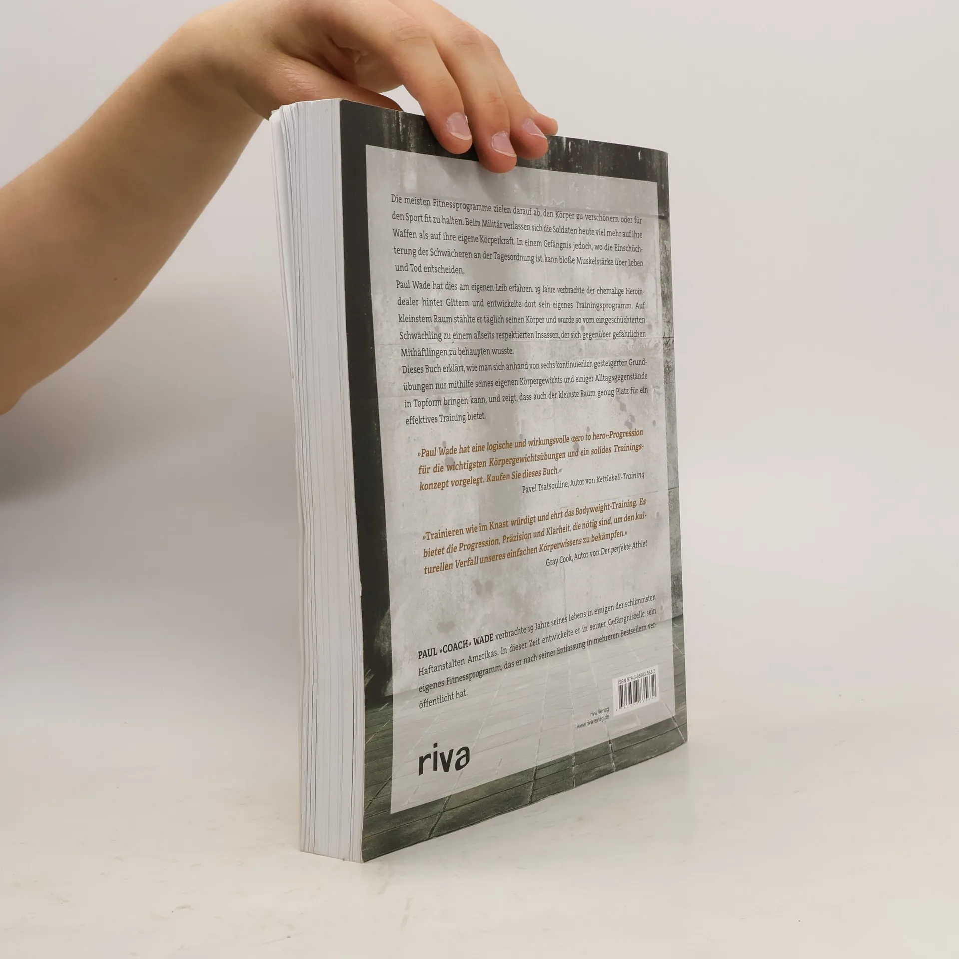 Die meisten Fitnessprogramme zielen darauf ab, den Körper zu verschönern oder für den Sport fit zu halten. Beim Militär verlassen sich die Soldaten heute viel mehr auf ihre Waffen als auf ihre eigene Körperkraft. In einem Gefängnis jedoch, wo die Einschüchterung der Schwächeren an der Tagesordnung ist, kann bloße Muskelstärke über Leben und Tod entscheiden. Paul Wade hat dies am eigenen Leib erfahren. 19 Jahre verbrachte der ehemalige Heroindealer hinter Gittern und entwickelte dort sein eigenes Trainingsprogramm. Auf kleinstem Raum stählte er täglich seinen Körper und wurde so vom eingeschüchterten Schwächling zu einem allseits respektierten Insassen, der sich gegenüber gefährlichen Mithäftlingen zu behaupten wusste. Dieses Buch erklärt, wie man sich anhand von sechs kontinuierlich gesteigerten Basisübungen nur mithilfe seines eigenen Körpergewichts und einiger Alltagsgegenstände in Topform bringen kann, und zeigt, dass auch der kleinste Raum genug Platz für ein effektives Training bietet.