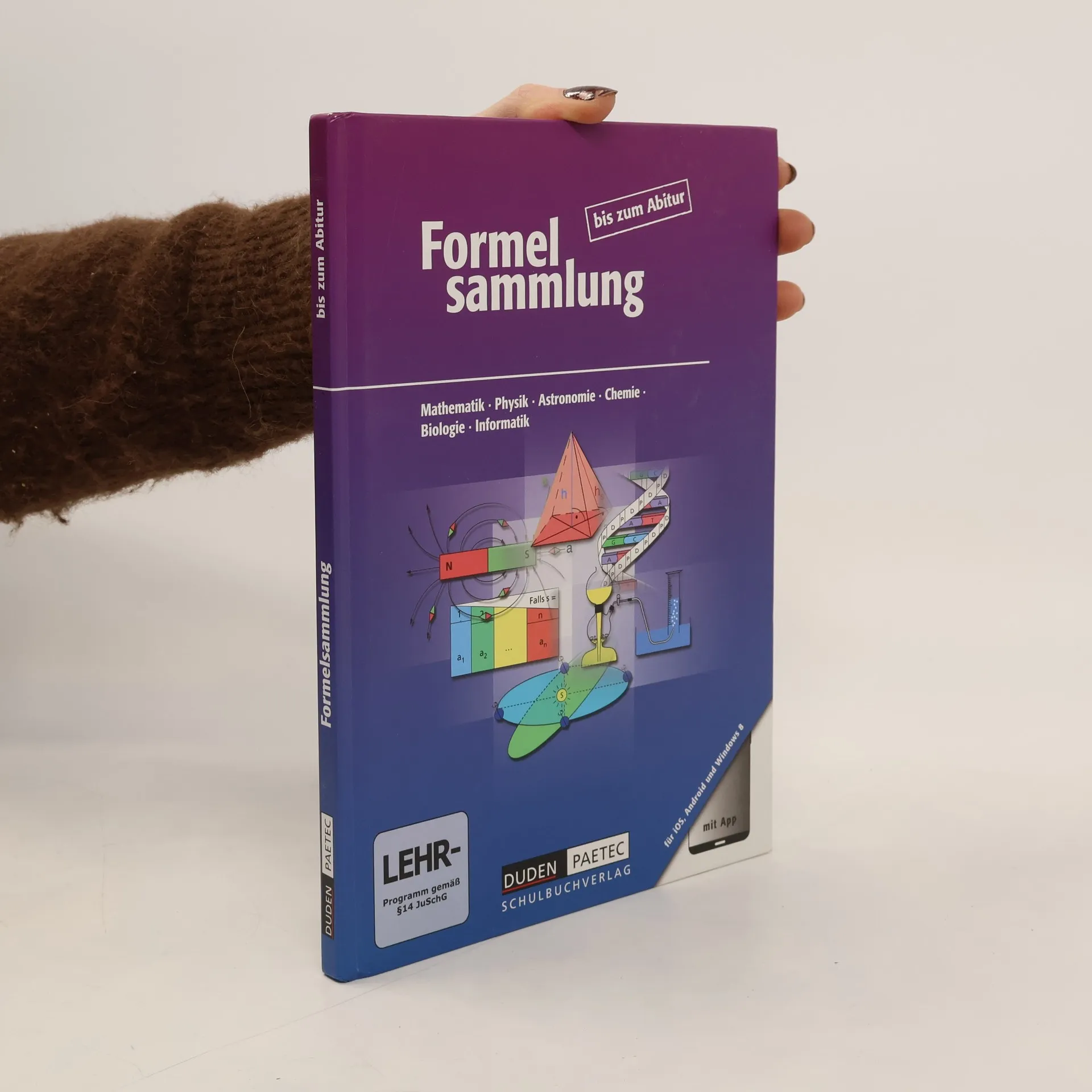 Informationen zum Titel: Die bewährte Formelsammlung bis zum Abitur - jetzt zusätzlich als Ausgabe mit App. Vorteile der App Programmiert für die wichtigsten Betriebssysteme: Apple iOS, Android, Windows 8 Umfasst alle Fächer des Printmediums Besitzt innovative Suchfunktionen und die Möglichkeit, Bookmarks (Favoriten) zu setzen und zu kommentieren Enthalten sind: ca. 1200 vorgerechnete Anwendungsbeispiele, ein funktionales Periodensystem und Daten zu allen chemischen Elementen, eine Notizfunktion, Deutschlandkarten Verbesserungen im Printmedium Im Chemieteil wird auf die neuen Gefahrenstoffsymbole Bezug genommen. Die Entsorgungssätze stehen im Zentrum. Im Mathematikteil sind einige unbestimmte Integrale hinzugekommen (u. a. das zum natürlichen Logarithmus). Der Informatikteil konzentriert sich bei den erweiterten ASCII-Zeichen auf den Zeichensatz ISO 8859-1.