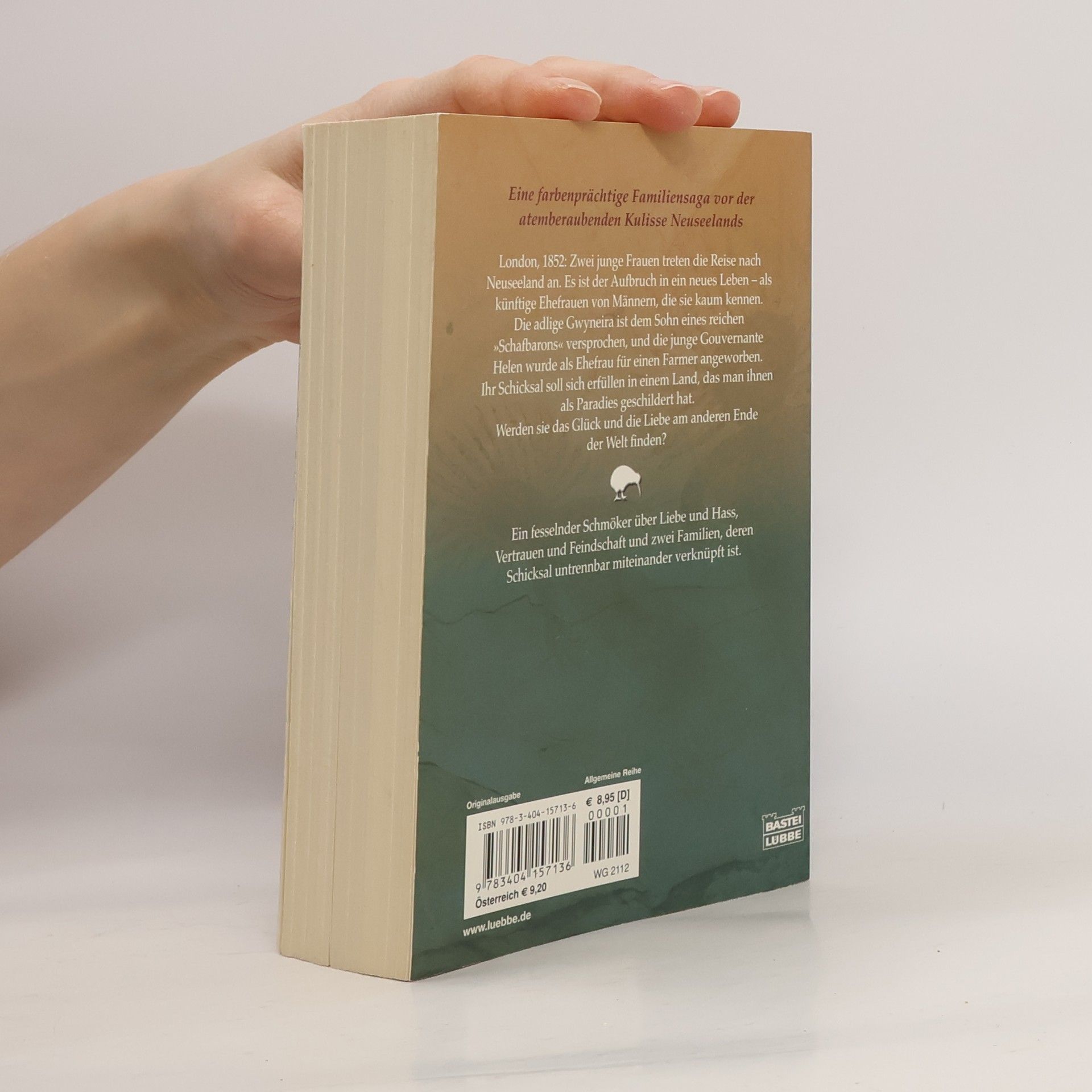 London, 1852: Zwei junge Frauen treten die Reise nach Neuseeland an. Es ist der Aufbruch in ein neues Leben - als künftige Ehefrauen von Männern, die sie kaum kennen. Die adlige Gwyneira ist dem Sohn eines reichen „Schafbarons“ versprochen, und die junge Gouvernante Helen wurde als Ehefrau für einen Farmer angeworben. Ihr Schicksal soll sich erfüllen in einem Land, das man ihnen als Paradies geschildert hat. Werden sie das Glück und die Liebe am anderen Ende der Welt finden? Ein fesselnder Schmöker über Liebe und Hass, Vertrauen und Feindschaft und zwei Familien, deren Schicksal untrennbar miteinander verknüpft ist.