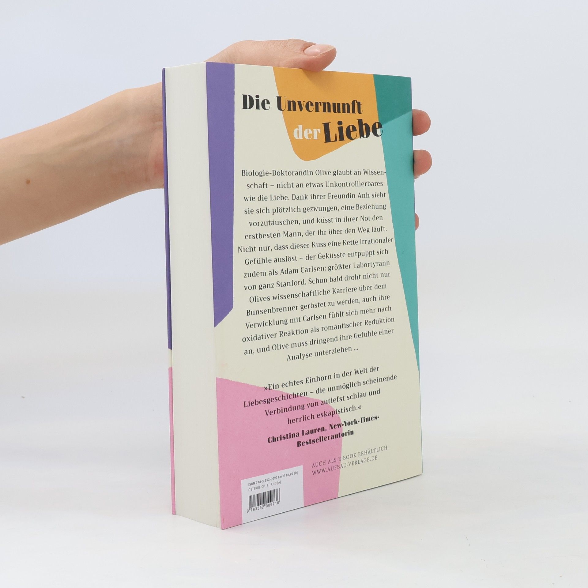 Die Unvernunft der Liebe Biologie-Doktorandin Olive glaubt an Wissenschaft – nicht an etwas Unkontrollierbares wie die Liebe. Dank ihrer Freundin Anh sieht sie sich plötzlich gezwungen, eine Beziehung vorzutäuschen, und küsst in ihrer Not den erstbesten Mann, der ihr über den Weg läuft. Nicht nur, dass dieser Kuss eine Kette irrationaler Gefühle auslöst – der Geküsste entpuppt sich zudem als Adam Carlsen: größter Labortyrann von ganz Stanford. Schon bald droht nicht nur Olives wissenschaftliche Karriere über dem Bunsenbrenner geröstet zu werden, auch ihre Verwicklung mit Carlsen fühlt sich mehr nach oxidativer Reaktion als romantischer Reduktion an, und Olive muss dringend ihre Gefühle einer Analyse unterziehen … “Ein echtes Einhorn in der Welt der Liebesgeschichten – die unmöglich scheinende Verbindung von zutiefst schlau und herrlich eskapistisch.” Christina Lauren, New-York-Times-Bestsellerautorin