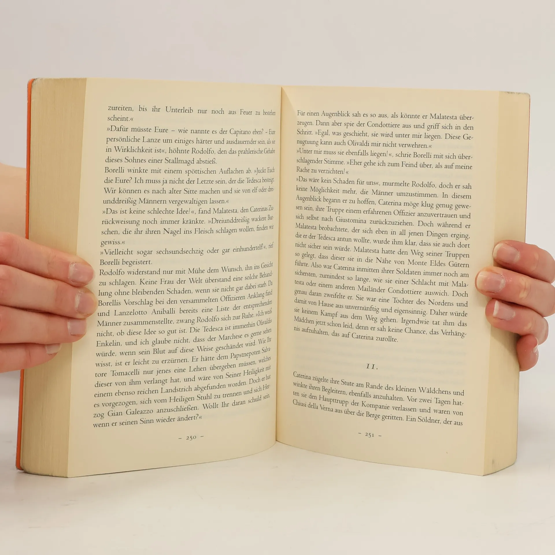 Italien im 14. Jahrhundert: Nachdem die Familie des jungen Edelfräuleins Caterina einer groß angelegten Intrige zum Opfer gefallen ist, muss sie sich alleine durchs Leben schlagen. Der zwielichtige Fabrizio, Stellvertreter ihres Vaters, will ihr das Söldnerheer abkaufen, das sie geerbt hat. Doch sie gibt das Heer nicht auf, sondern führt es selber in die Schlacht – sehr zum Entsetzen der Feinde des Herzogs von Molterossa, in dessen Diensten sie nun steht. Sie versuchen Caterina auf ihre Seite zu ziehen, die sich nicht nur als Kriegerin, sondern auch als Verhandlungsführerin bewähren muss. Doch unter der Rüstung der Kämpferin schlägt das Herz einer liebeshungrigen Frau, die den Werbungen des Feindes zu erliegen droht …