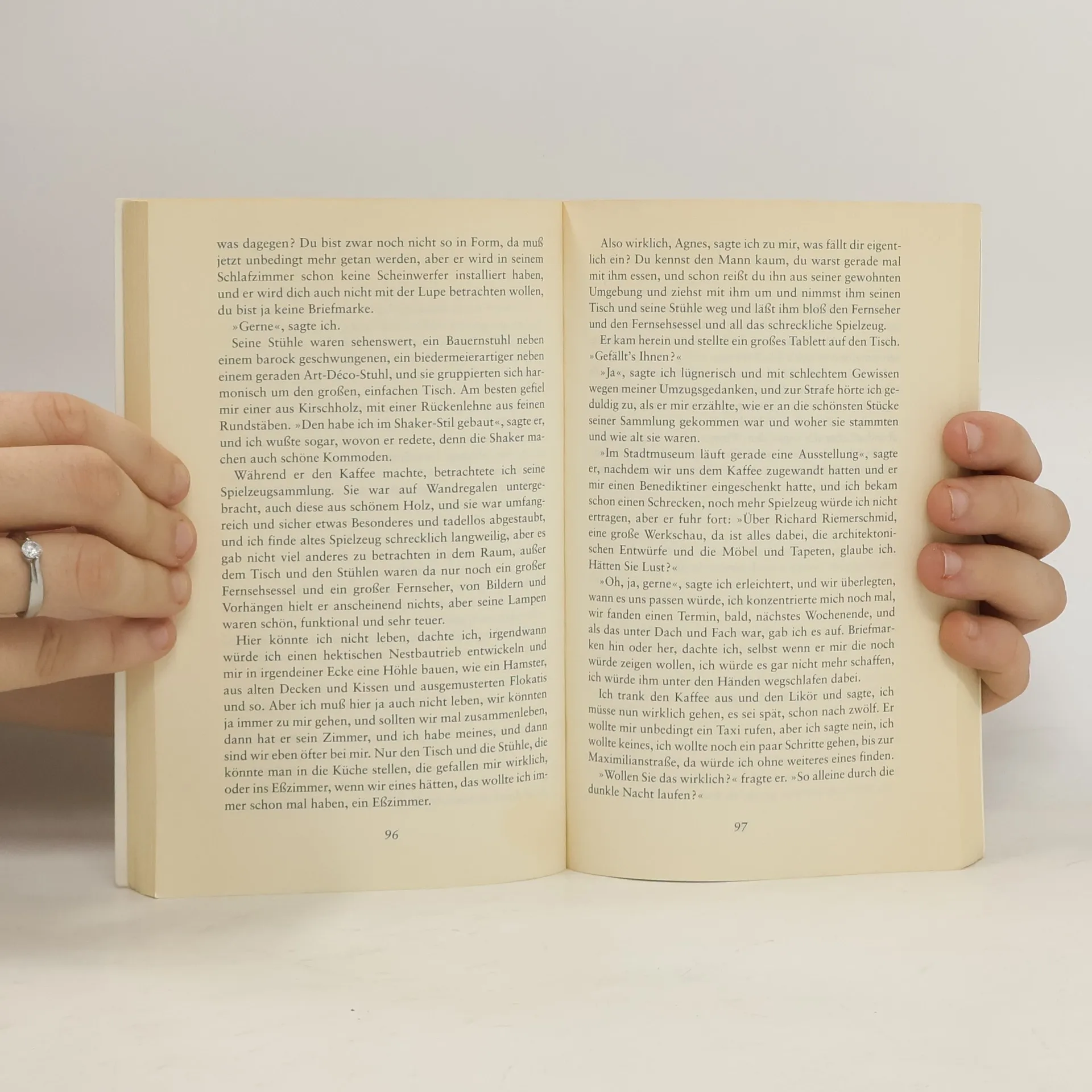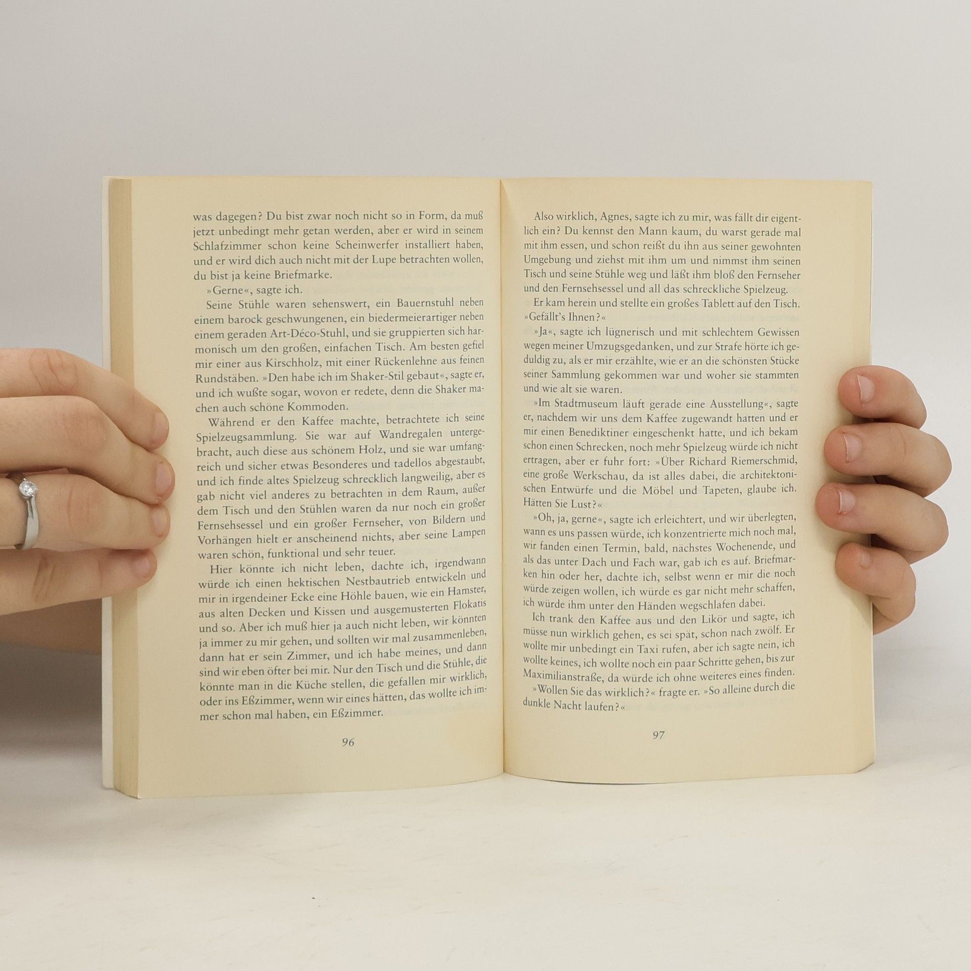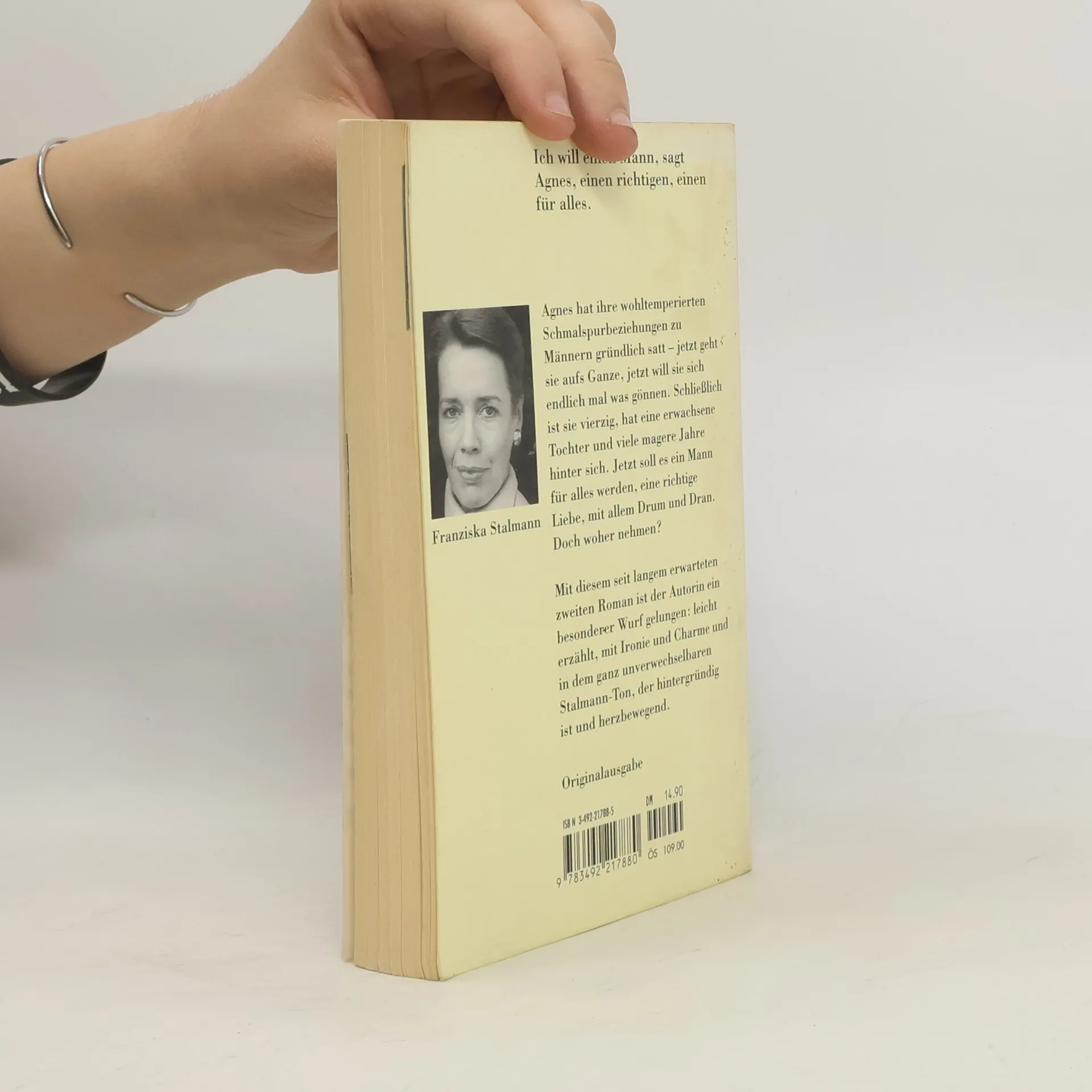 Die 40jährige Agnes, geschieden, erfolgreiche Psychologin, Mutter einer erwachsenen Tochter, versucht eine seit Jahren äwohltemperierte Schmalspurbeziehungä zu einem Lehrer, der äviel Freiraum brauchtä, zu beenden, um nun endlich den Mann für äallesä zu finden.