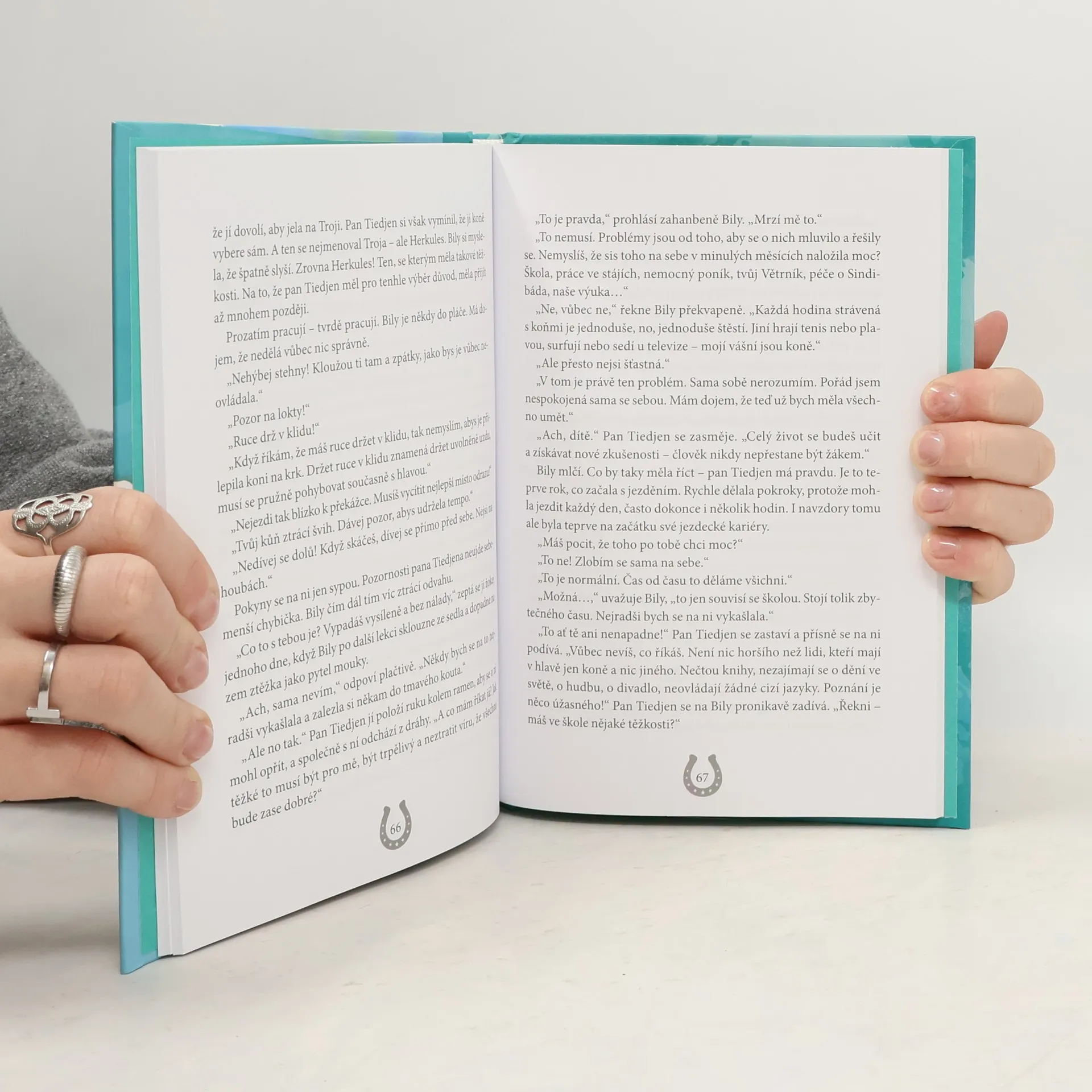 Další dobrodružství Bily a roztomilého tvrdohlavého poníka Větrníka pro všechny milovnice koní a koňských příběhů Bily už se nemůže dočkat prázdnin a volných dnů, které bude moci strávit v sedle. Ale než přijde léto, čeká na ni a na jejího věrného kamaráda, strakatého poníka Větrníka, ještě spousta výzev. Jejich pomoc bude potřebovat nejen pan Tiedjen, když se vážně zraní na závodech, ale také nemocný opuštěný poník, kterého objeví nedaleko Velkého Dvora. Bily tráví u koní každou volnou chvíli a tyto okamžiky by nevyměnila za nic na světě, ovšem tentokrát má před sebou nelehký úkol: musí se připravit na start v parkurové soutěži. Bily ví, že za žádnou cenu nesmí zklamat svého učitele jízdy, slavného žokeje, který v ní vkládá velké naděje, ale zvládne náročný trénink a dokáže si poradit s trémou?