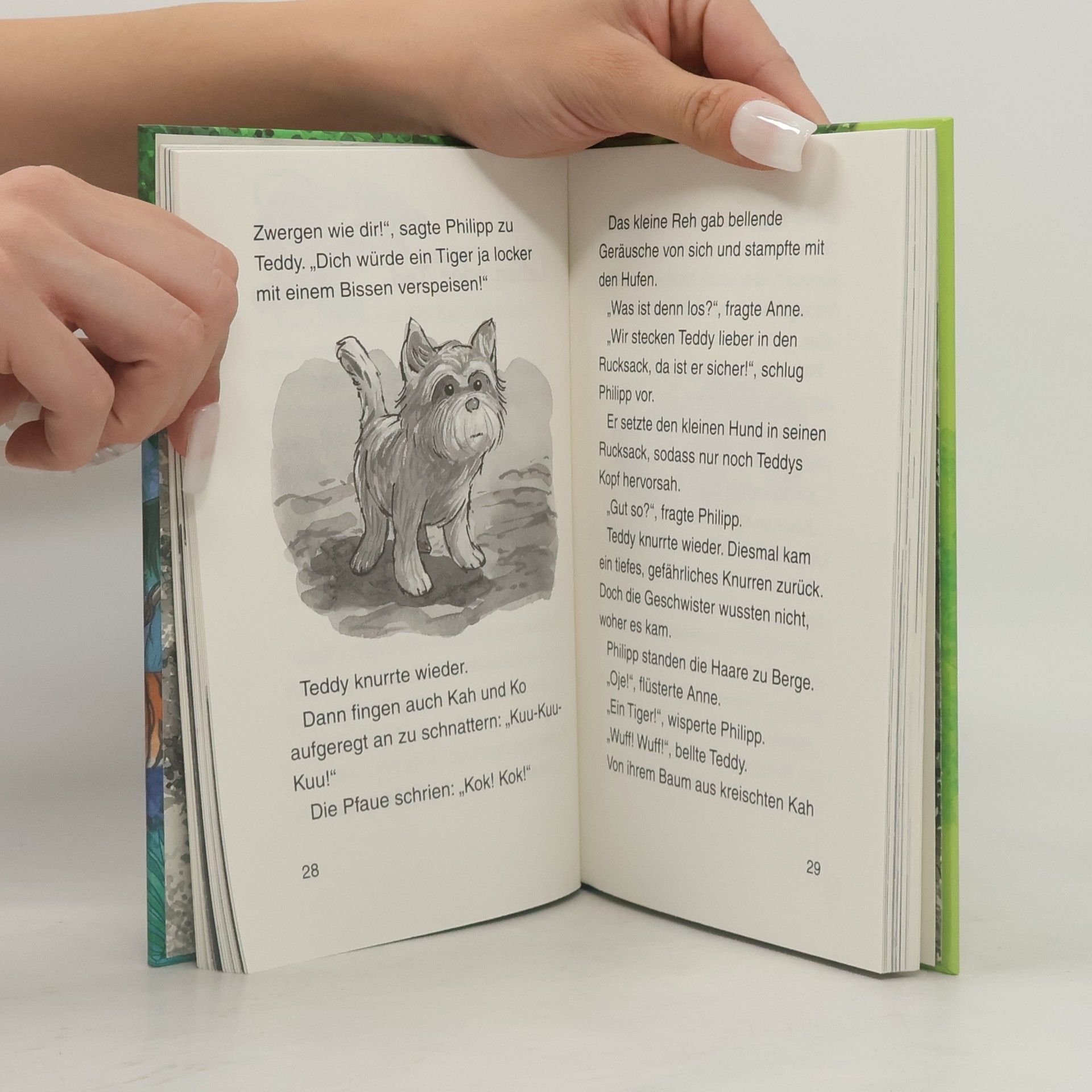 Die erfolgreiche amerikanische Kinderbuchautorin schildert im neuen Band der Reihe "Das magische Baumhaus" (zuletzt "Auf der Fährte der Indianer", ID 8/03) eine magische Reise des 8jährigen Philipp und seiner 7jährigen Schwester aus den heutigen USA nach Indien. Allerdings handelte es sich dabei um ein eigentümlich menschenleeres Land, denn außer einem im Urwald lebenden Einsiedler treffen die Kinder nur auf Tiere wie Schlangen, Affen, Tiger und Elefanten. Diese verhalten sich aber eher wie Stofftiere und lassen sich gerne streicheln oder wie ein Tiger aus einer Tierfalle befreien, ohne die Kinder anzugreifen. Ein verzaubertes Hündchen sorgt für etwas Komik und Spannung, rettet aber die recht alberne Geschichte nicht. Dazu ist sie zudem durch oft mehrmals wiederholte eingeschobene Sachinformationen zu Tieren noch aufdringlich didaktisch. Wenig überzeugend sind auch die sehr dunklen SchwarzWeißIllustrationen, deren Details kaum zu erkennen sind. Abgesehen für Kinder, die beim Lesen Schwierigkeiten haben und nach kurzen einfachen Texten verlangen, zur Anschaffung ungeeignet.. Die magische Reise des kleinen Philipp und seiner Schwester ins Reich der Tiger, nach Indien. Ab 8.