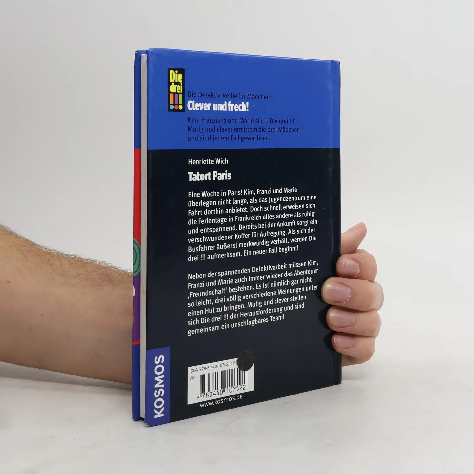 Eine Woche in Paris! Kim, Franziska und Marie überlegen nicht lange, als der Jugendclub eine Fahrt dorthin anbietet. Doch schnell erweisen sich die Ferientage in Frankreich alles andere als ruhig und entspannt: ein Mädchen aus der Gruppe verschwindet eines Abends spurlos. Die drei !!! machen sich auf die Suche. Hätten sie vielleicht doch besser die Polizei einschalten sollen? Neben der spannenden Detektivarbeit müssen Kim, Franziska und Marie auch immer wieder das Abenteuer „Freundschaft“ bestehen. Es ist nämlich gar nicht so leicht, drei völlig verschiedene Meinungen unter einen Hut zu bringen. Mutig und clever stellen sich „Die drei !!!“ der Herausforderung und sind gemeinsam ein unschlagbares Team!