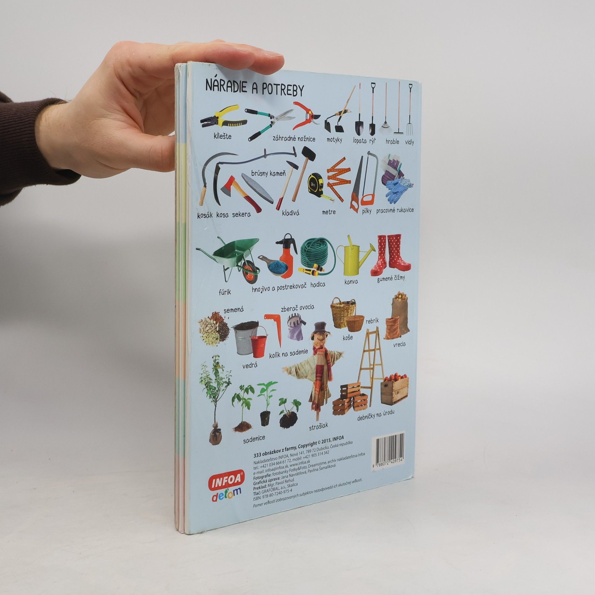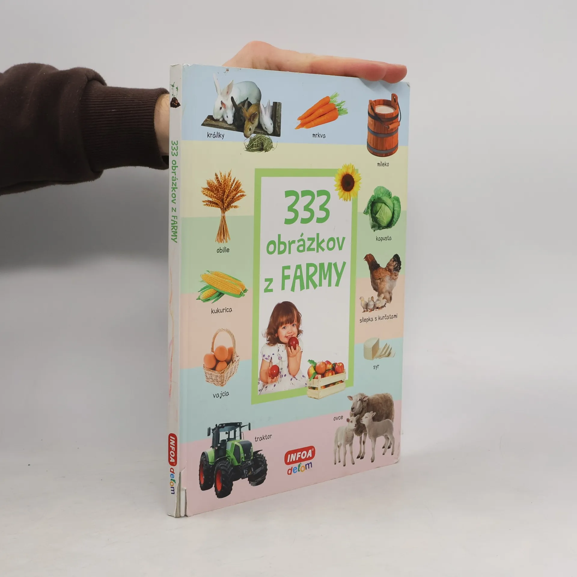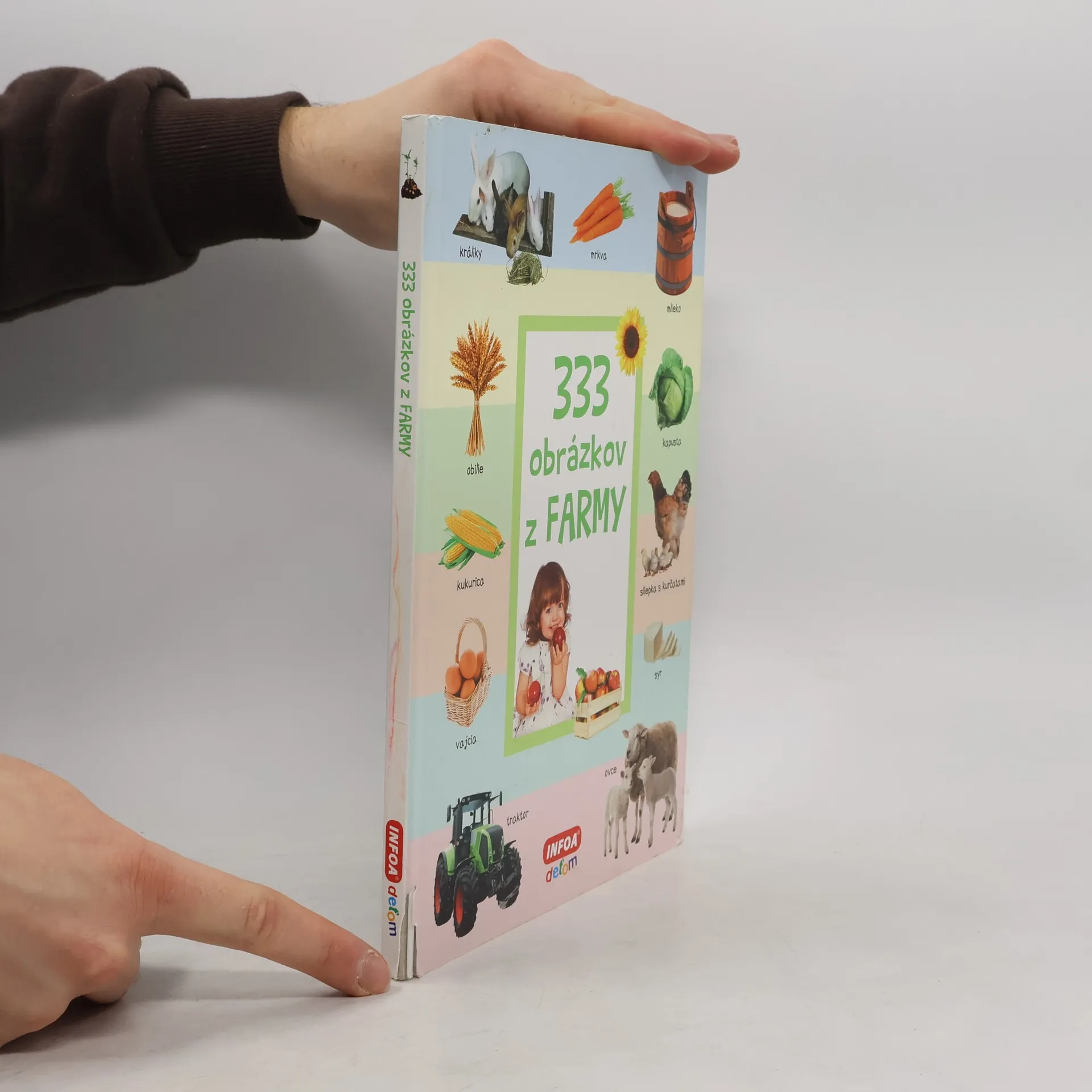 Farebné rozkladacie leporelo pre deti s množstvom farebných fotografií. Obsahuje 333 obrázkov z farmy, ktoré sú tematicky zoradené.