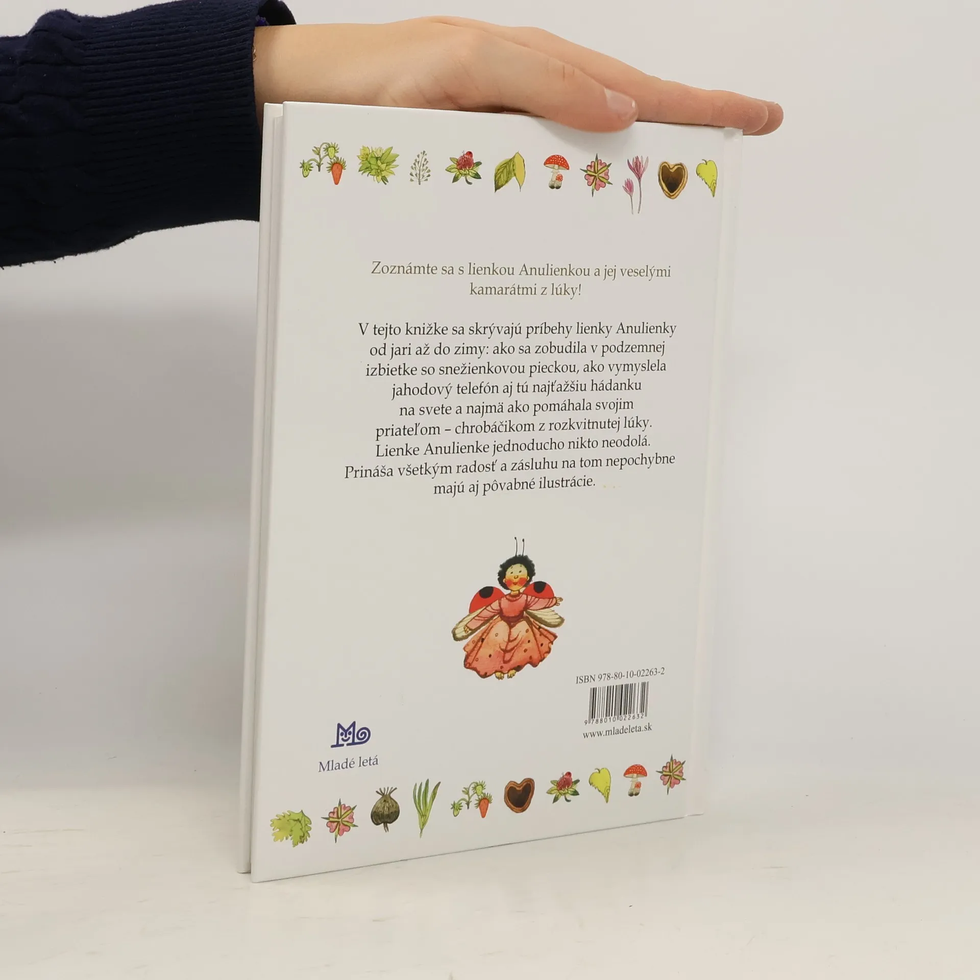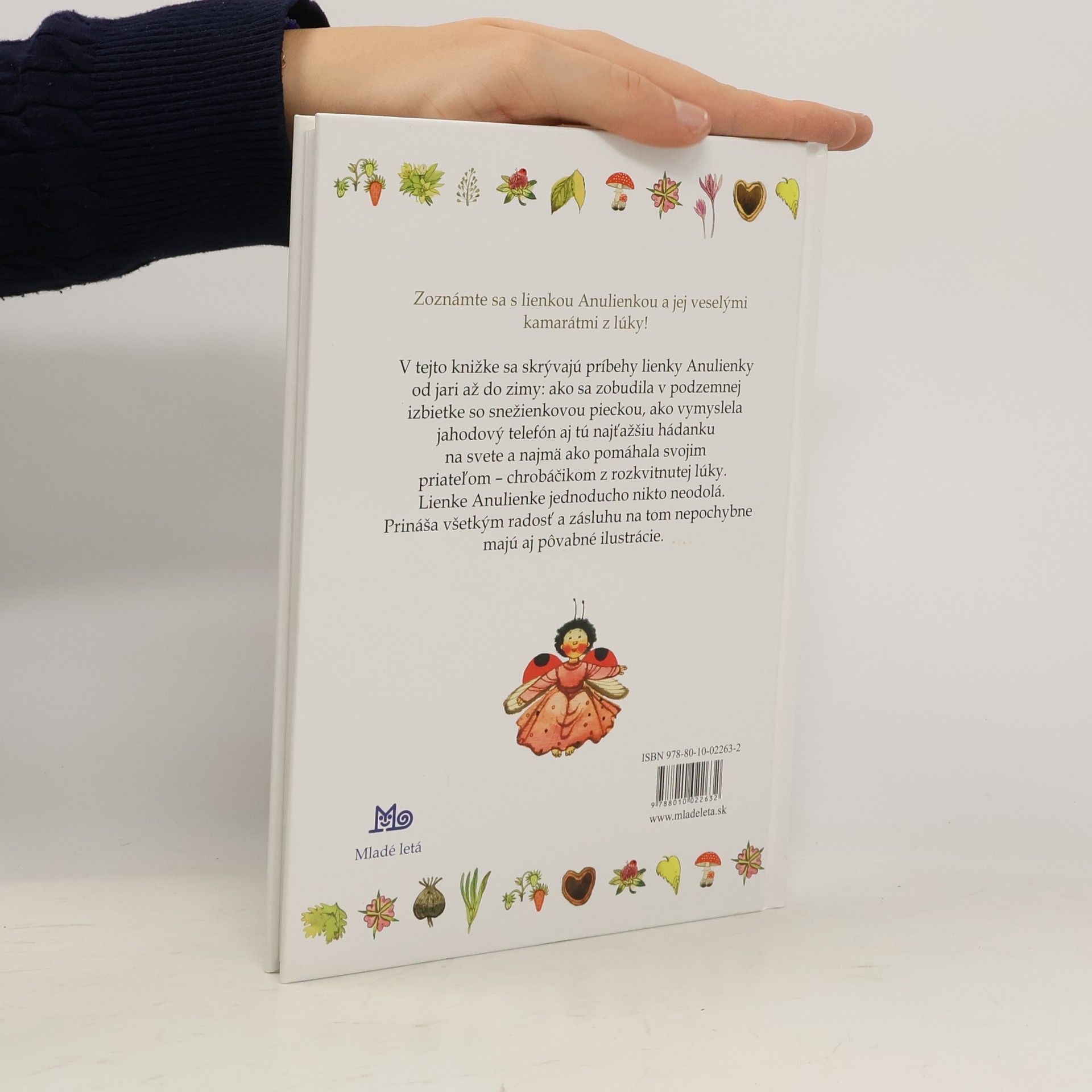 V tejto knižke sa skrývajú milé príbehy lienky Anulienky od jari až do zimy: ako sa zobudila v podzemnej izbietke so snežienkovou pieckou, ako vymyslela jahodový telefón aj tú najťažšiu hádanku na svete a najmä ako pomáhala svojim kamarátom – chrobáčikom z rozkvitnutej lúky. Lienke Anulienkejednoducho nikto neodolá. Prináša všetkým radosť a zásluhu na tom nepochybne majú aj pôvabné ilustrácie. Pre čitateľov od 6 rokov. Cena knihy v čase vydania: 19,50 Kčs.
