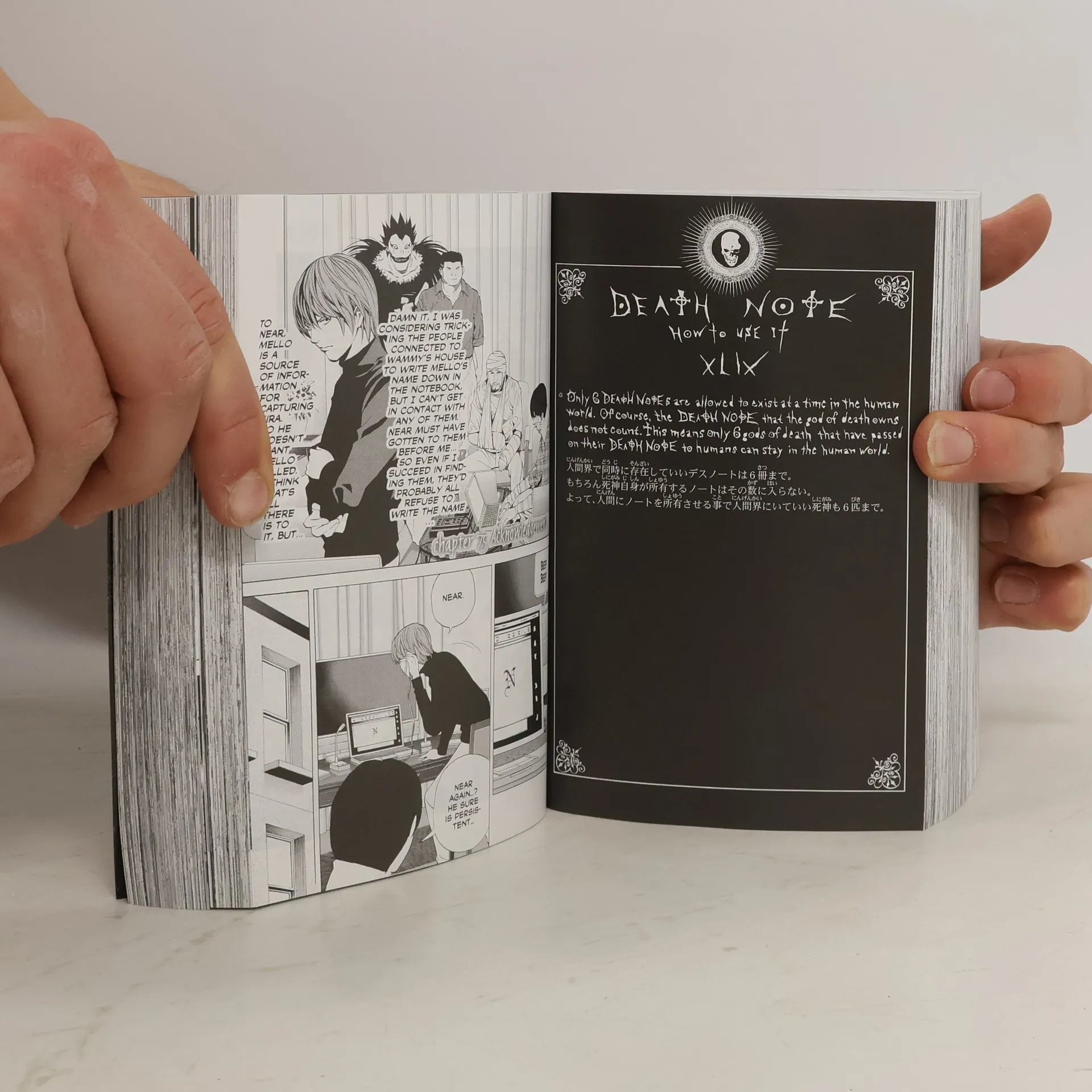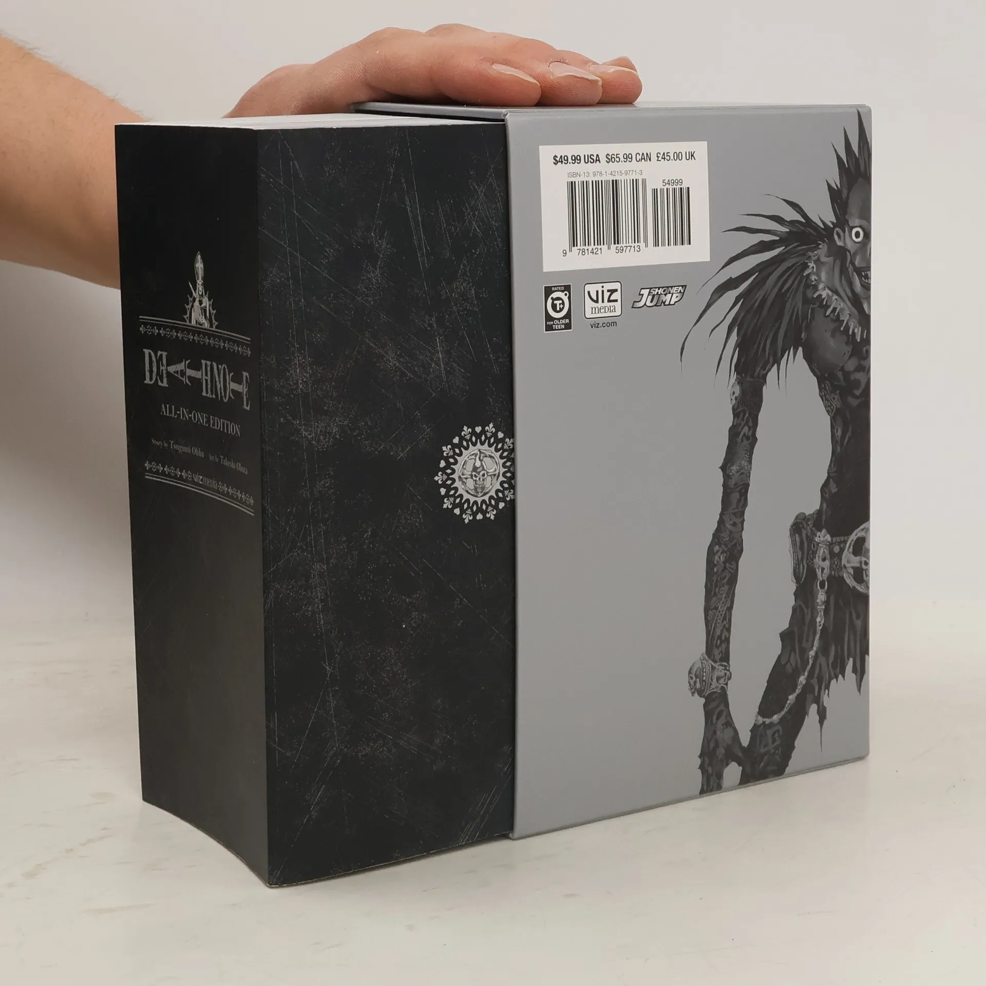 All 12 volumes of Death Note in one monstrously large edition! Light Yagami is an ace student with great prospects—and he's bored out of his mind. But all that changes when he finds the Death Note, a notebook dropped by a rogue Shinigami death god. Any human whose name is written in the notebook dies, and now Light has vowed to use the power of the Death Note to rid the world of evil. But when criminals begin dropping dead, the authorities send the legendary detective L to track down the killer. With L hot on his heels, will Light lose sight of his noble goal…or his life? All 12 volumes of Death Note in one monstrously large edition!