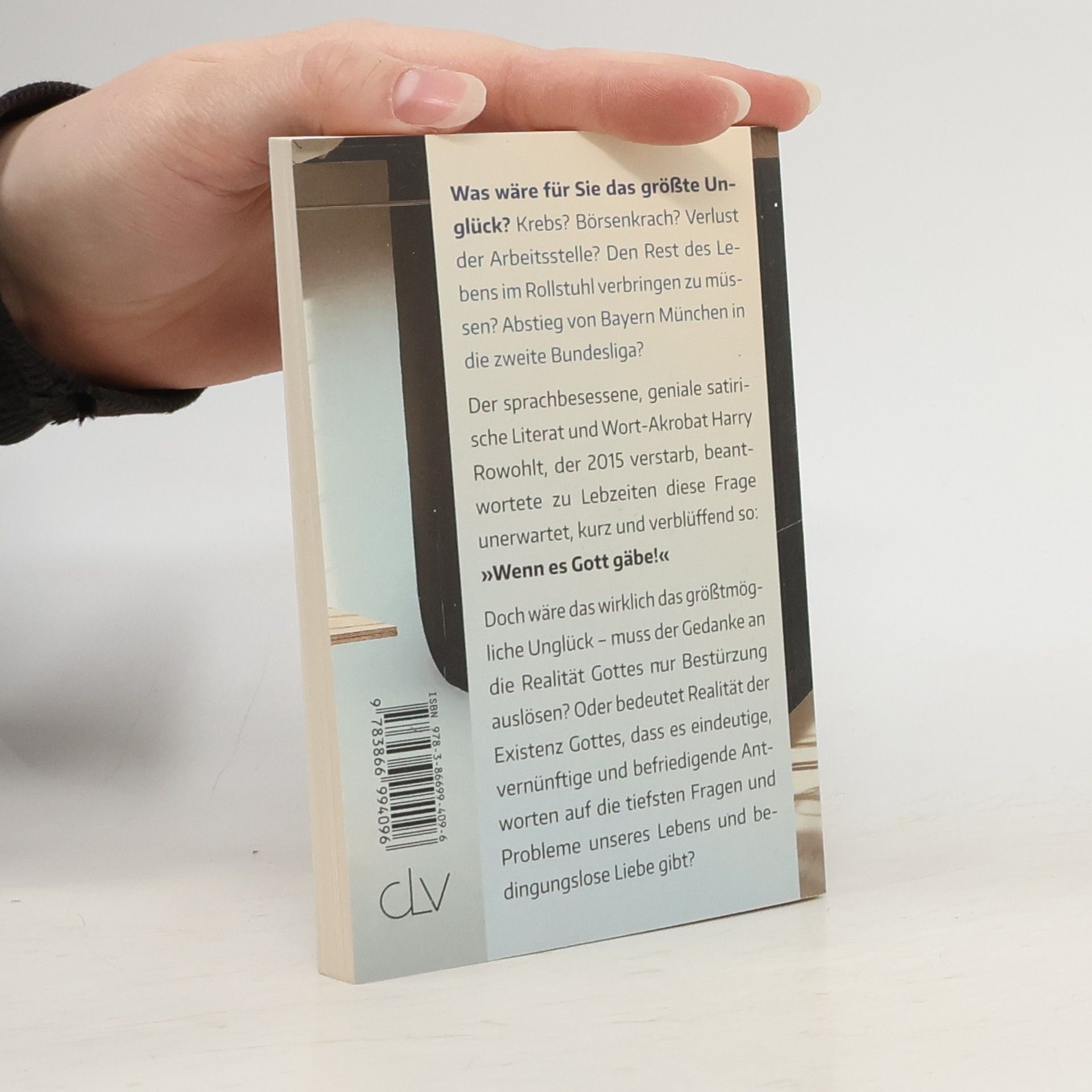 Was wäre für Sie das größte Unglück? Krebs? Börsenkrach? Verlust der Arbeitsstelle? -- Den Rest des Lebens im Rollstuhl verbringen zu müssen? Abstieg von Bayern München in die zweite Bundesliga? Der Sohn eines bekannten Verlegers sollte letztens diese Frage im Magazin der FAZ beantworten. Seine Antwort war unerwartet, kurz und verblüffend: "Wenn es Gott gäbe!" Doch wäre das wirklich solch ein großes Unglück -- muß der Gedanke an die Realität Gottes nur Bestürzung auslösen? Oder bedeutet die Realität der Existenz Gottes, daß es eindeutige, vernünftige und befreiende Antworten auf die tiefsten Fragen und Probleme unseres Lebens gibt? - Back cover.