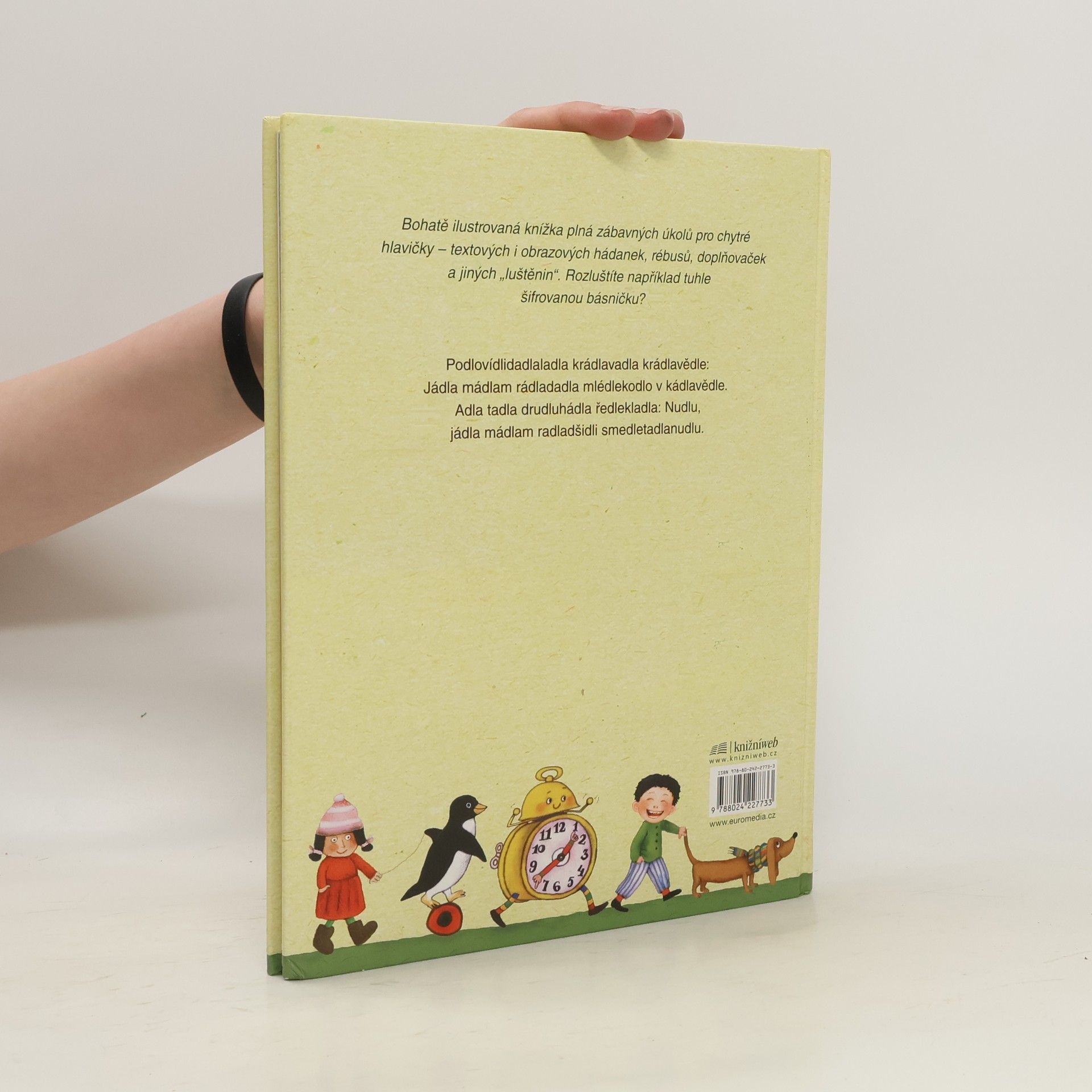 Bohatě ilustrovaná knížka plná zábavných úkolů – hádanek, rébusů, doplňovaček a jiných „luštěnin“ textových i obrazových. Rozluštíte například šifrovanou básničku? Podlovídlidadlaladla krádlavadla krádlavědle: Jádla mádlam rádladadla mlédlekodlo v kádlavědle. Adla tadla drudluhádla ředlekladla: Nudlu, jádla mádlam radladšidli smedletadlanudlu. Pro čtenáře od 8 let.