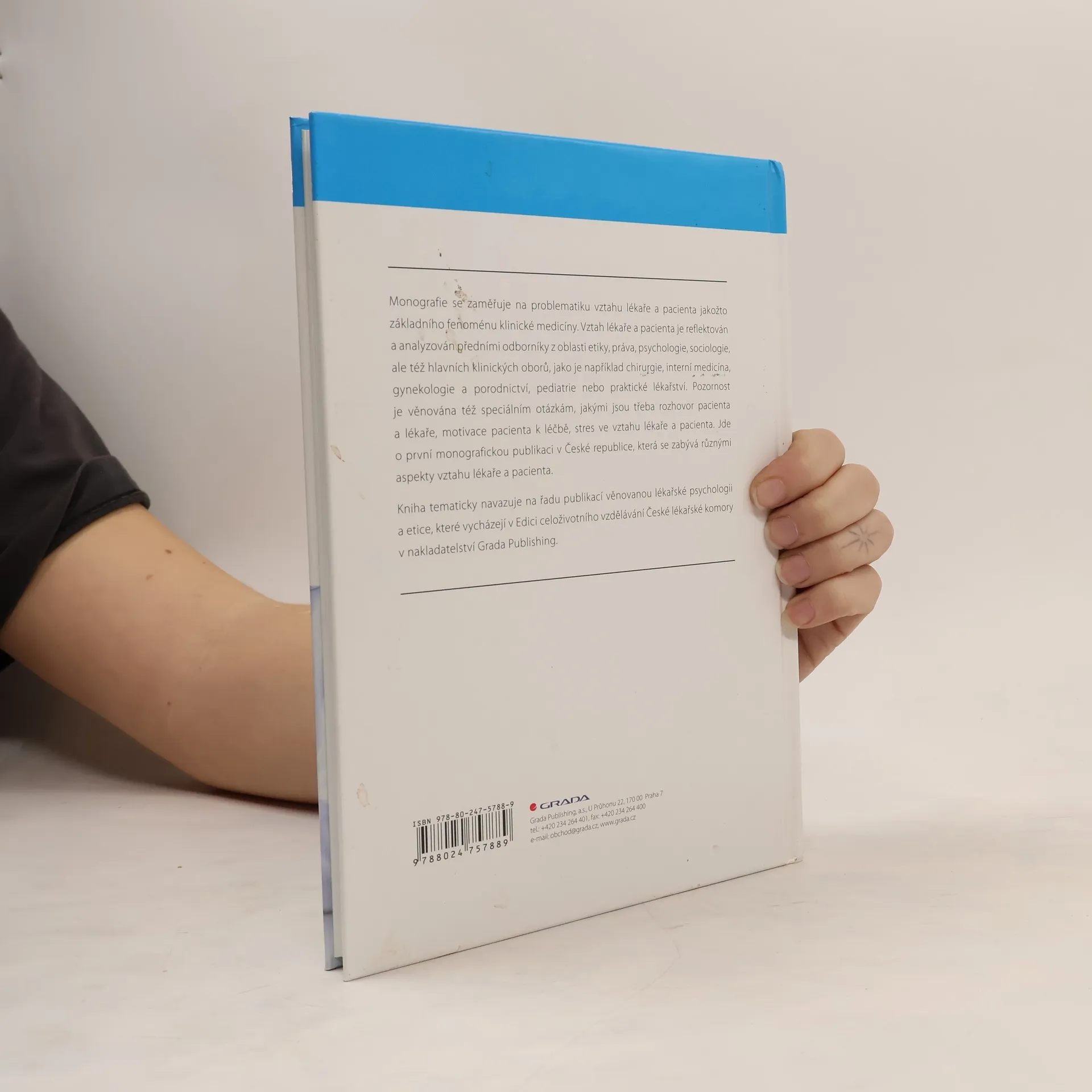 Monografie se zaměřuje na problematiku vztahu lékaře a pacienta jakožto základního fenoménu klinické medicíny. Vztah lékaře a pacienta je reflektován a analyzován předními odborníky z oblasti etiky, práva, psychologie, sociologie, ale též hlavních klinických oborů, jako je například chirurgie, interní medicína, gynekologie a porodnictví, pediatrie nebo praktické lékařství. Pozornost je věnována též speciálním otázkám, jakými jsou třeba rozhovor pacienta a lékaře, motivace pacienta k léčbě, stres ve vztahu lékaře a pacienta. Jde o první monografickou publikaci v České republice, která se zaměřuje na různé aspekty vztahu lékaře a pacienta. Monografie tematicky navazuje na řadu publikací věnovanou komunikaci a etice, které vycházejí v Edici celoživotního vzdělávání České lékařské komory v nakladatelství Grada Publishing. Klíčová slova: lékařská etika, klinická medicína, biomedicína, právo, psychologie, sociologie, lékař, pacient