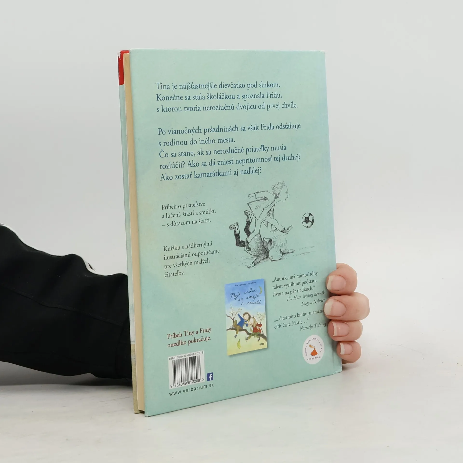 Tina je najšťastnejšie dievčatko pod slnkom. Konečne sa stala školáčkou a spoznala Fridu, s ktorou tvoria nerozlučnú dvojicu od prvej chvíle. Po vianočných prázdninách sa však Frida odsťahuje s rodinou do iného mesta. Čo sa stane, ak sa nerozlučné priateľky musia rozlúčiť? Ako sa dá zniesť neprítomnosť tej druhej? Ako zostať kamarátkami aj naďalej? Príbeh o priateľstve a lúčení, šťastí a smútku – s dôrazom na šťastí. Knižku s nádhernými ilustráciami odporúčame pre všetkých malých čitateľov.