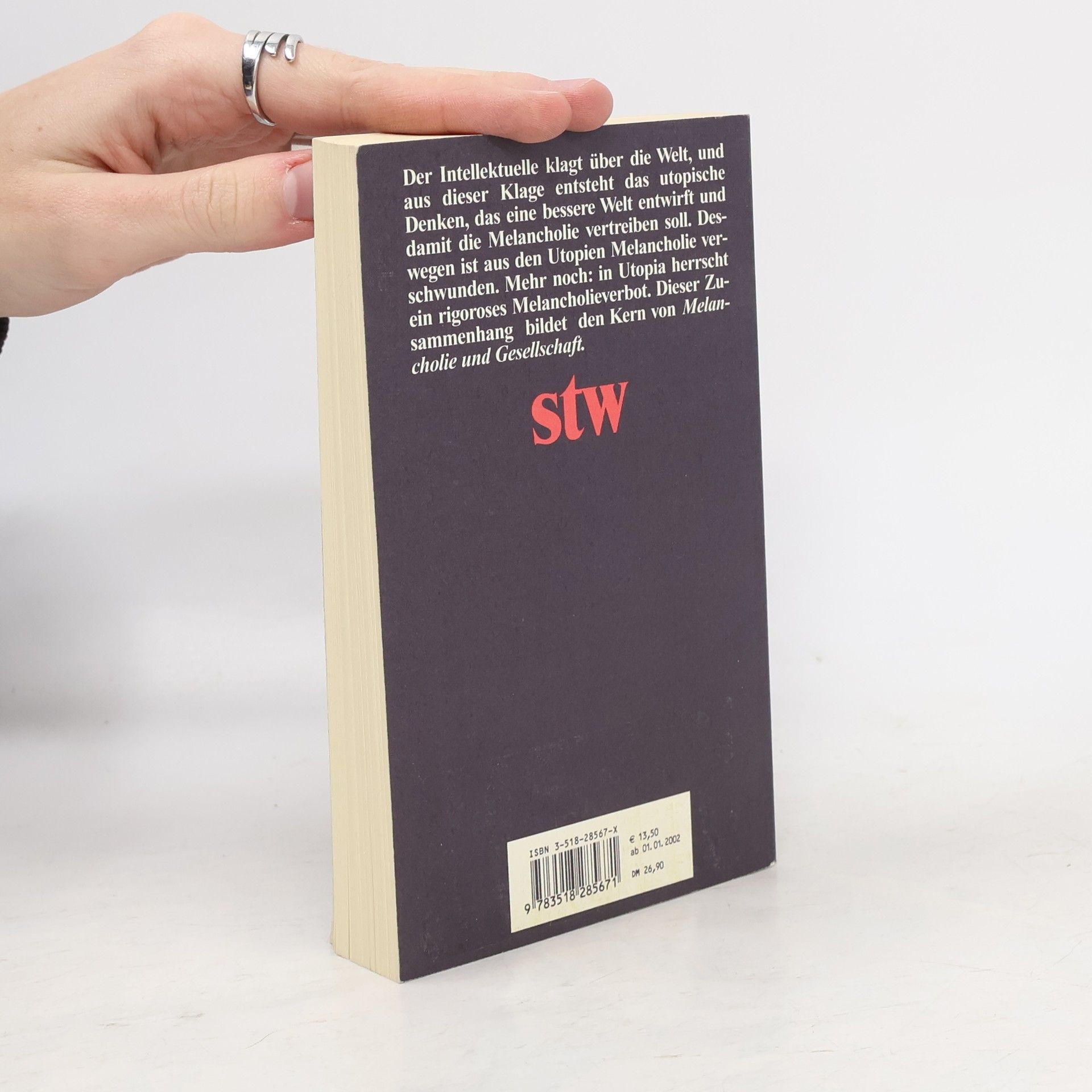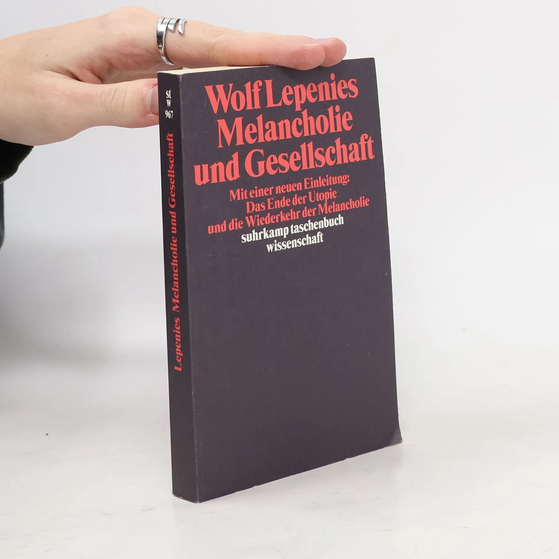 Lepenies' Studie über Melancholie und Gesellschaft erschien zuerst 1969. Melancholie wird als sozial bedingtes Phänomen dargestellt - auch und gerade dort, wo melancholisches Verhalten als Gesellschaftsflucht erscheint. Die benutzten Quellen sind unterschiedlicher Natur: der Roman steht neben der Utopie, neben soziologischer Analyse der Aphorismus. Diese Disparatheit erzwingt der Gegenstand: weder Melancholie noch utopisches Denken und Langeweile lassen sich einer einzelnen Disziplin zuschlagen und in ihr verarbeiten.