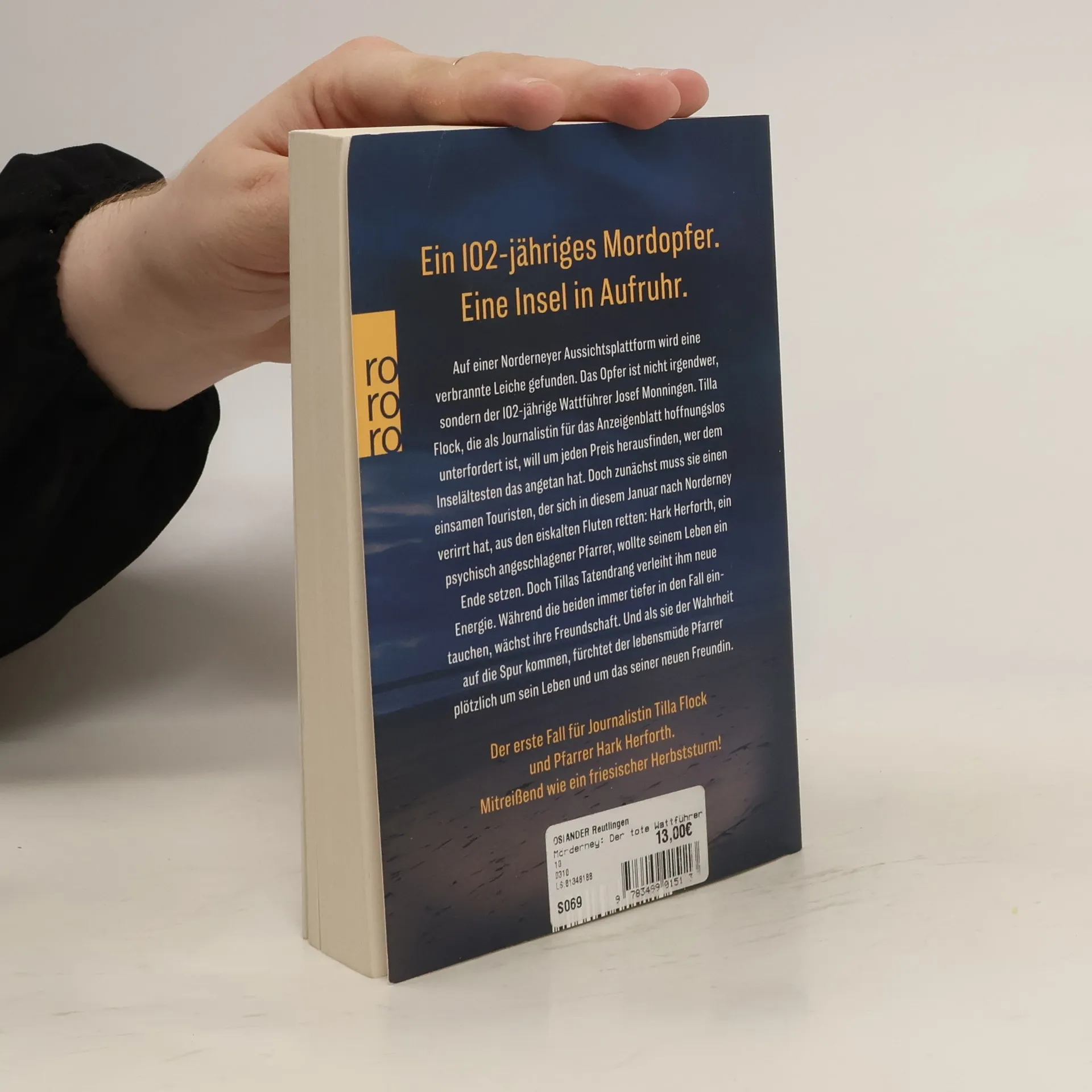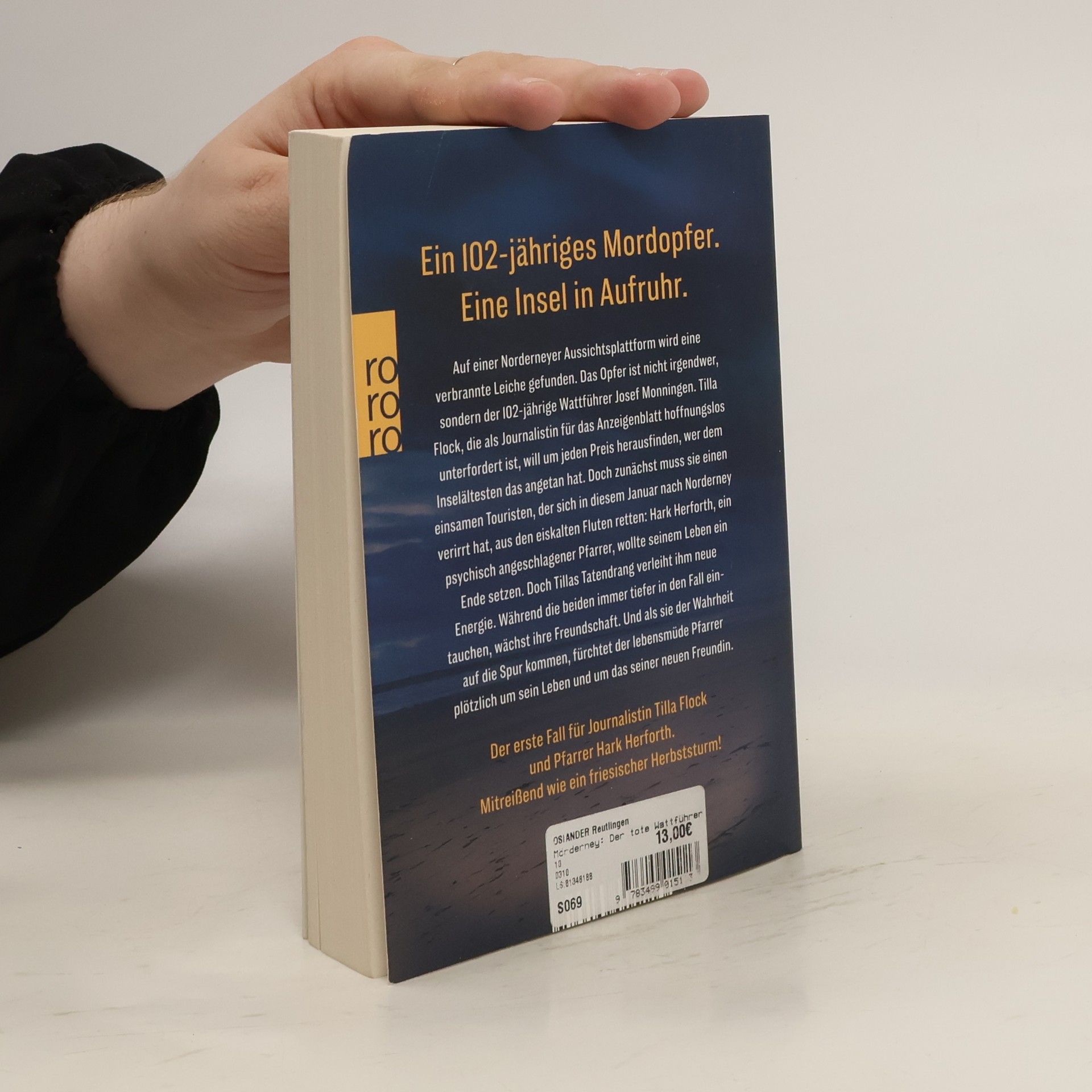 Spannung auf der beliebten Insel Norderney. Ein 102-jähriges Mordopfer - eine erfolglose Journalistin und ein lebensmüder Pfarrer ermitteln. Auf einer Norderneyer Aussichtsplattform wird ein verbrannter Körper gefunden. Das Opfer ist der 102-jährige Wattführer Josef Monningen. Tilla Flock, die als Journalistin für das Anzeigenblatt hoffnungslos unterfordert ist, will herausfinden, wer dem Inselältesten das angetan hat. Doch zunächst muss sie den einzigen Touristen, der sich in diesem Januar nach Norderney verirrt hat, aus den eiskalten Fluten retten: Hark Herforth, ein psychisch angeschlagener Pfarrer, wird von Tillas Energie und Ermittlerdrang sofort mitgezogen. Während sich die beiden immer tiefer in den Fall verstricken, wächst ihre Freundschaft. Als sie auf ein gefährliches Geheimnis stoßen, fürchtet der lebensmüde Pfarrer plötzlich um sein Leben und das seiner neuen Freundin. Dieser Norderney-Krimi ist so mitreißend wie ein friesischer Herbststurm!