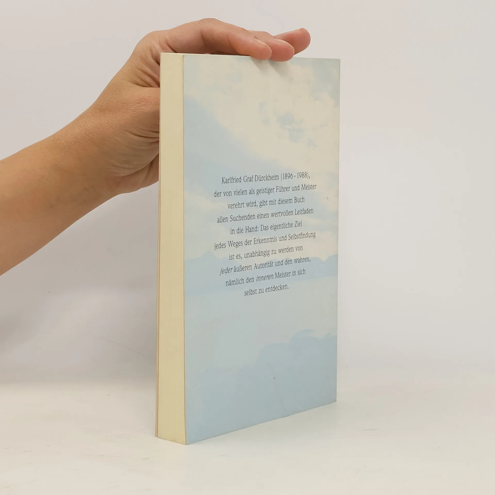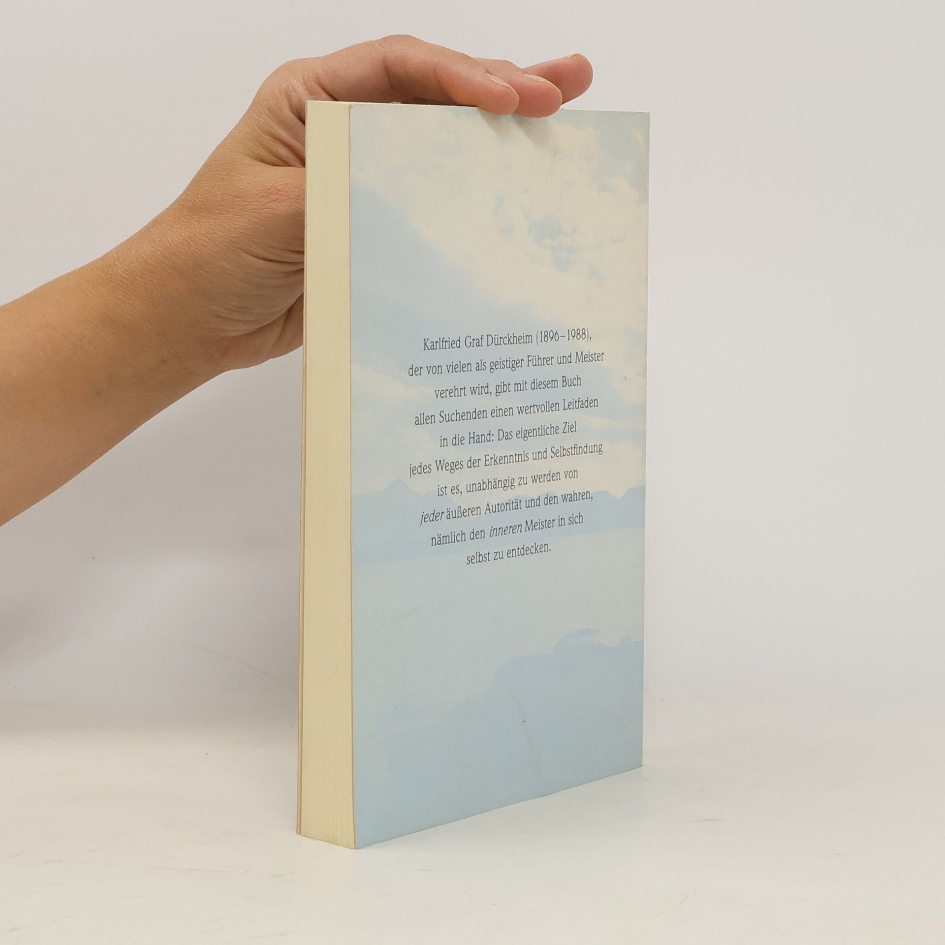 Einer der bedeutendsten spirituellen Lehrer des Westens befasst sich mit allen Fragen, die sich jeder Mensch stellt, der selbst einen spirituellen Weg gehen möchte. Karlfried Graf Dürckheim gibt mit diesem Buch allen Suchenden einen wertvollen Leitfaden an die Hand: Das eigentliche Ziel jedes Weges der Erkenntnis und Selbstfindung ist es, unabhängig zu werden von jeder äußeren Autorität und den wahren, nämlich der inneren Meister in sich selbst zu entdecken.
