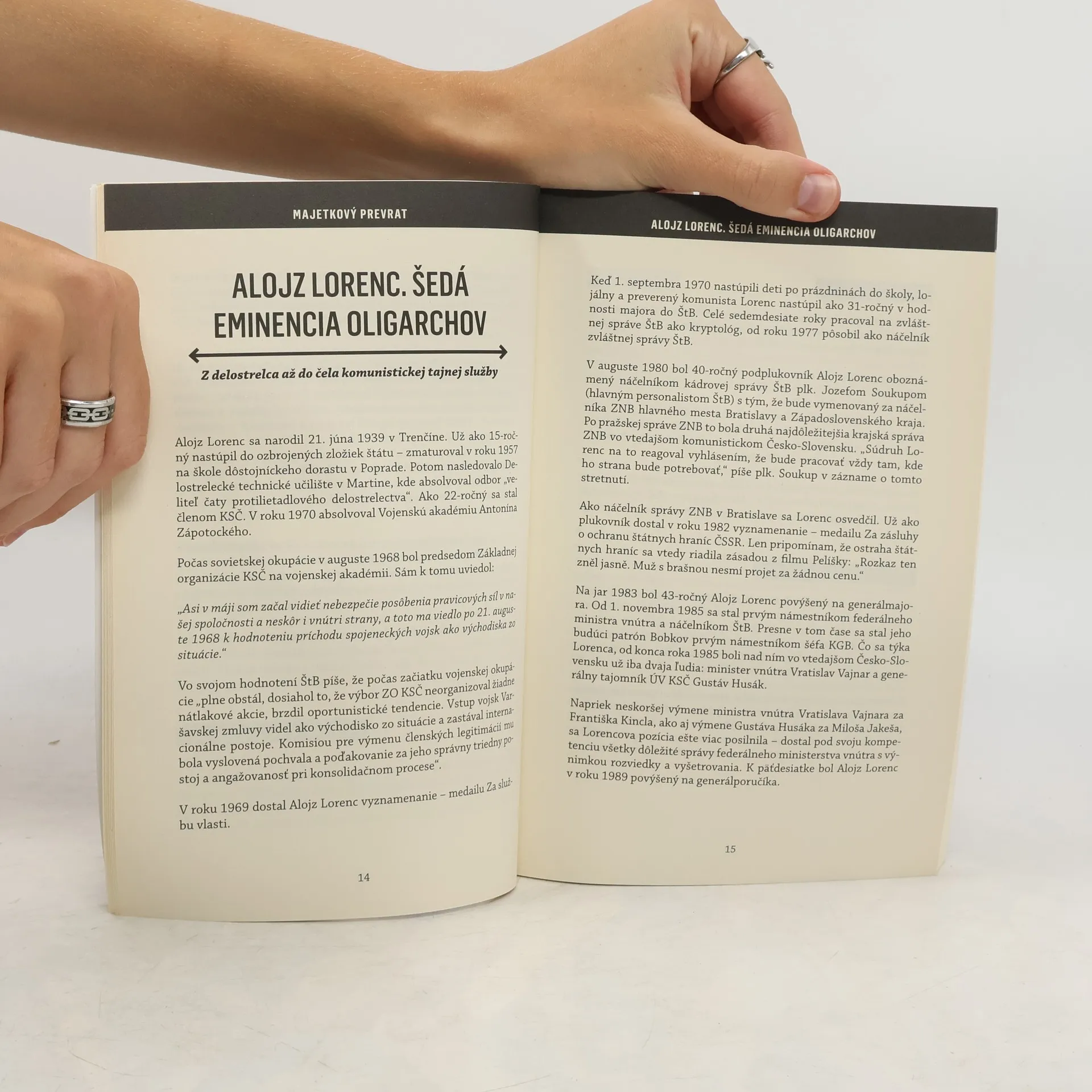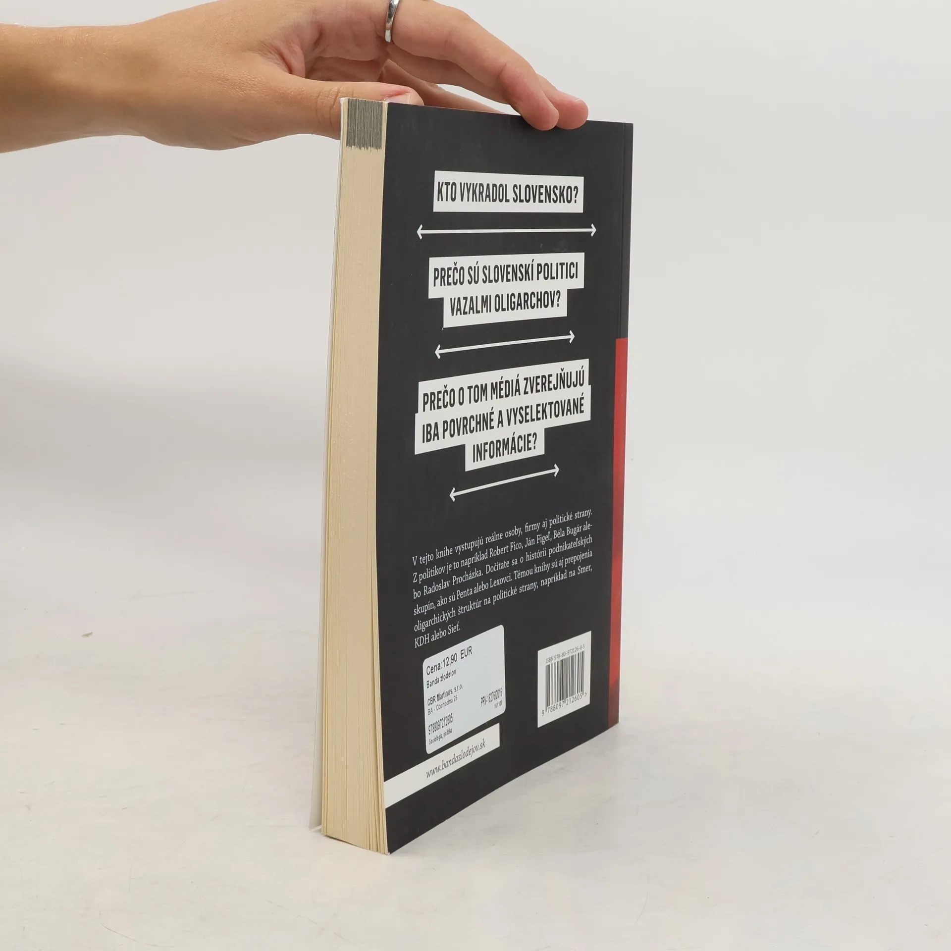 V tejto knihe vystupujú reálne osoby, firmy a politické strany, ako Robert Fico, Ján Figeľ, Béla Bugár a Radoslav Procházka. Zameriava sa na históriu podnikateľských skupín ako Penta a Lexovci, pričom skúma prepojenia oligarchických štruktúr s politickými stranami, ako Smer, KDH a Sieť. Čitatelia sa dozvedia, kto bol krstným otcom majetkového prevratu po roku 1989, ako začínali najvplyvnejší slovenskí oligarchovia, a kto zbohatol na priamych predajoch štátneho majetku či na kupónovej privatizácii. Kniha odhaľuje príbeh najnebezpečnejšej slovenskej finančnej skupiny Penta a vysvetľuje, prečo prišli o peniaze malí akcionári VÚB Kupónu, Slovenskej poisťovne a VSŽ. Zisťuje, ktorí oligarchovia ovládajú slovenské médiá a kedy sa stali silnejšími než politici. Sledovaním premeny dobrých vzťahov z čias komunizmu na peniaze a následne na moc, kniha ukazuje, ako sa Slovensko zmenilo z krajiny s nádejou na spravodlivosť na štát ovládaný bandou veľkých zlodejov. Pomáha čitateľovi pochopiť, ako sa situácia vyvinula do stavu, kedy na Slovensku opäť vládne partia nedotknuteľných a privilegovaných.