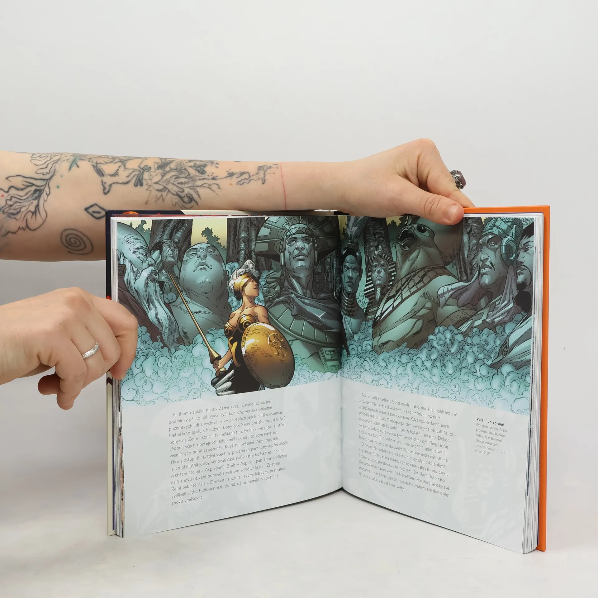 Objevte božské mýty a epické legendy marvelovského vesmíru Co se skrývá v minulosti nejsilnějších superbytostí ze světa Marvelu? Vraťte se v čase až k úsvitu věků a staňte se svědky zrození rasy Nebešťanů. Prozkoumejte panteony Thora a Asgarďanů i jejich rivalů z Olympie. Poznejte mystické začátky Nejvyššího mága Doctora Strange. Procházejte se spolu s bohy Wakandy a legendárními Black Panthery. V této fantastické publikaci najdete všechny velkolepé ságy, které píšou příběh spletitého marvelovského vesmíru.