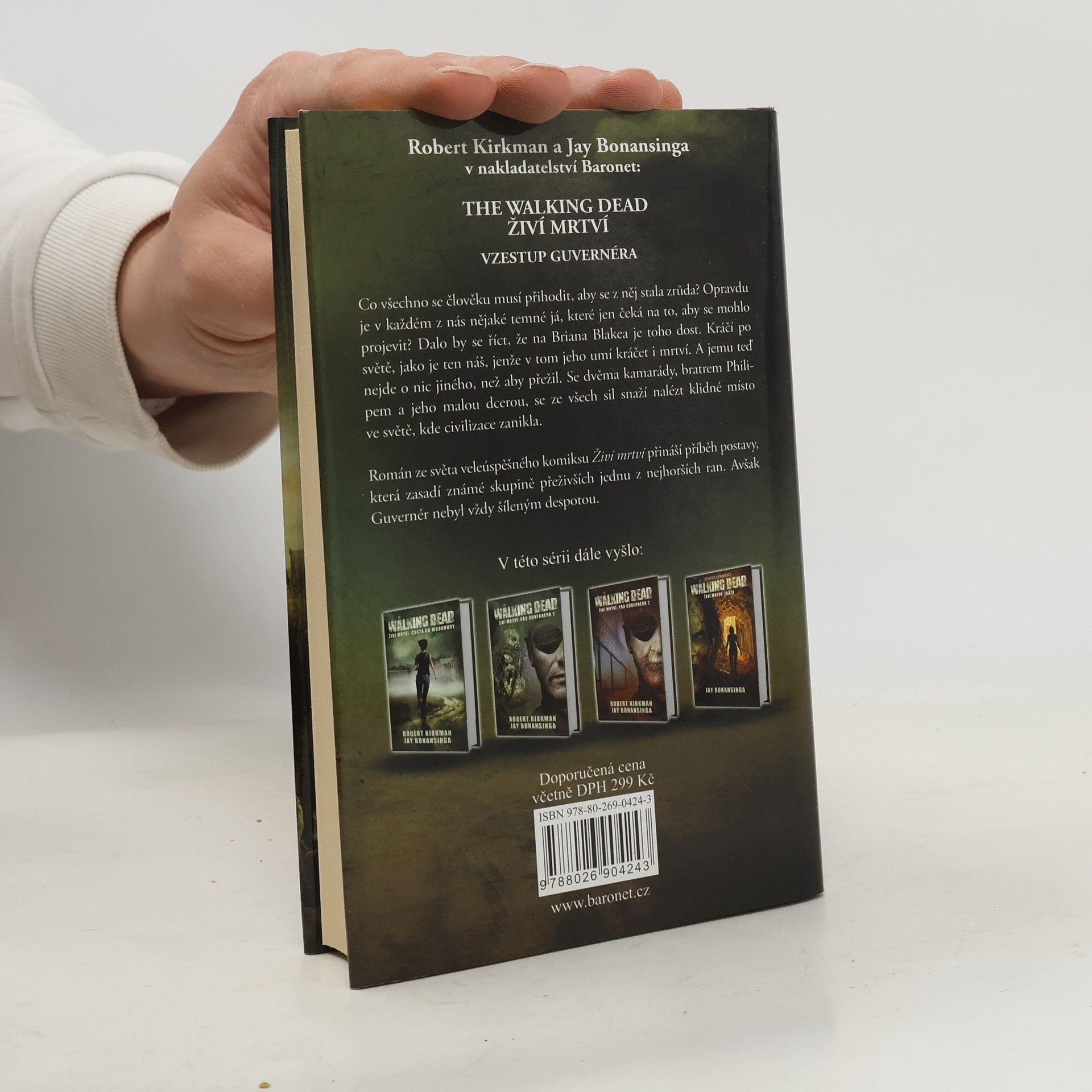 Co všechno se člověku musí přihodit, aby se z něj stala zrůda? Opravdu je v každém z nás nějaké temné já, které jen čeká na to, aby se mohlo projevit? Skoro by se dalo říct, že na Briana Blakea je toho dost. Kráčí po světě jako je ten náš, jenže v tom jeho umí kráčet i mrtví. A jemu teď nejde o nic jiného, než aby přežil. Se dvěma kamarády a bratrem Phillipem s malou dcerou se ze všech sil snaží nalézt klidné místo ve světě, kde civilizace zanikla. Román ze světa veleúspěšného komiksu Živí mrtví přináší příběh postavy, která zasadí známé skupině přeživších jednu z nejhorších ran. Avšak Guvernér nebyl vždy šíleným despotou. Tvůrce hororových románů Jay Bonansinga spojil síly s autorem původního komiksu Robertem Kirkmanem, aby spolu stvořili první díl trilogie o tom, jak může být lidský vzestup k moci zároveň pádem jeho morálky.